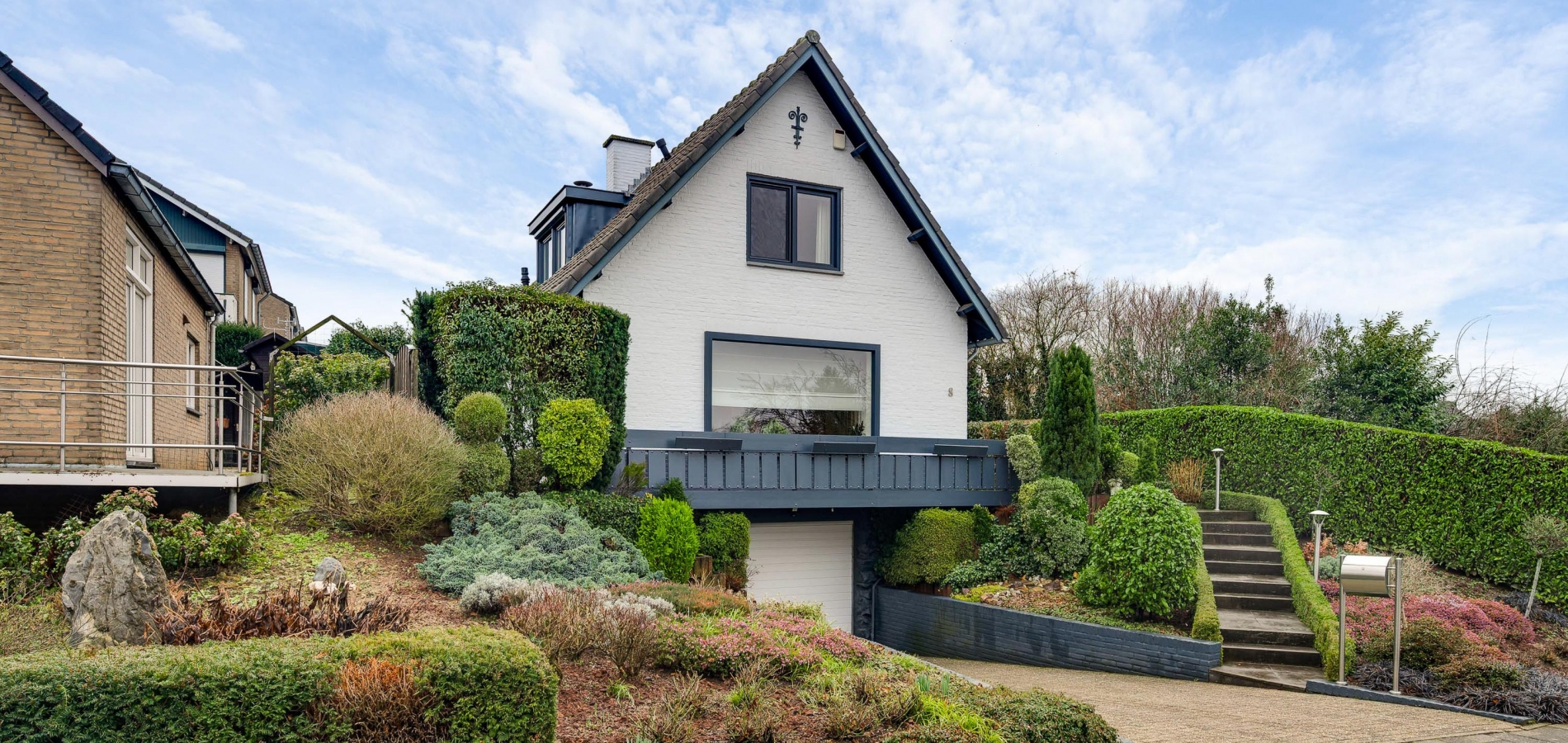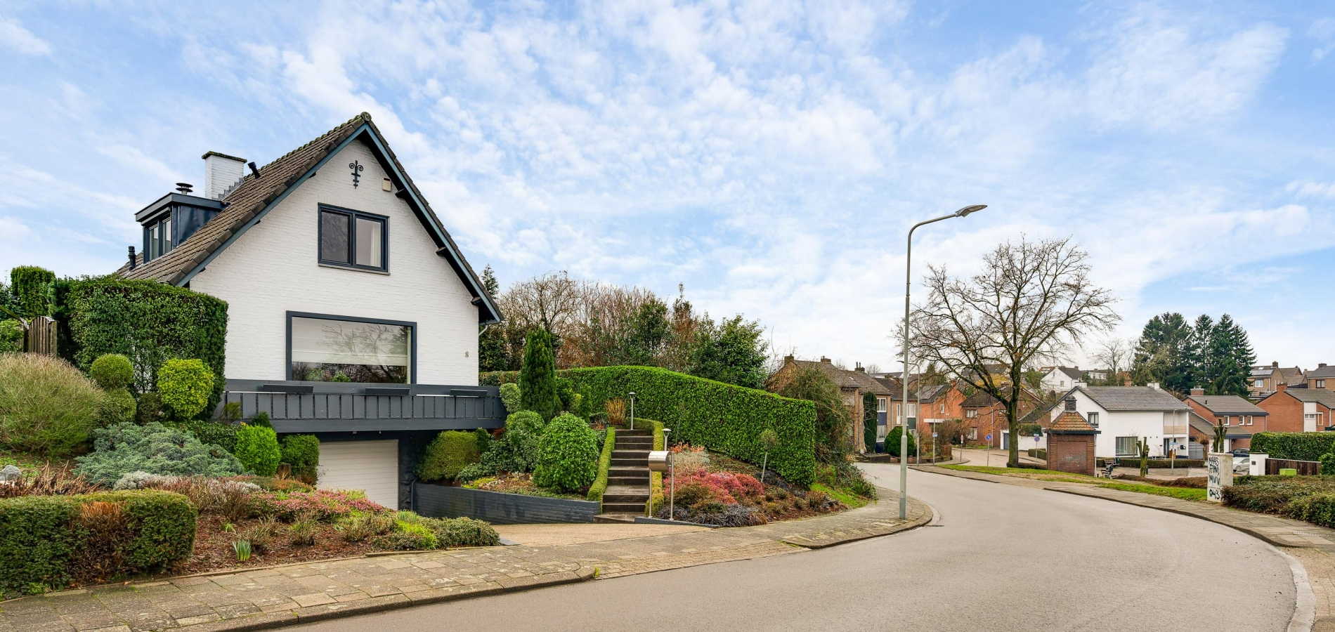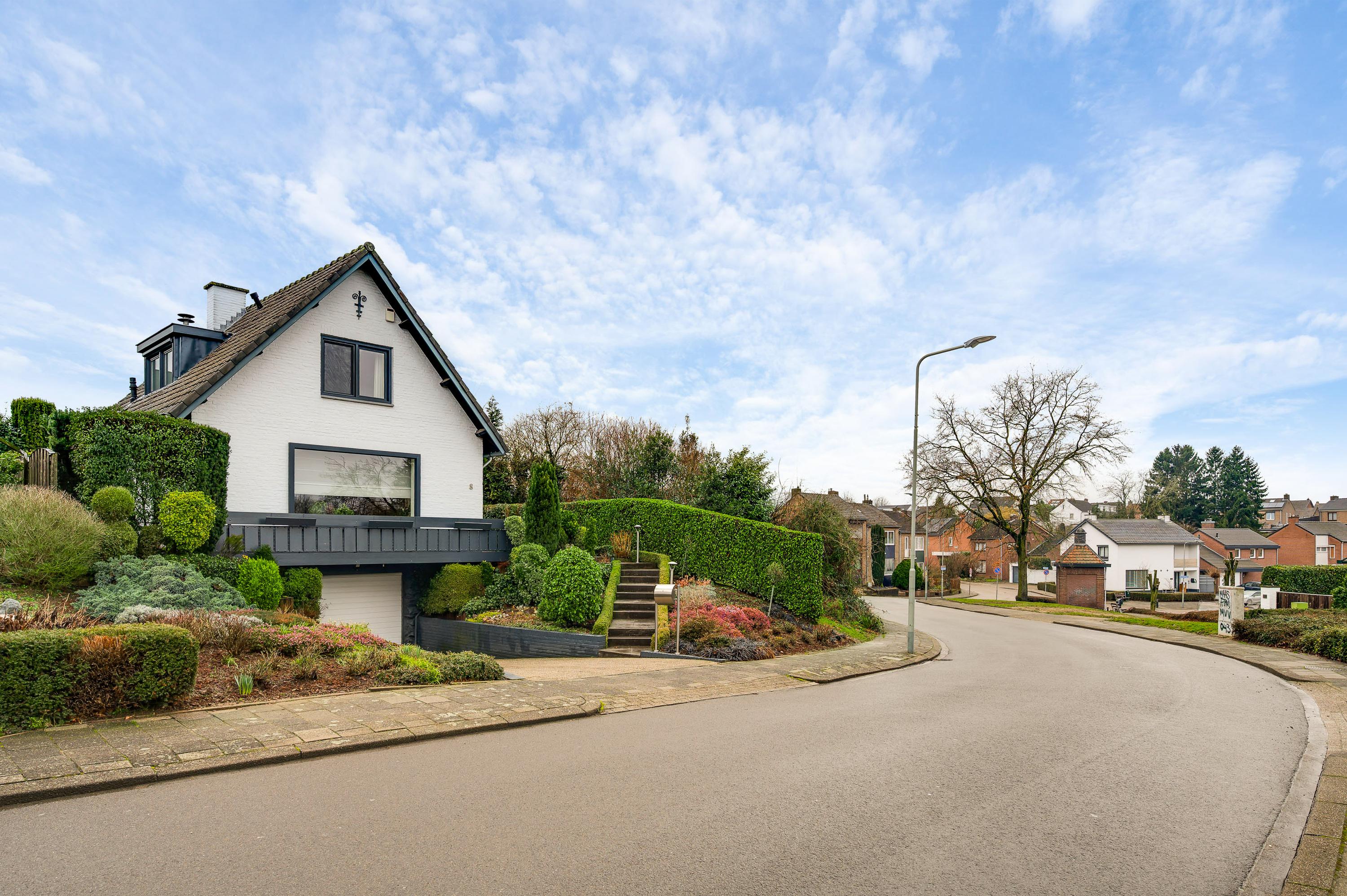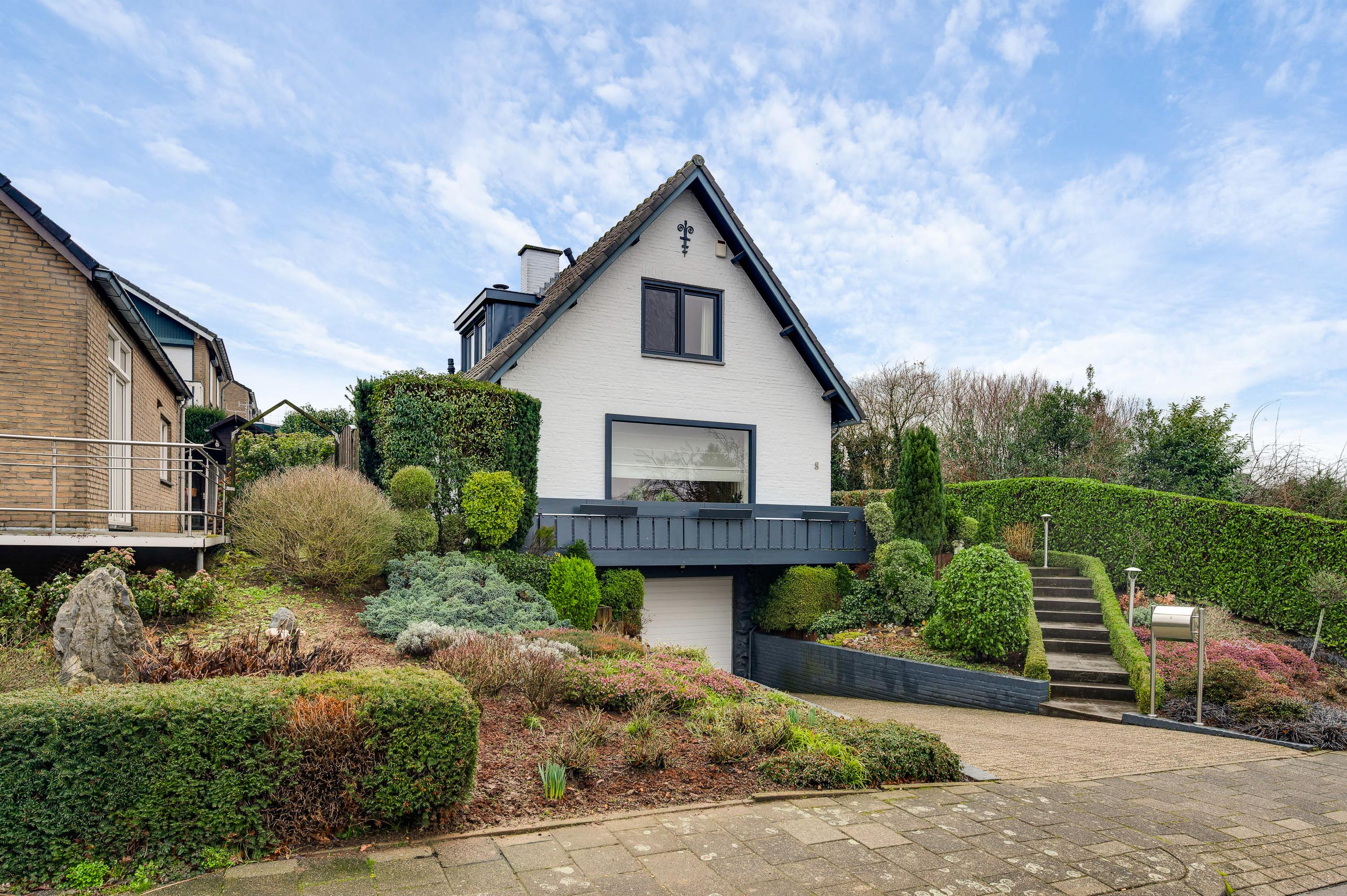 Sfeervolle, vrijstaande woning om de hoek van het bos. Aan de Langen Akker, om de hoek van het bos bij Geulhem, staat deze charmante vrijstaande woning met 2 ruime slaapkamers en een riante garage in het souterrain. De witte gevels met donkergrijze accenten zorgen, samen met de prachtige tuin, voor een huis dat direct de aandacht trekt. Er zijn meerdere terrassen, onder andere aan de zuid- en westkant, om volop van de zon te genieten. Dankzij de verhoogde ligging van het woonhuis heeft u mooi uitzicht aan de voorzijde.