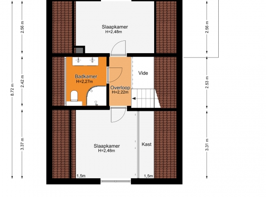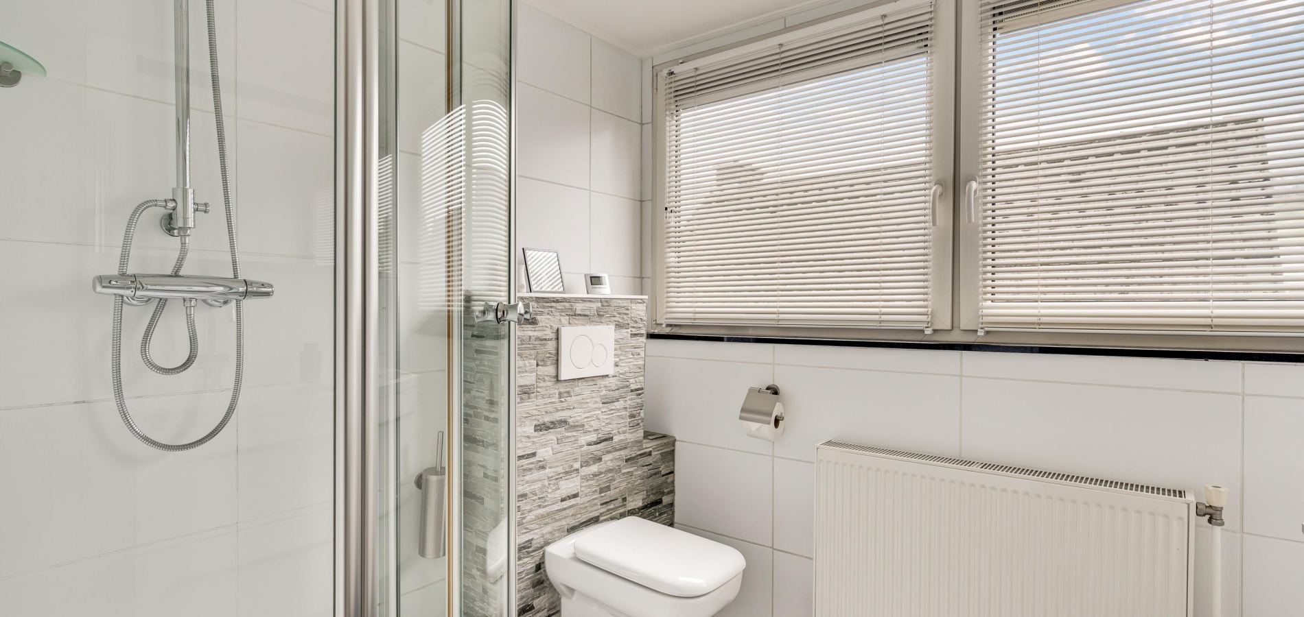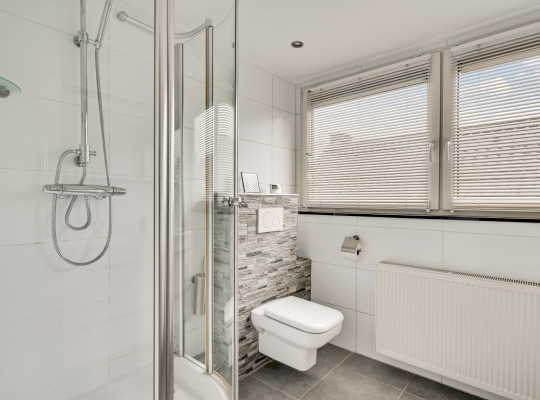 Twee ruime slaapkamers en een moderne badkamer op de eerste verdieping