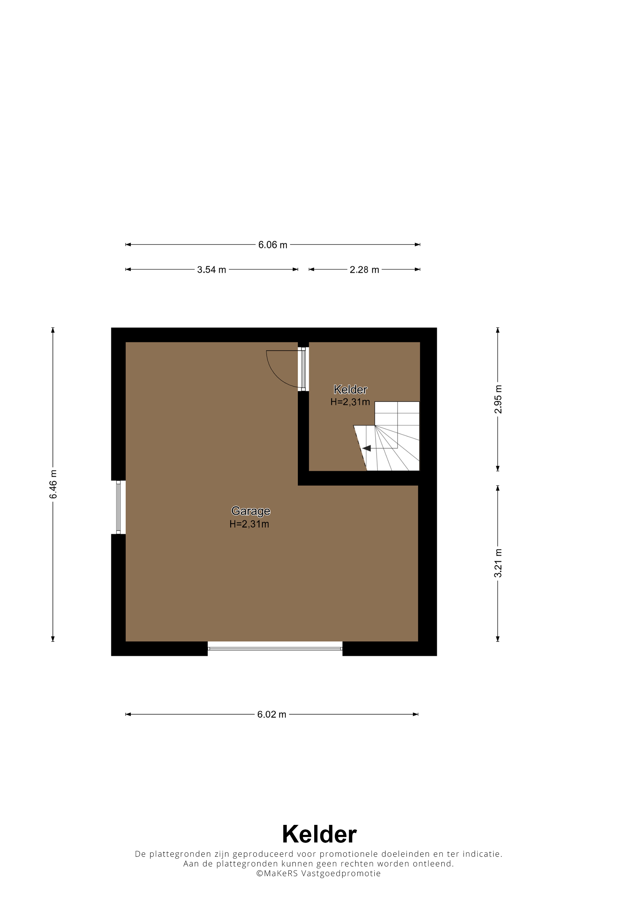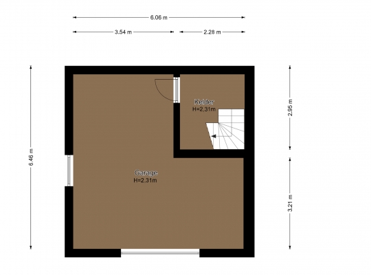 Voor de auto, fietsen en om te klussen is het souterrain heel geschikt. Hier heeft u de beschikking over een L-vormige garage van circa 30 m2, met een sectionaalpoort en een trap naar de begane grond. Het souterrain heeft een hoogte van circa 2,31 meter.