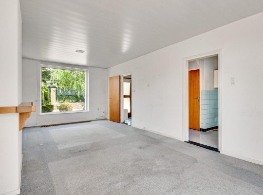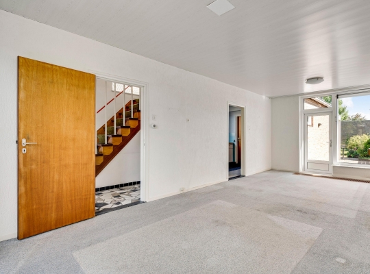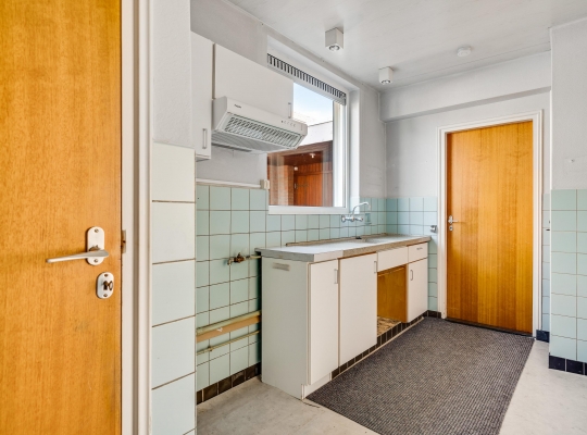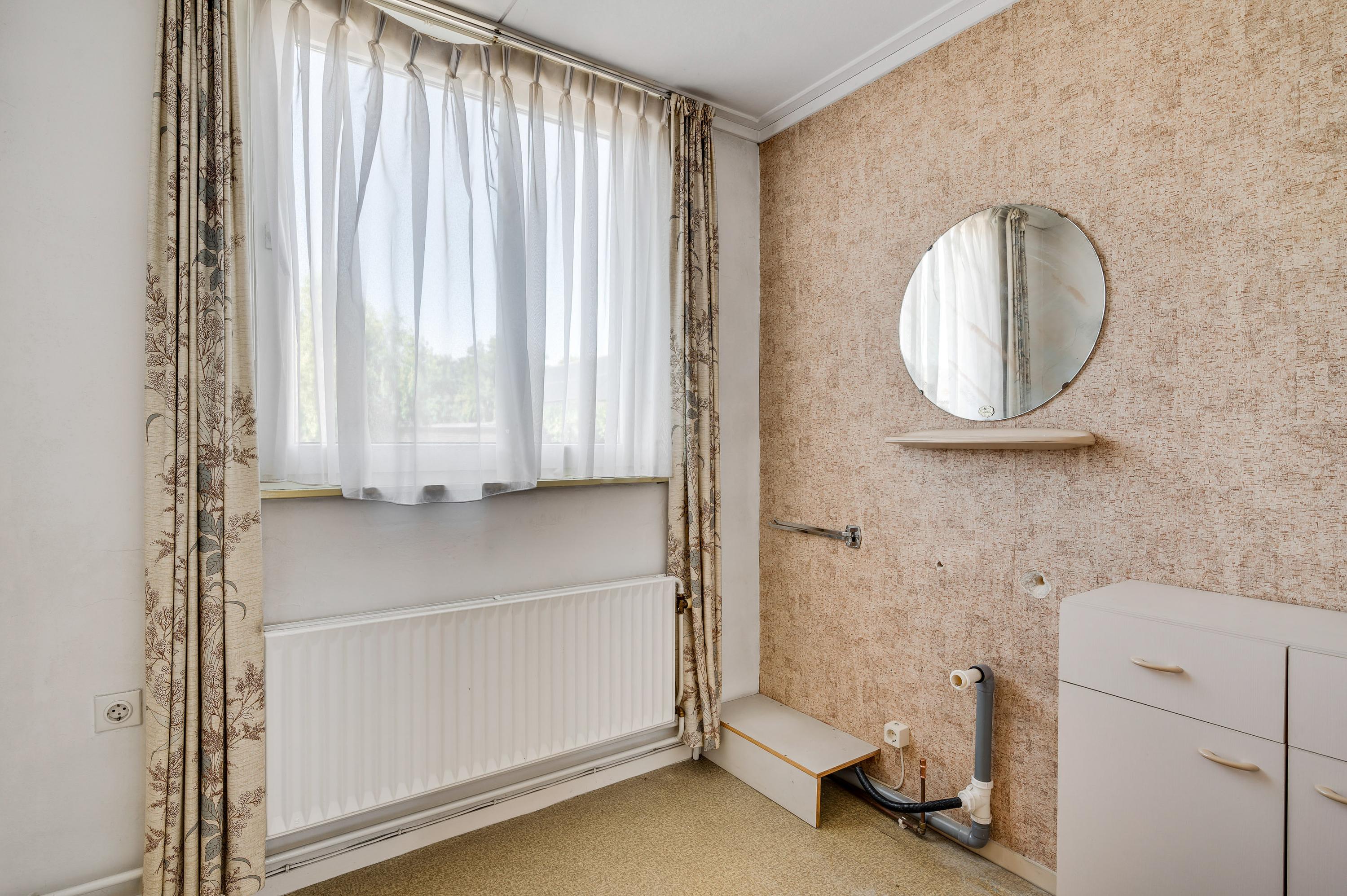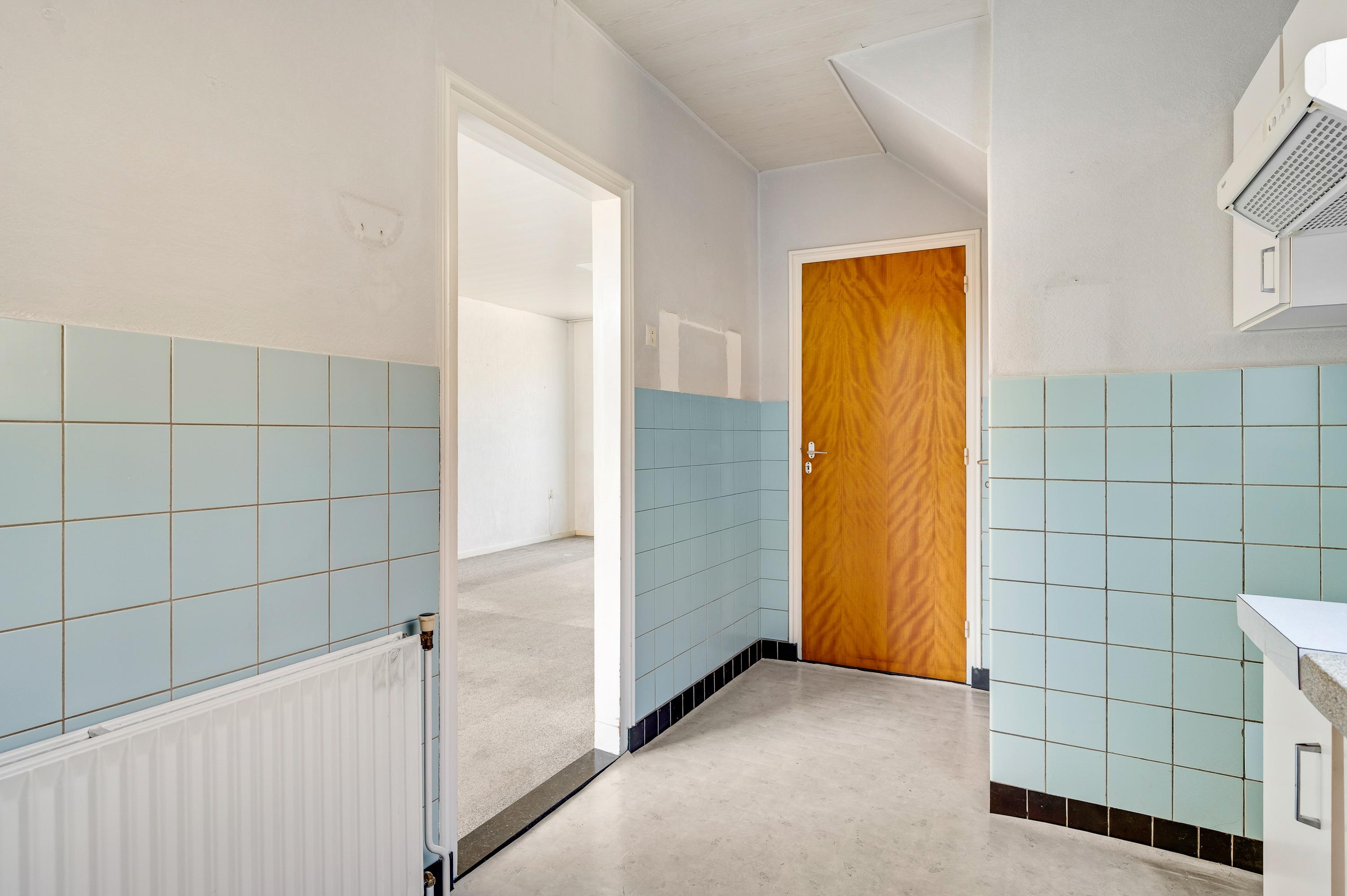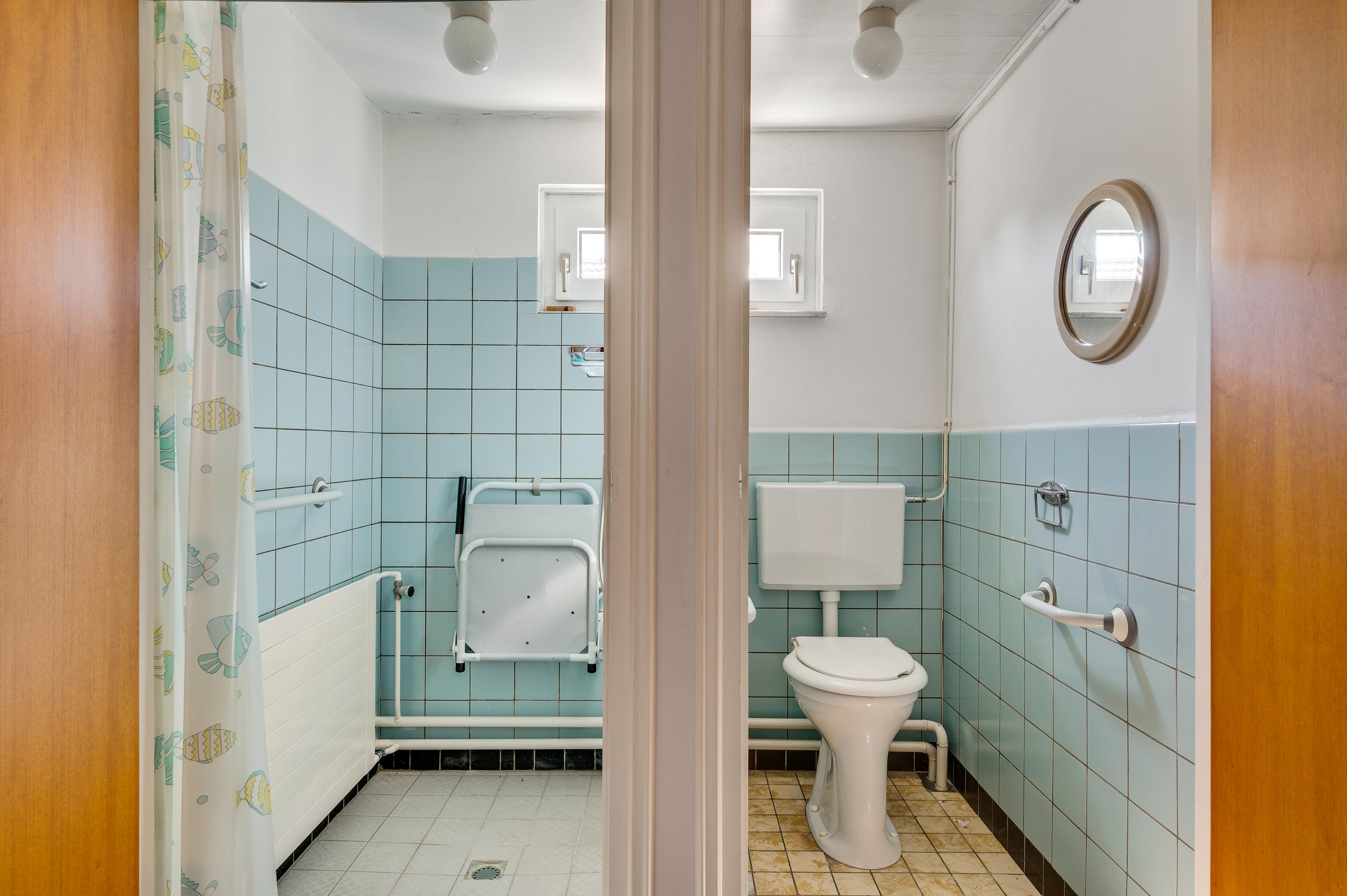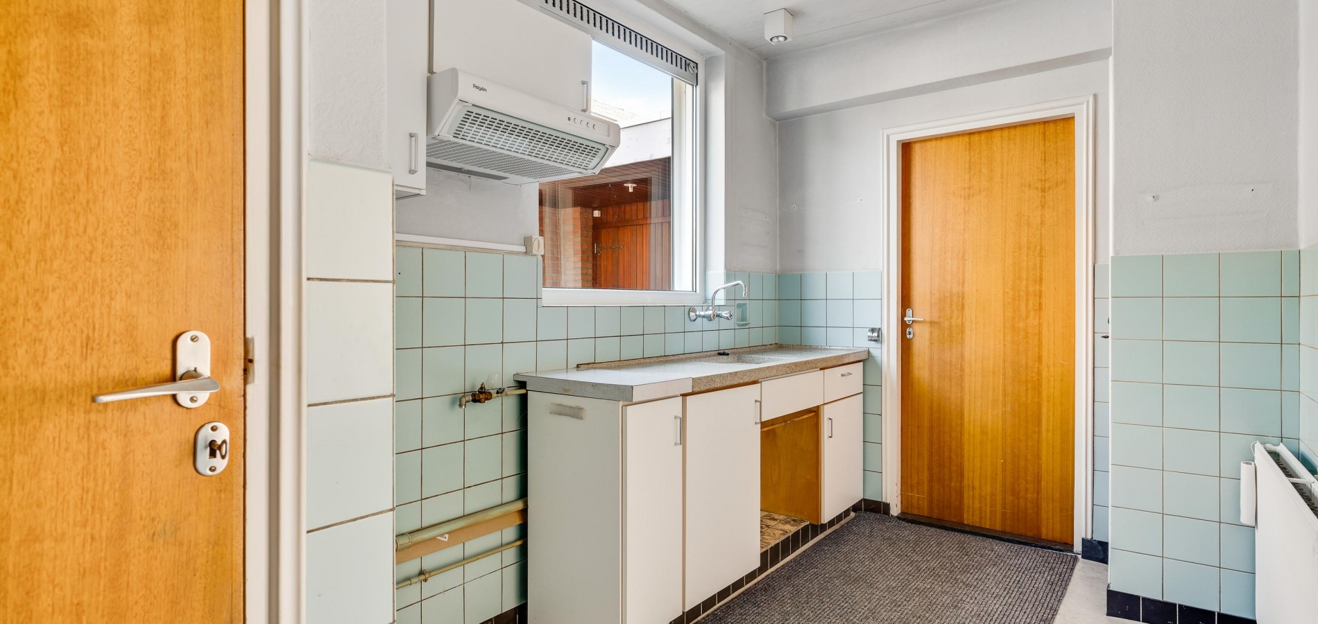 Vanuit de keuken heeft u toegang tot een portaal, van waaruit u onder andere toegang heeft tot de oprit. Ook zijn hier de toiletruimte en een doucheruimte, beiden origineel uit de jaren ’60. De ruime bijkeuken (circa 3,05 x 3,08) biedt ruimte aan een keukenblok met spoelbak en de HR-ketel (Intergas Hre, 2023, huur).