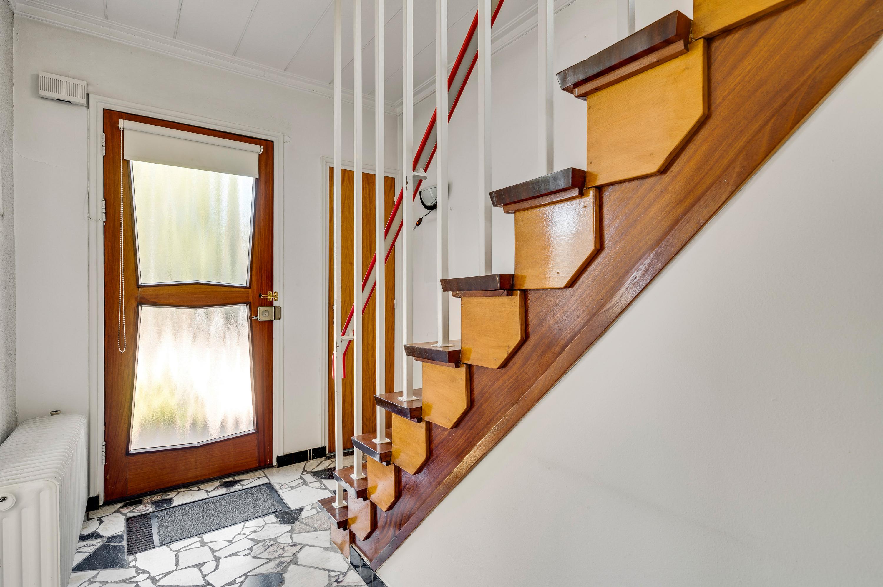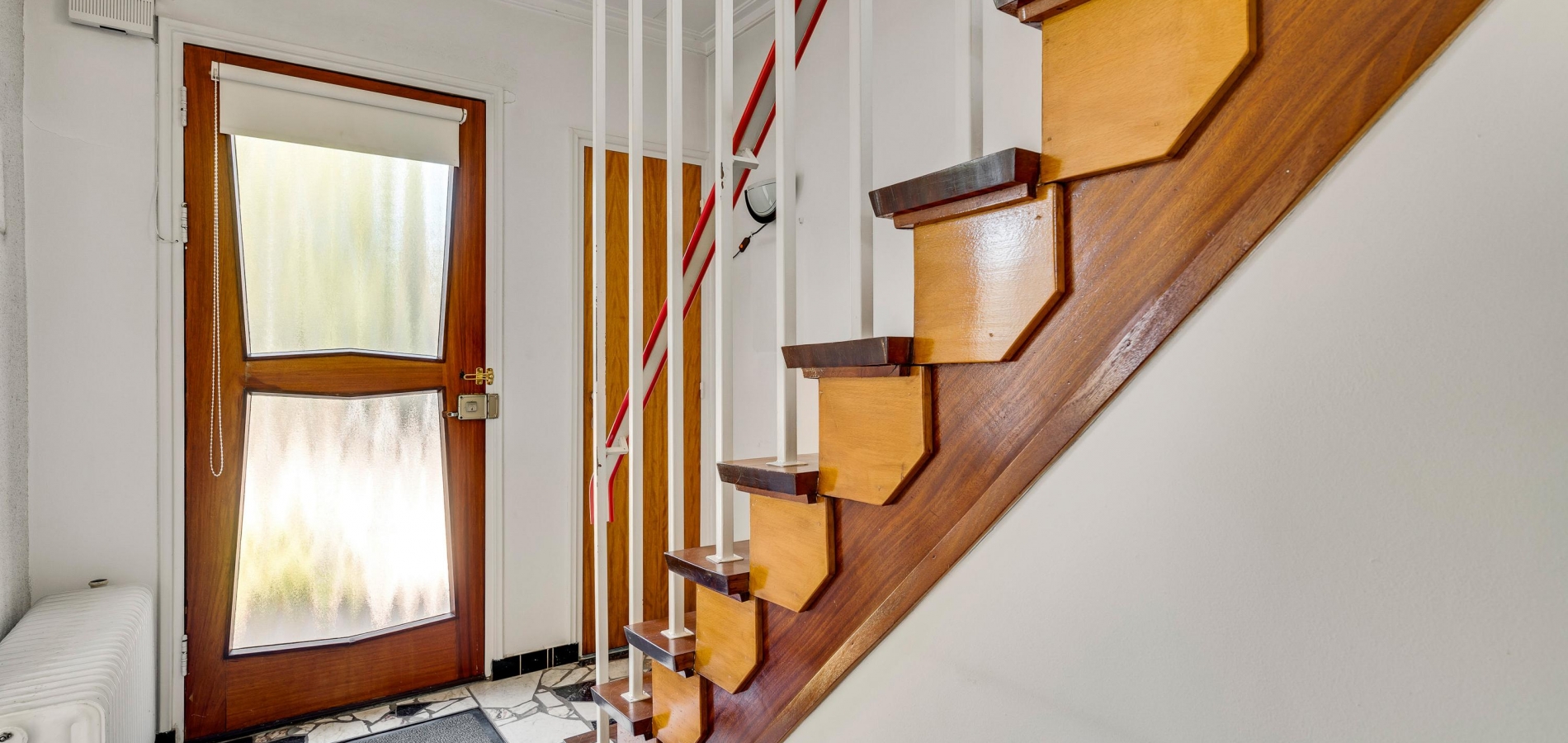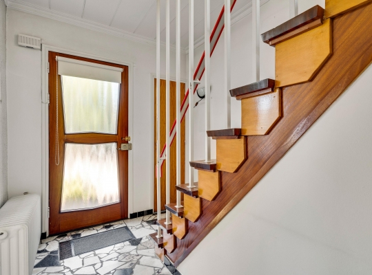 In de hal (circa 2,98 x 2,14) ziet u de originele vloer en de trap naar de eerste verdieping. Aan de linkerzijde, naast de voordeur, is de meterkast. Vanuit de hal heeft u toegang tot de woonkamer en keuken.