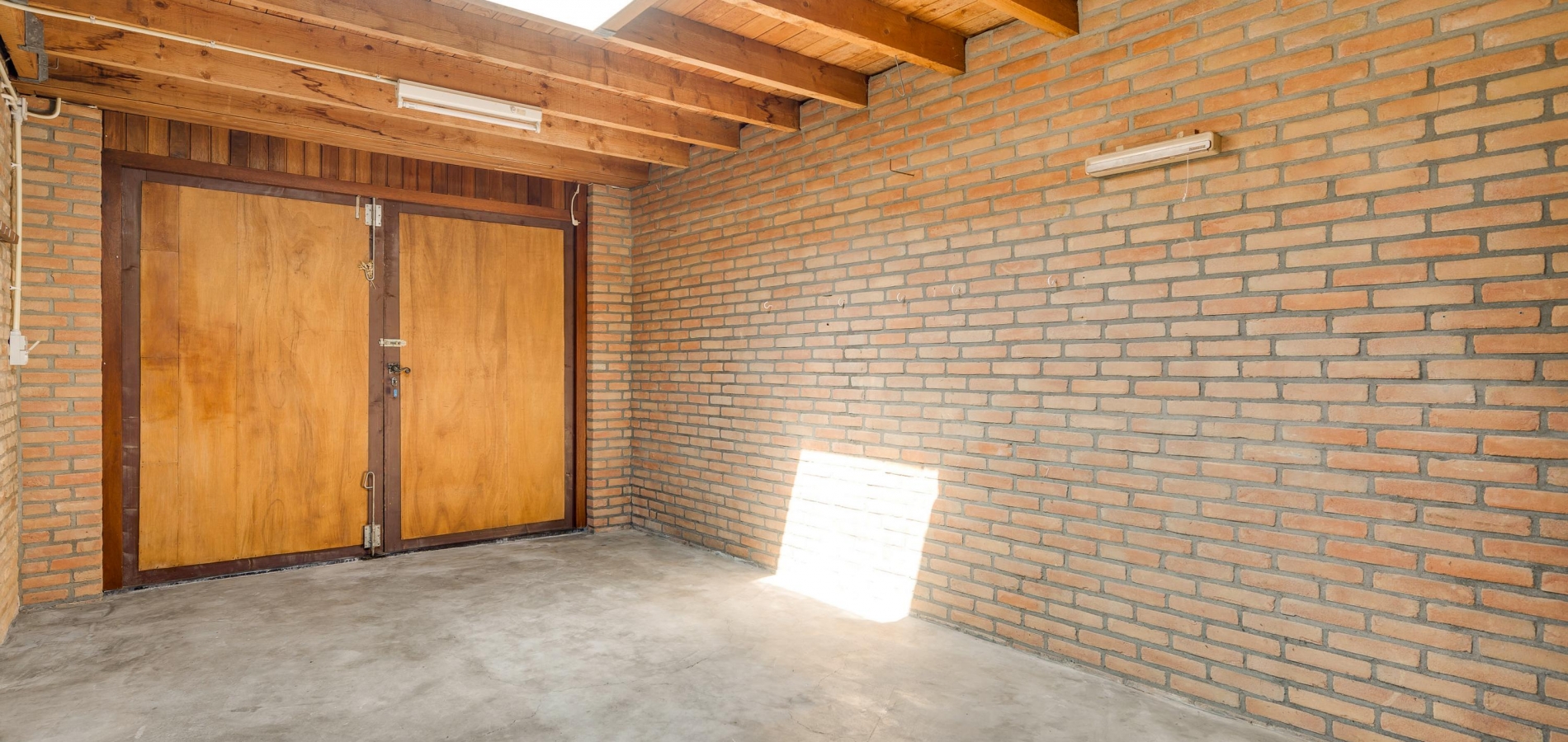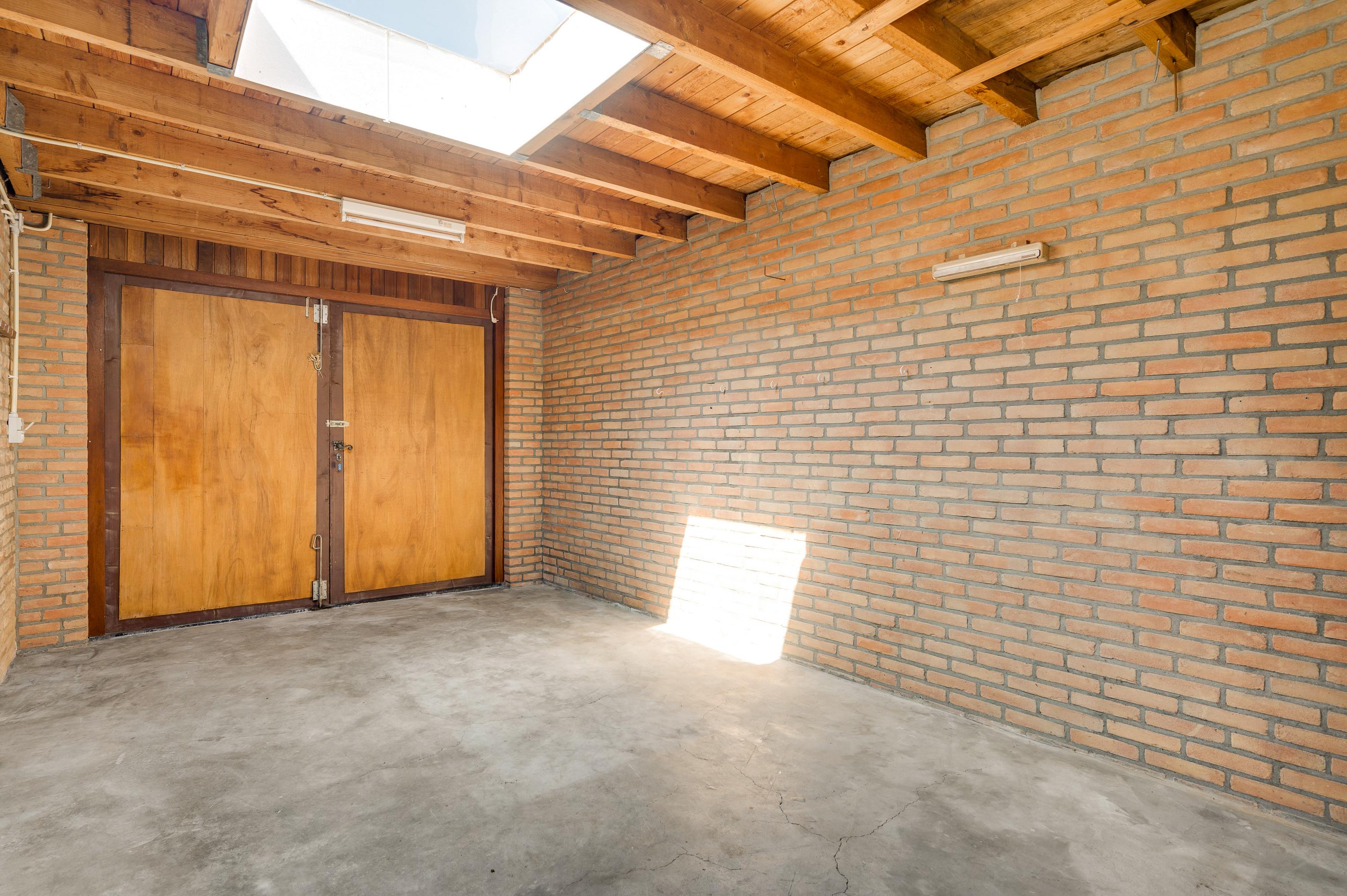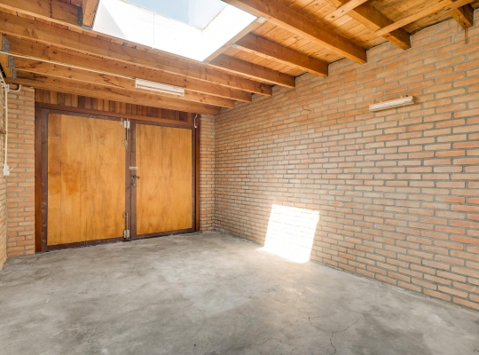 De inpandig te bereiken garage (circa 5,74 x 3,27/3,11) is een fijne plek voor de auto-/motorliefhebber en de hobbyist. Er zijn openslaande deuren naar de oprit en een lichtkoepel zorgt voor veel lichtinval in deze multifunctionele ruimte.