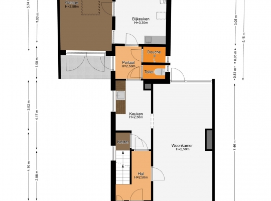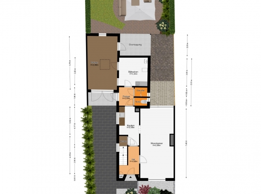 Aanbouw aan de achterzijde (bijkeuken, toilet en douche)