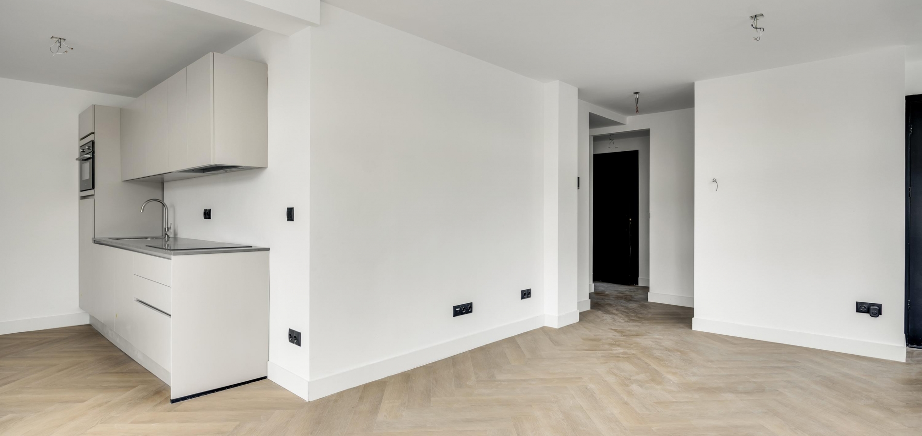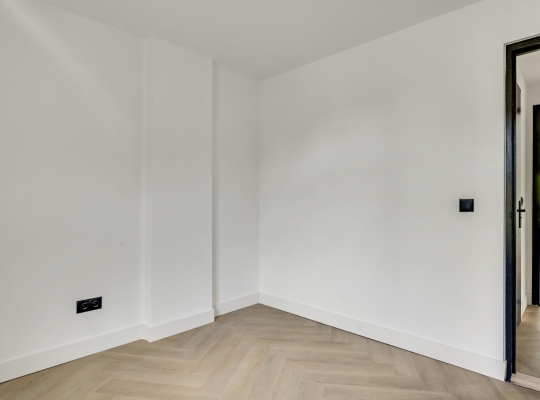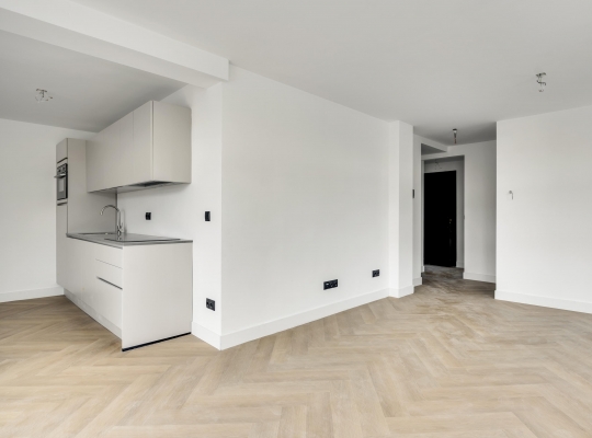 Dit appartement bevindt zich aan de voorzijde van het gebouw, tegenover de trap. Achter de voordeur is een hal, die in open verbinding met de woonkamer staat. De pvc-visgraatvloer ligt in bijna het hele appartement en het schilderwerk is recent gedaan, waardoor u direct kunt verhuizen en inrichten. Recht voor u is de toiletruimte, uitgevoerd in lichte kleuren.