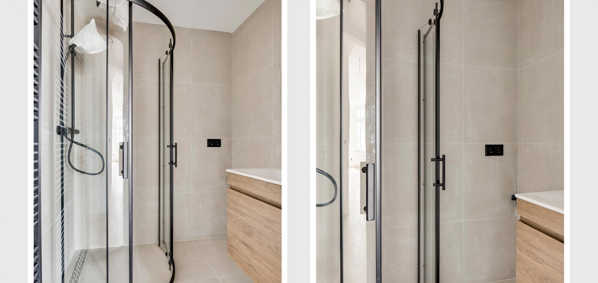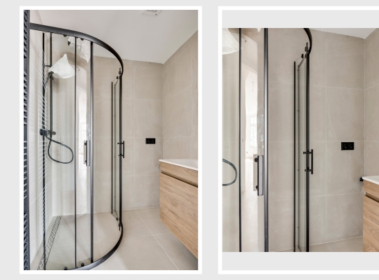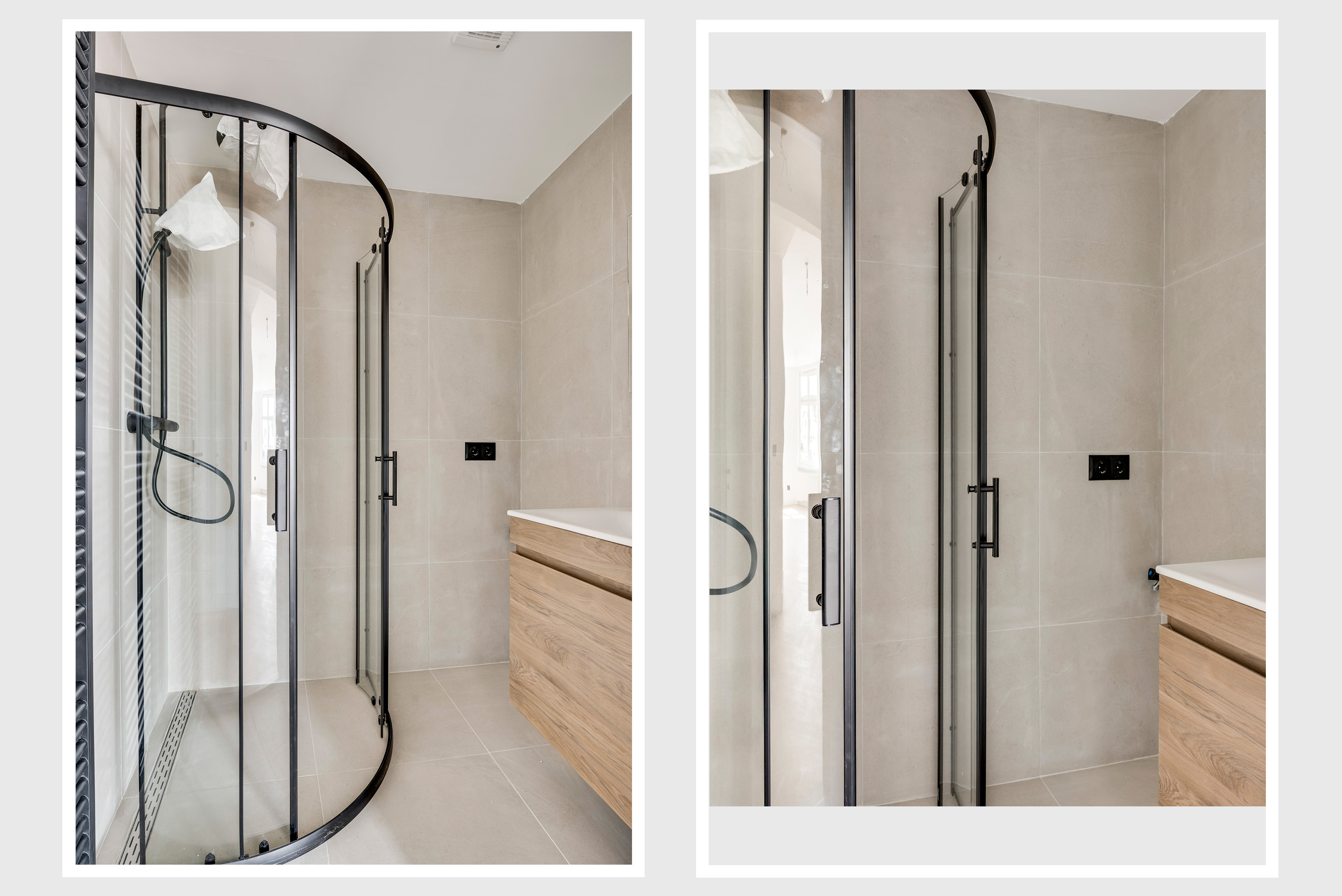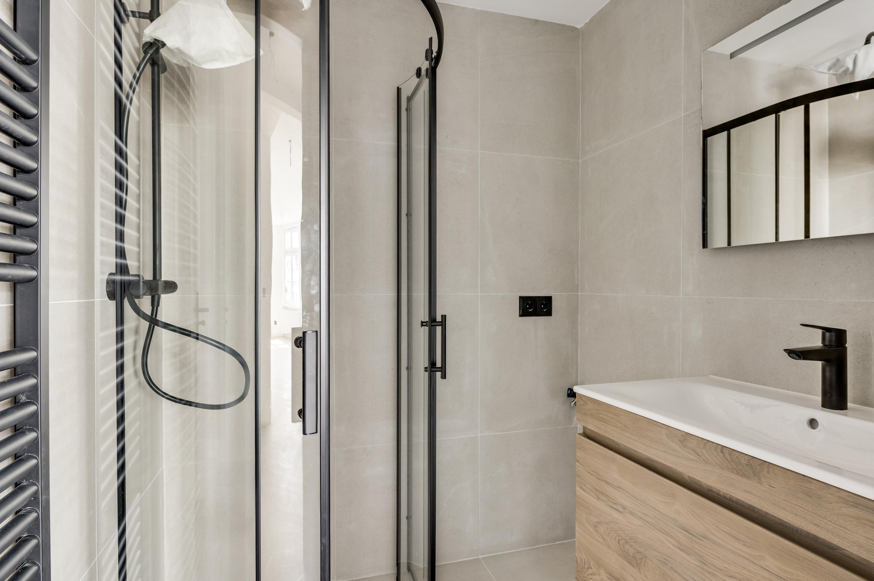 Dit goed ingedeelde appartement heeft twee slaapkamers. Slaapkamer I (circa 3,30 x 3,28) is aan de voorzijde en slaapkamer II (circa 3,32 x 3,00) bevindt zicht aan de achterzijde. Tussen de slaapkamers is de badkamer met een kwartronde douche, wastafelmeubel en de wasmachineaansluiting. Fraaie elementen zijn de kwartronde douchewand, zwarte kranen, hoge handdoekenradiator en de spiegel boven de wastafel.