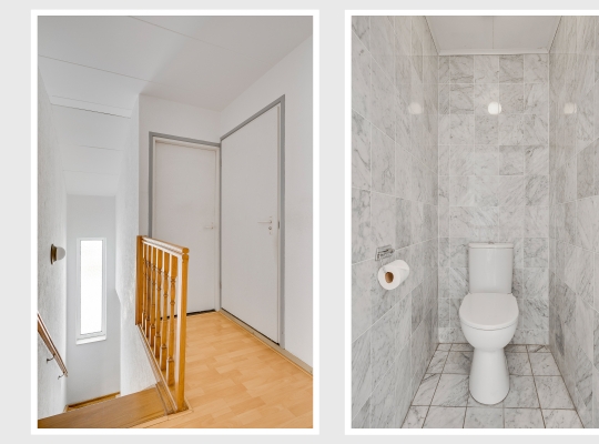 Volg de fraaie bordestrap, vanuit de hal op de begane grond naar de overloop op de eerste verdieping. Vanaf hier heeft u toegang tot vier slaapkamers, de badkamer, inbouwkast en een separaat toilet.