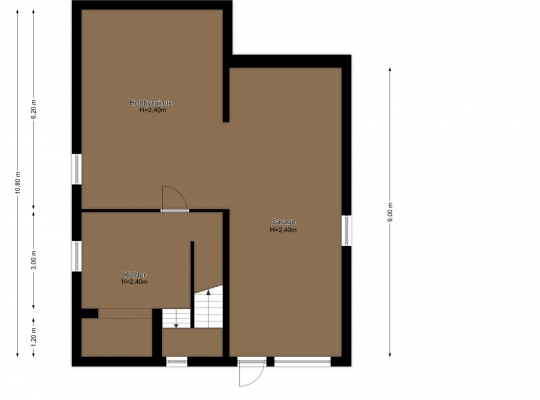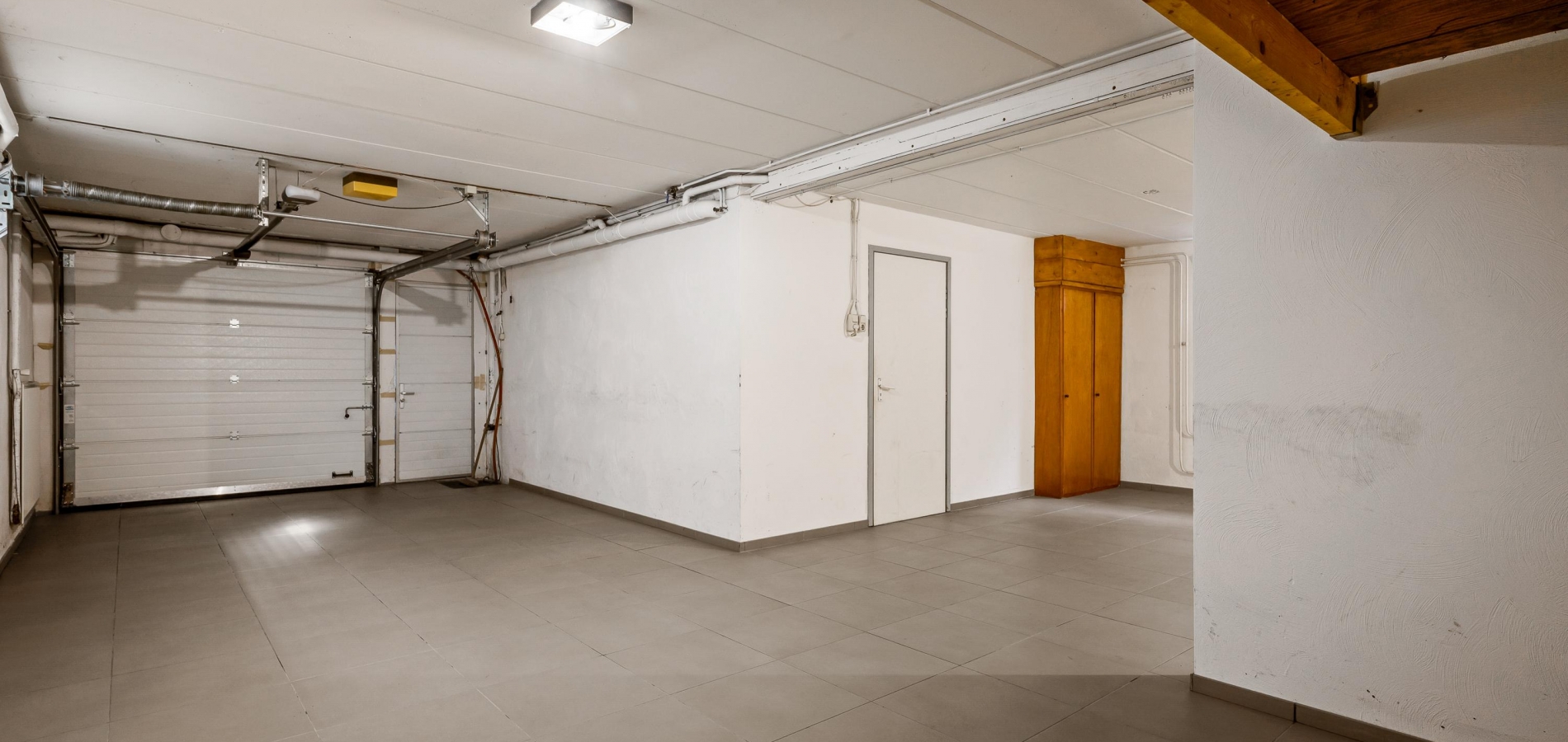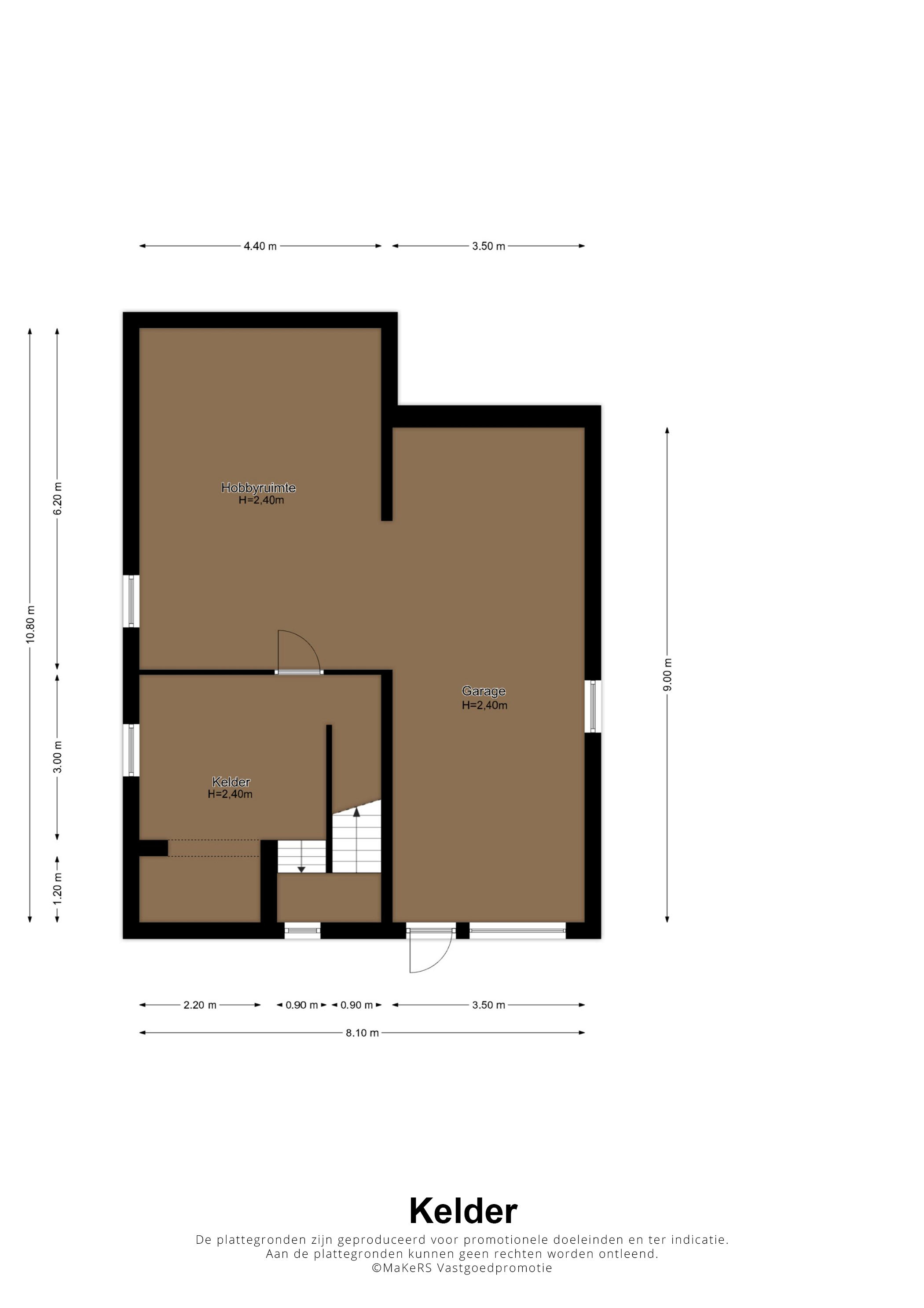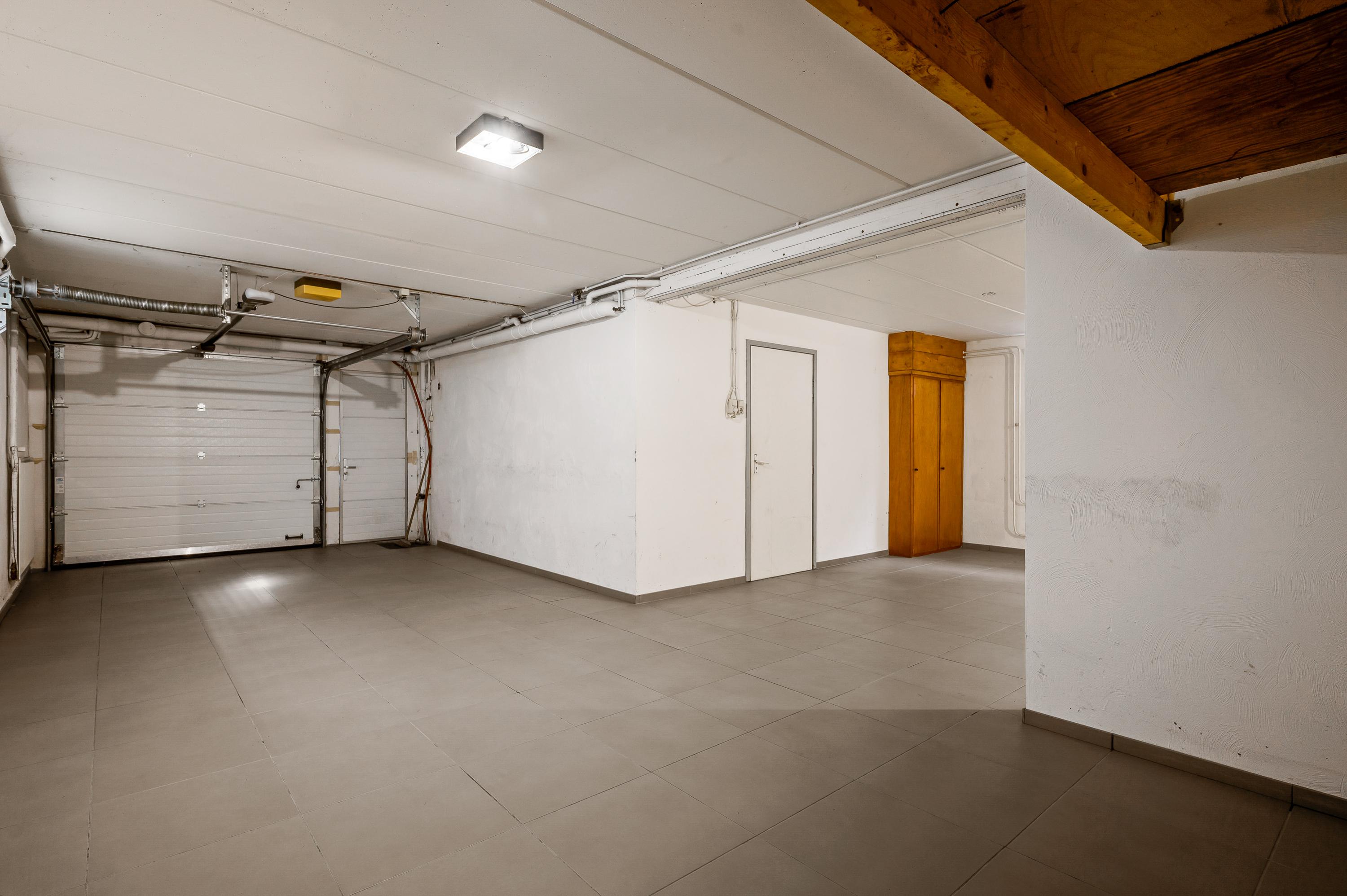 Via een trap in de hal loopt u naar souterrain. Hier is een verwarmde kelderruimte (circa 3,40 x 3,00), met een tegelvloer en een goede stahoogte. Aan de achterzijde is een royale hobbyruimte/werkplaats (circa 6,20 x 4,40), en de grootste ruimte in het souterrain is de garage (circa 9,00 x 3,50) met een elektrisch bedienbare sectionaalpoort.