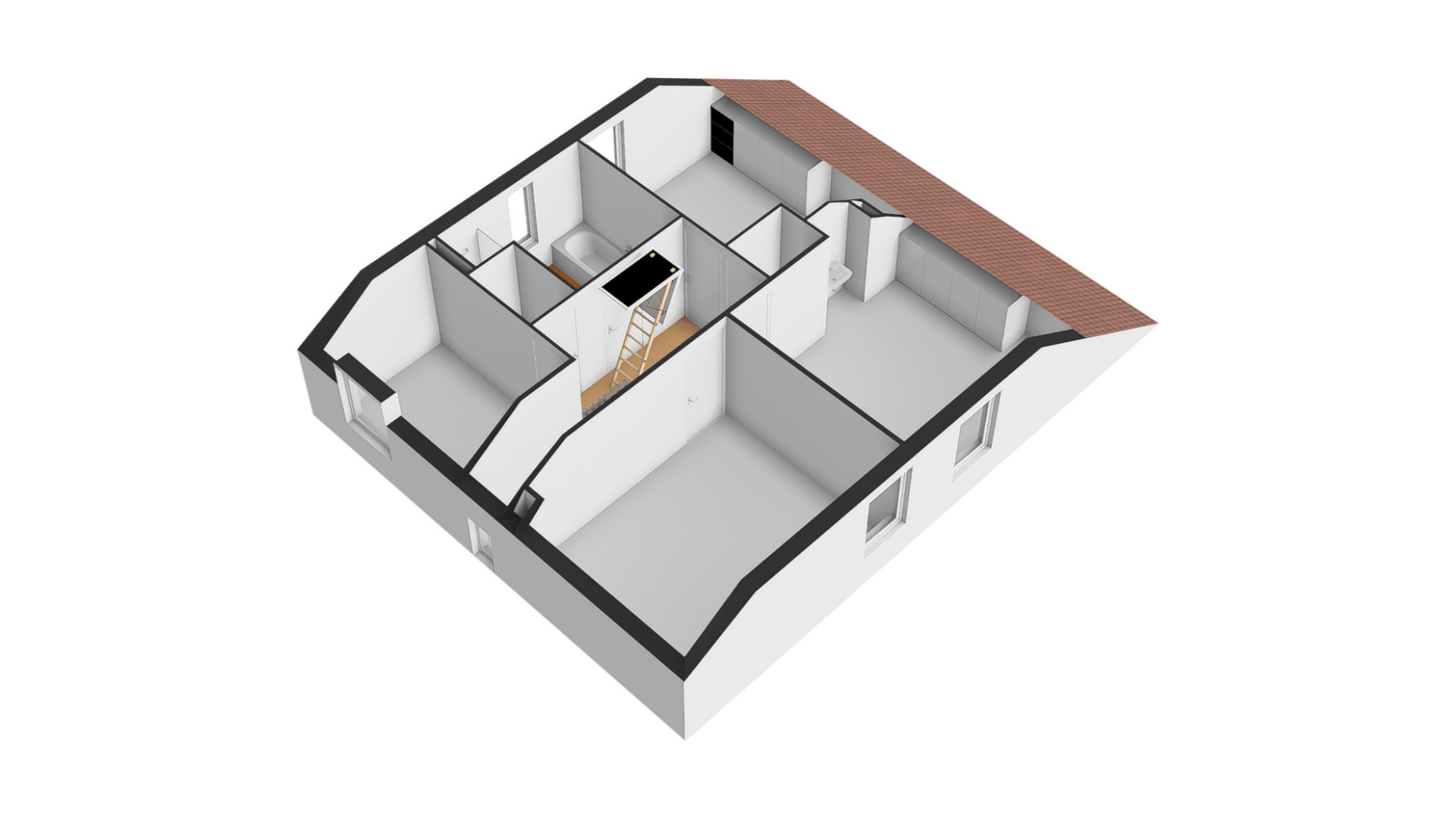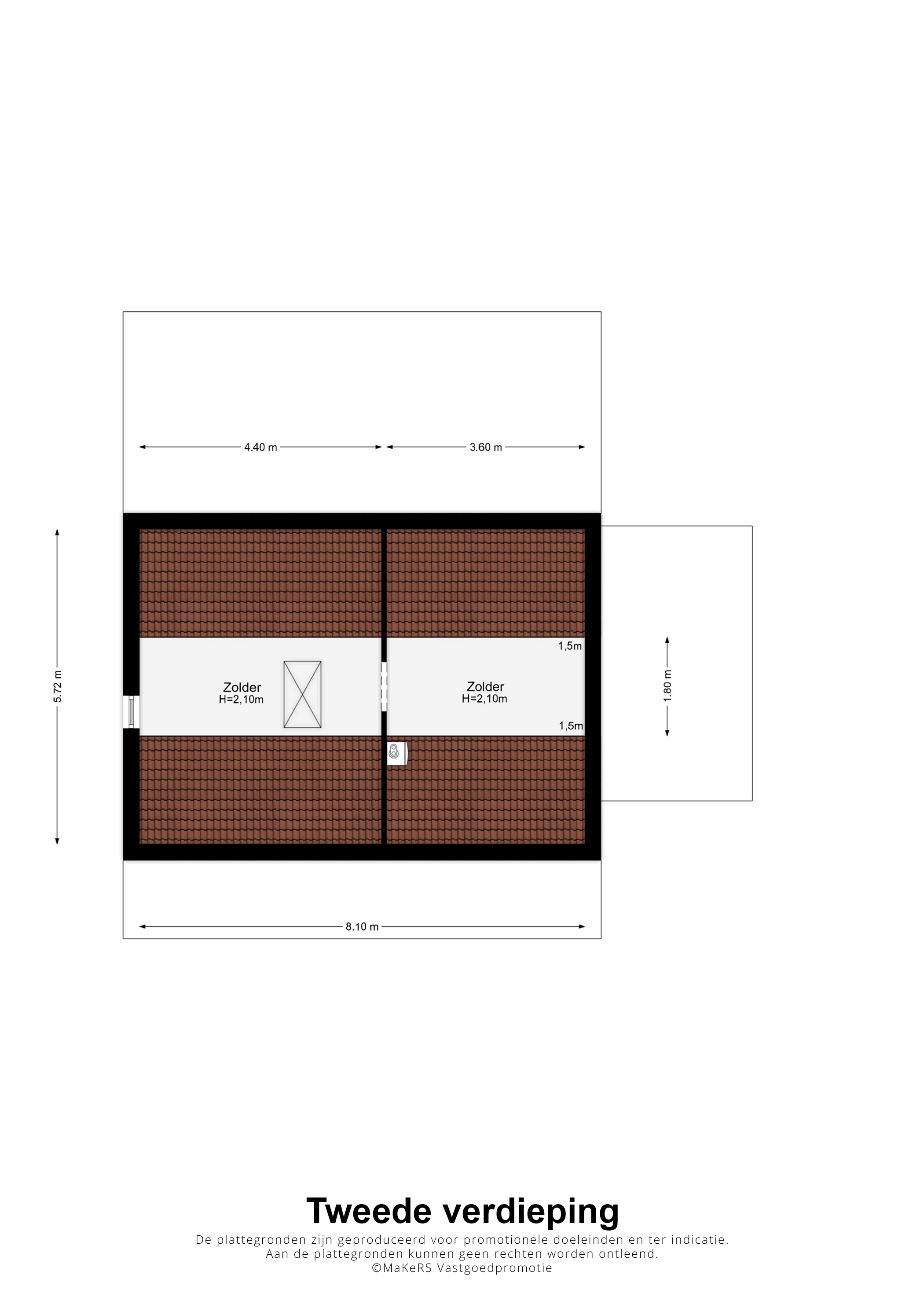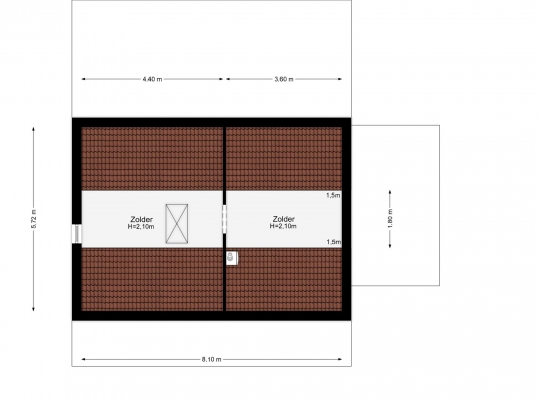 In de nok van het woonhuis is een dubbele zolder van totaal circa 8,00 x 1,80 meter (gemeten vanaf 1,50 meter hoogte). Hier is de opstelling van de HR-ketel (2022, eigendom) en de zonneboiler.