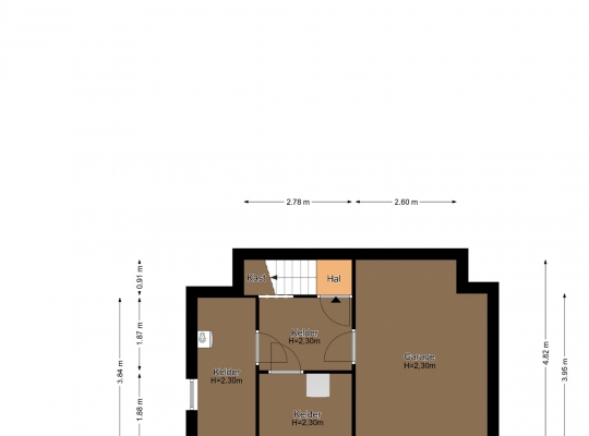 Wat een ruimte is er in het souterrain, waarvan u vanaf de straat alleen de garagepoort ziet. De verwarmde garage is circa 4,82 x 3,40/2,60 meter groot, perfect voor de auto en de fietsen. Naast de garage is kelder I (circa 2,39 x 1,87), van waaruit een trap naar de keuken leidt. Aan de voorzijde is kelder II (circa 2,39 x 1,88), en aan de linkerzijde kelder III (circa 3,84 x 1,50) met de opstelling van de HR-ketel (Hesi, 2018, huur). De hoogte van het souterrain is circa 2,30 meter.