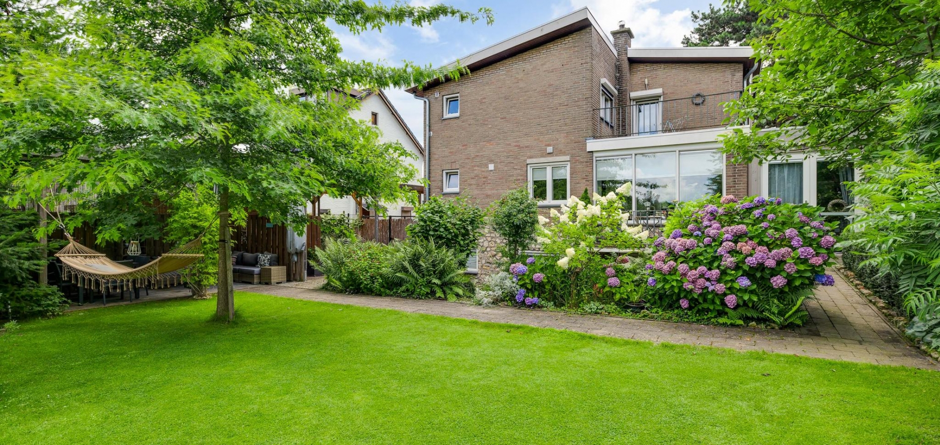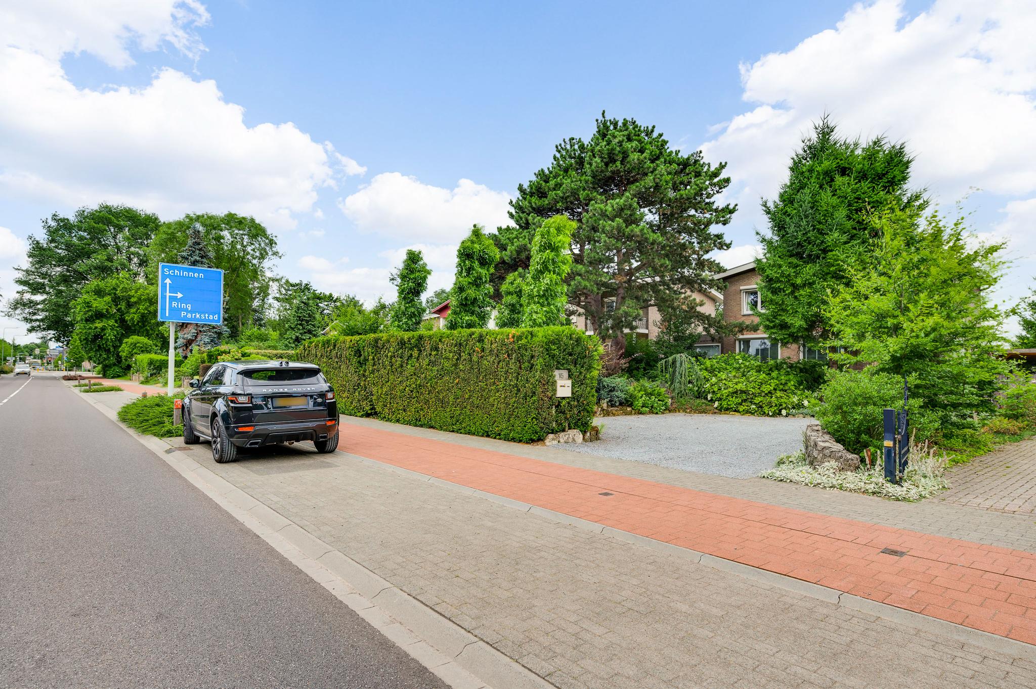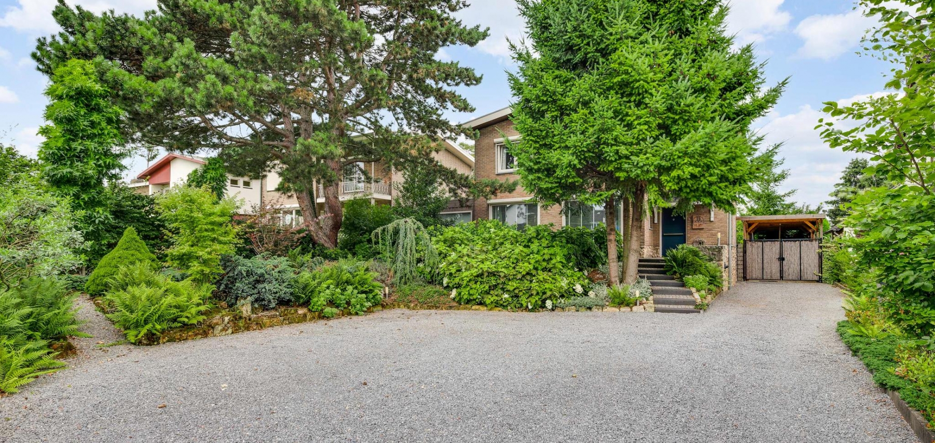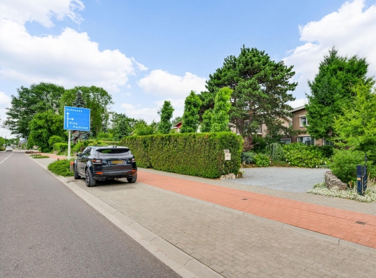 Aan de voorzijde, op de parkeerplaats/oprit, kunnen meerdere auto’s op eigen terrein staan en achter de dubbele poort is een carport, die hoog genoeg is voor een caravan of camper. De beplanting in de diepe voortuin zorgt niet alleen voor een huis met uitstraling, maar ook voor optimale privacy.