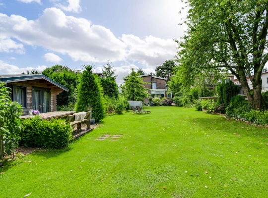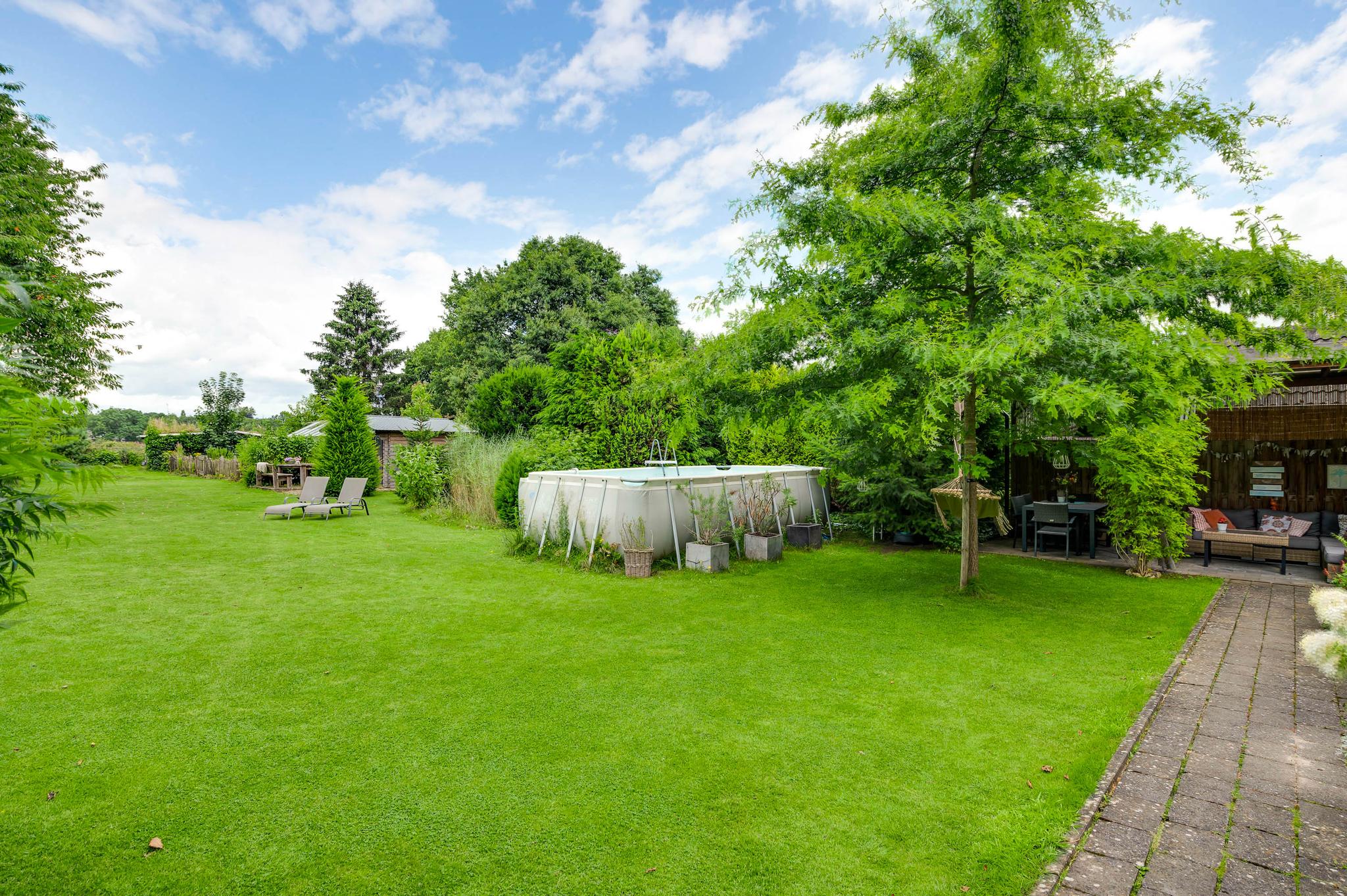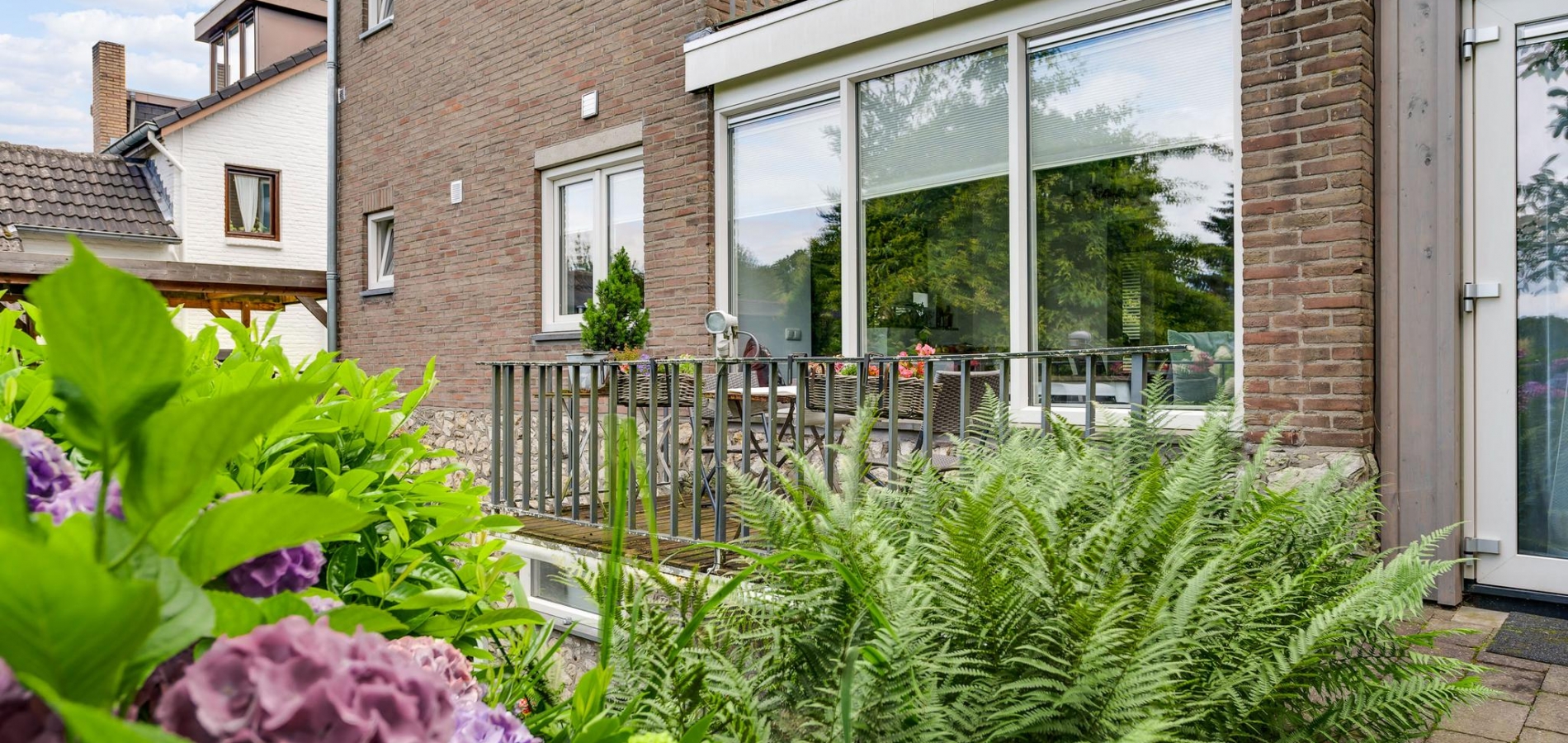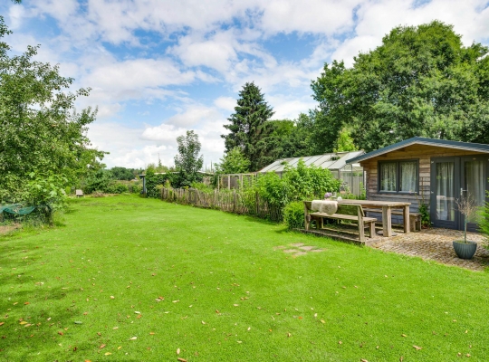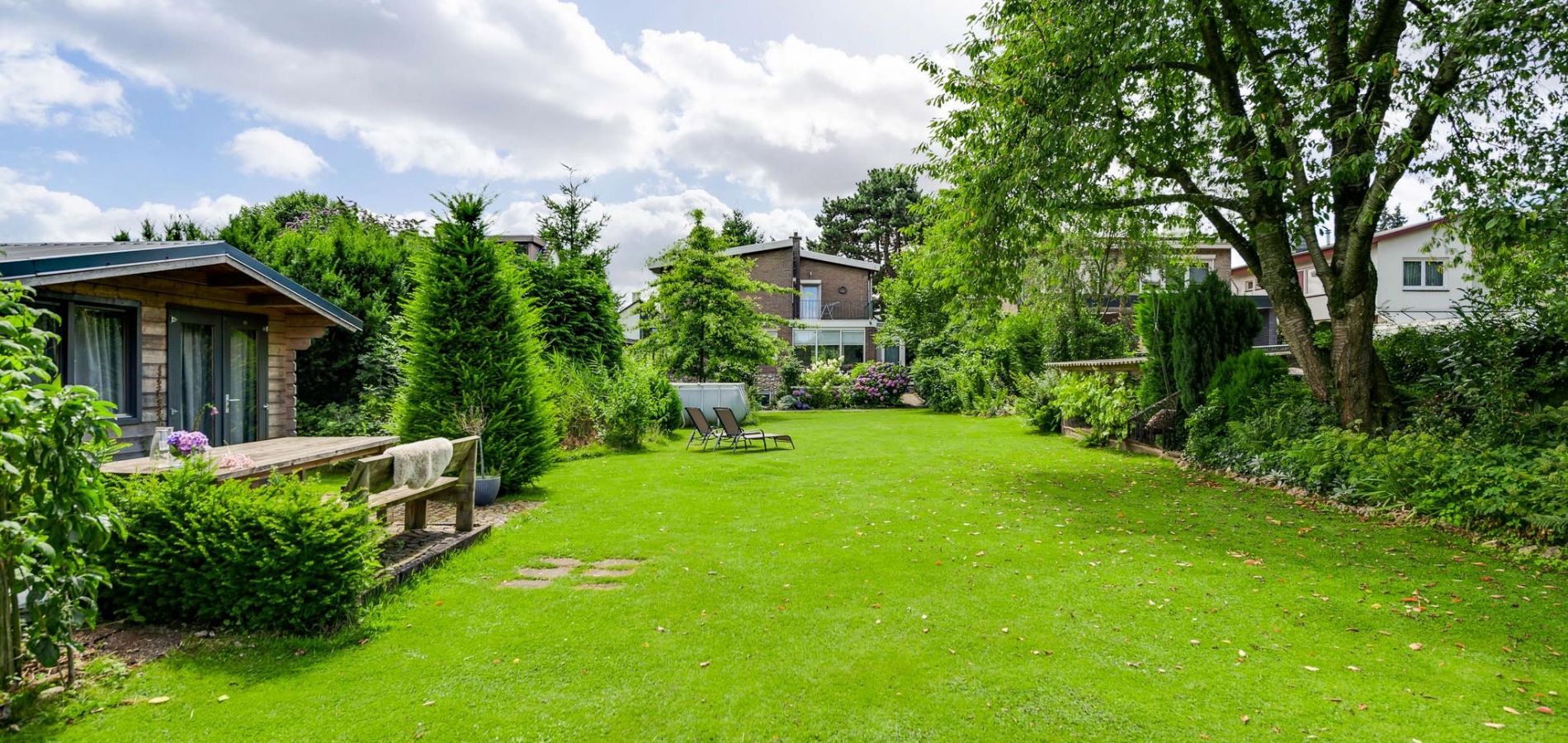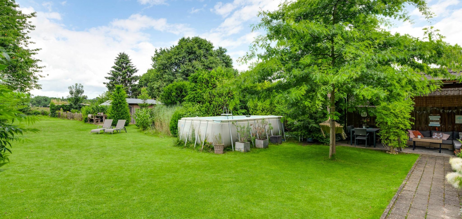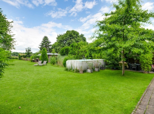 De zeer diepe tuin is een waar paradijs voor buiten- en natuurliefhebbers. Dit is de perfecte plek om te loungen onder de ruime overkapping, te zwemmen in het zoutwater zwembad en waar voldoende ruimte voor de kinderen is om buiten te spelen. Voor het kweken van groente en fruit is er een omheinde moestuin met een grote kas, waar de tuinliefhebber op slag verliefd op wordt. Verder staan er onder andere een dierenverblijf, een tuinhuis (ca. 3,90 x 3,00) en een berging (ca. 5,00 x 5,00). Het uitzicht is fraai, over een brede akker en met dubbele groene toren van de kerk in Amstenrade als herkenningspunt.
