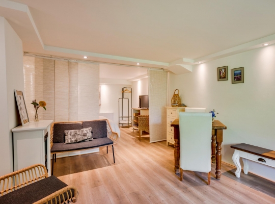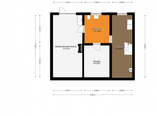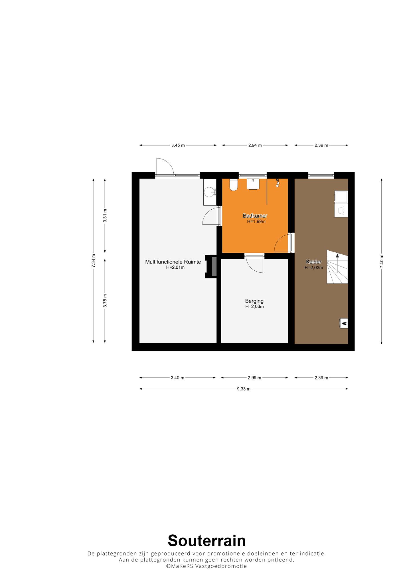 Het souterrain is een zeer ruime en multifunctionele verdieping met diverse ruimtes. De grote ruimte (ca. 7,34 x 3,45 x 2,00) is ingericht als slaap-/zitkamer, met een zelfstandige entree en directe toegang tot de achtertuin. Naast deze kamer is een moderne badkamer (ca.3,29 x 2,94) met een ruime inloopdouche, wastafelmeubel, wandcloset en een sauna. Altijd al gedroomd van een eigen praktijk /kantoor aan huis of B&B? Dan is dit uw kans. Verder zijn er een berging (ca. 3,75 x 2,99) en een kelderruimte (ca. 7,40 x 2,39) in het souterrain. In de kelderruimte is de opstelling van de HR-ketel (Vaillant, eigendom) en aan de andere zijde van de trap is ruimte voor de witgoedapparatuur.