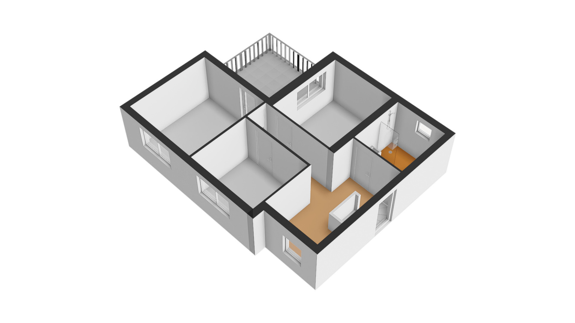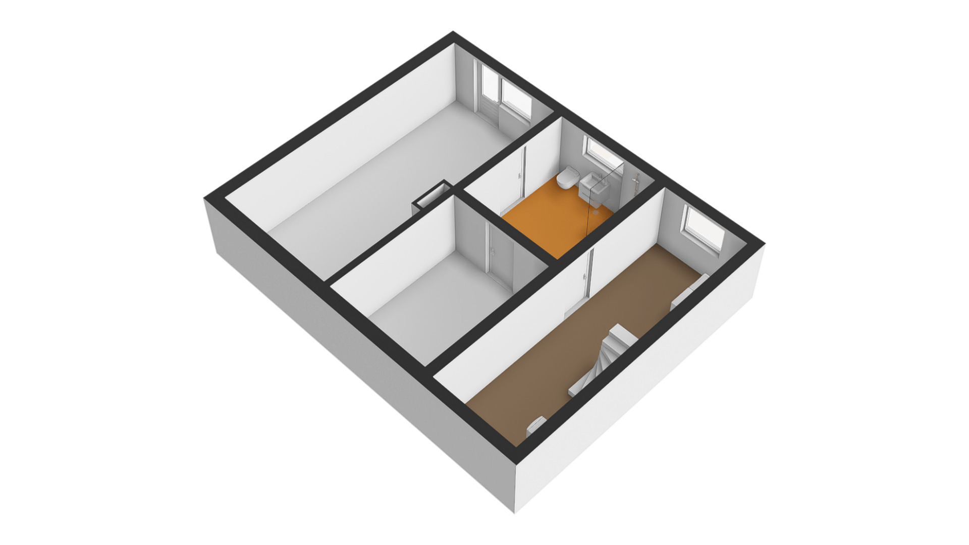 Volg de trap vanuit de hal naar de ruime, lichte overloop (ca. 11,5 m2) met lichtinval aan twee zijden en een fraaie uitstraling. Aan de overloop grenzen drie slaapkamers en een badkamer.