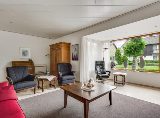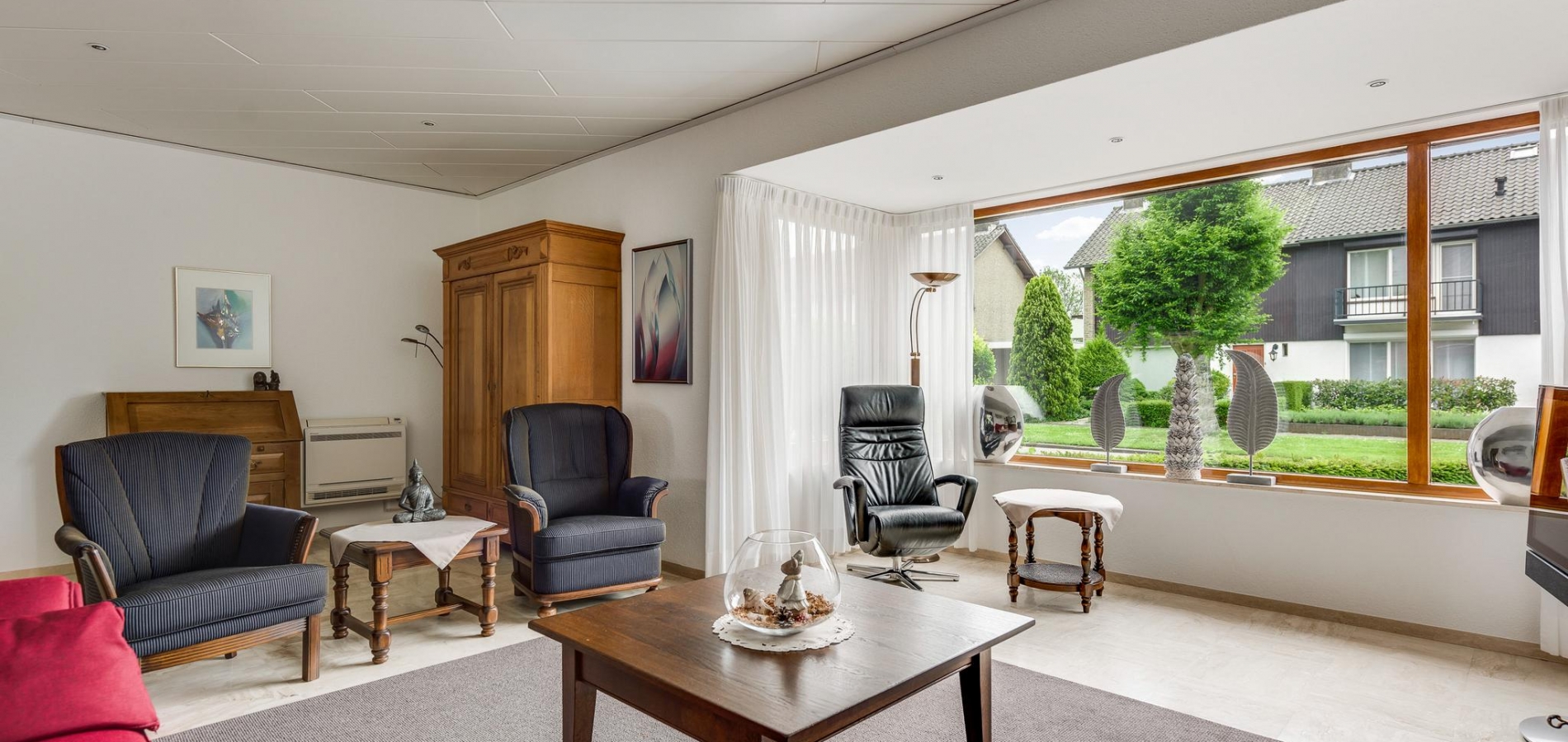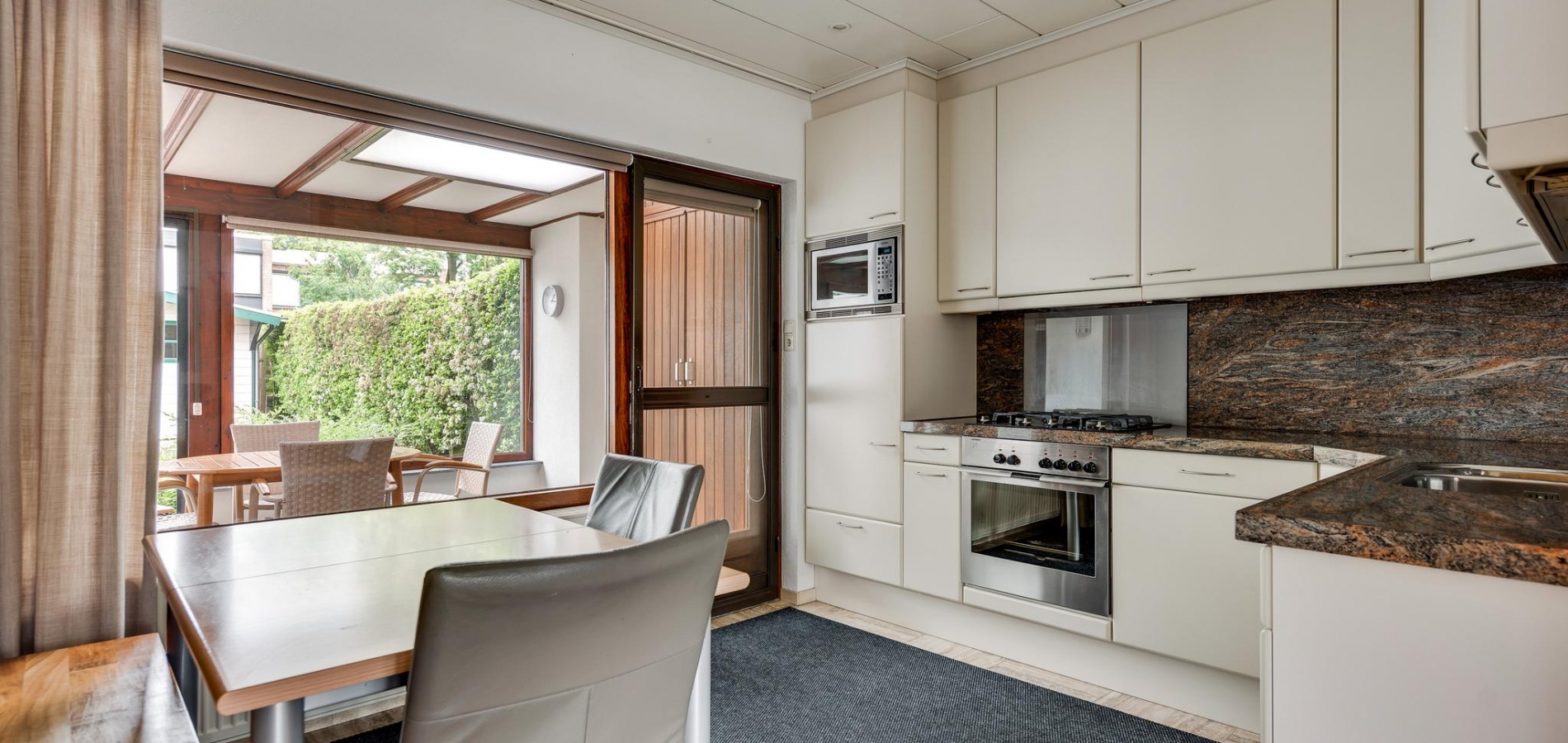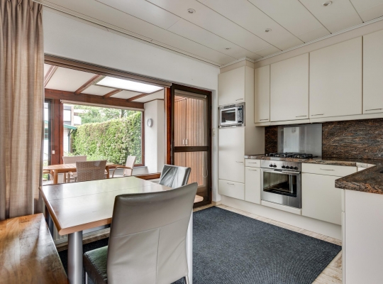 De woonkamer met grote erker biedt fraai uitzicht naar de brede Beukenlaan en de eetkamer met twee lichtkoepels is een uitstekende toevoeging aan deze woning. De totale oppervlakte van de woonkamer, eetkamer en keuken bedraagt ca. 59 m2. In de eetkamer, in een kast, is de opstelling van de HR-ketel (Nefit 2018 eigendom).