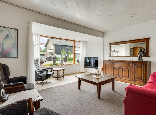Fors uitgebouwde woning met een erker, eetkamer, 3 slaapkamers en een garage. Met een totale oppervlakte van ca. 59 m2 bieden de woonkamer, eetkamer en keuken verrassend veel ruimte. Boven zijn drie slaapkamers en de badkamer, terwijl de woning ook een wijn-/provisiekelder heeft. De ruime tuin en garage met oprit maken deze woning heel compleet.