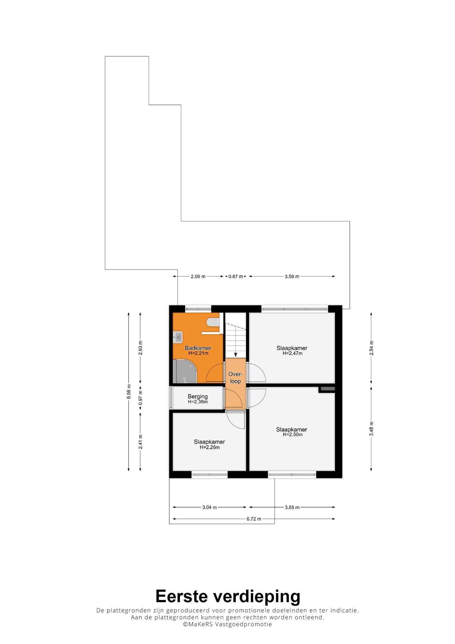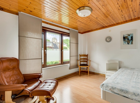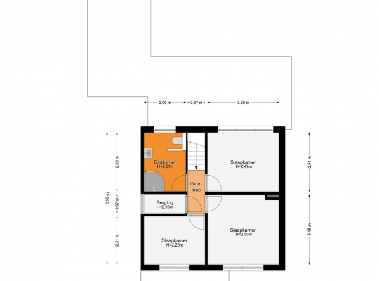 Aan de overloop grenzen drie ruime slaapkamers, de badkamer en een berging. Slaapkamer I (ca. 3,56 x 2,94) en slaapkamer II (ca. 3,55 x 3,48) bevinden zich aan de voorzijde en aan de achterzijde ligt slaapkamer III (ca. 3,04 x 2,41). De badkamer (ca. 2,93 x 2,08) is ingedeeld met een douche, toilet en wastafel. Het is mogelijk om de badkamer te vergroten, door de bergruimte bij de badkamer te betrekken. Of kiest u voor een separate toiletruimte op deze verdieping?