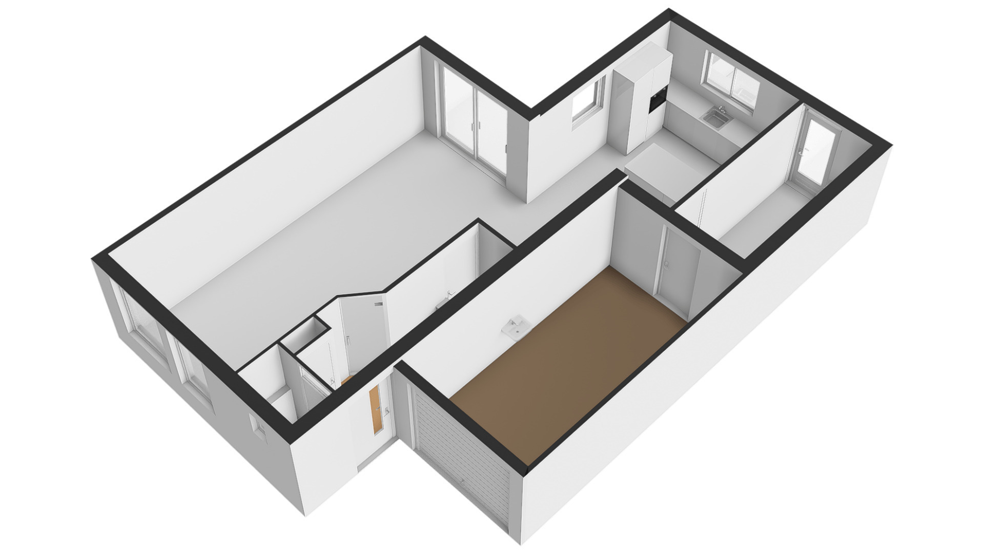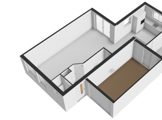 Naast de keuken is de bijkeuken (circa 4,00 x 1,65), met toegang tot de achtertuin en de garage. In de bijkeuken staat een grote kastenwand met ruimte voor de wasmachine en droger. De garage (circa 5,60 x 3,00) is voorzien van elektra, een gootsteen en een sectionaalpoort naar de oprit.