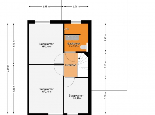 Vier slaapkamers, waarvan een op de tweede verdieping