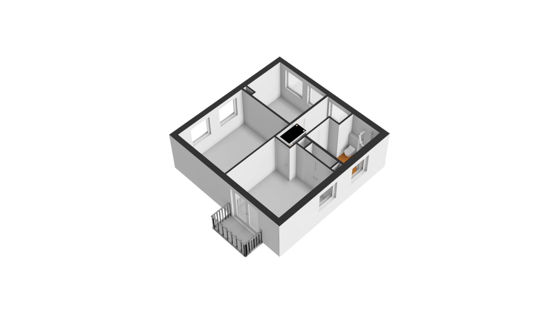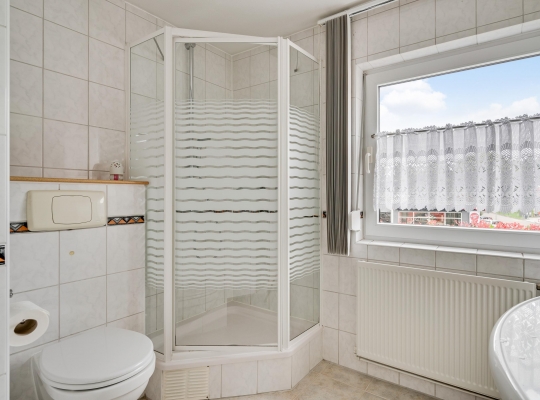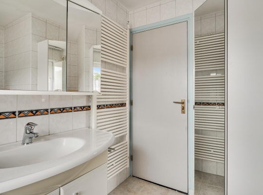 Aan de voorzijde zijn slaapkamer I (circa 4,03/3,44 x 3,31) met balkon en slaapkamer II (circa 4,03 x 3,17), die beiden groot genoeg zijn om in te richten als master bedroom. In slaapkamer I hangt een airco-unit, die kan koelen en verwarmen. Slaapkamer III (circa 3,16 x 2,52) is aan de achterzijde, net als de badkamer met een douche, toilet en wastafel.