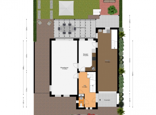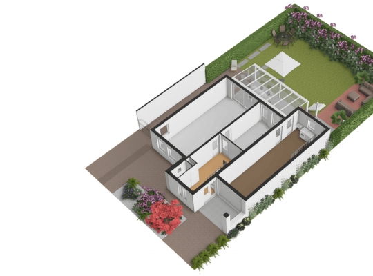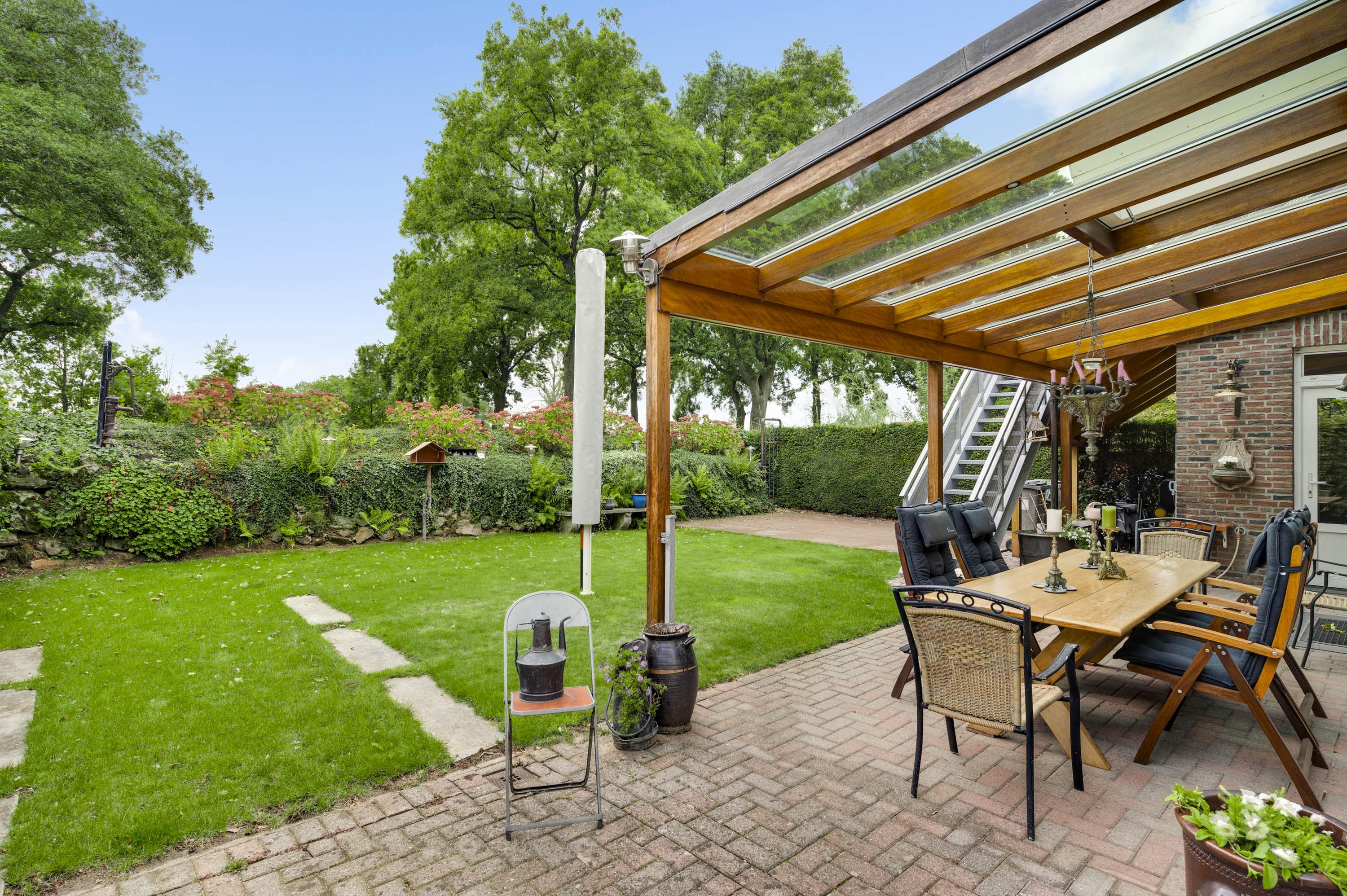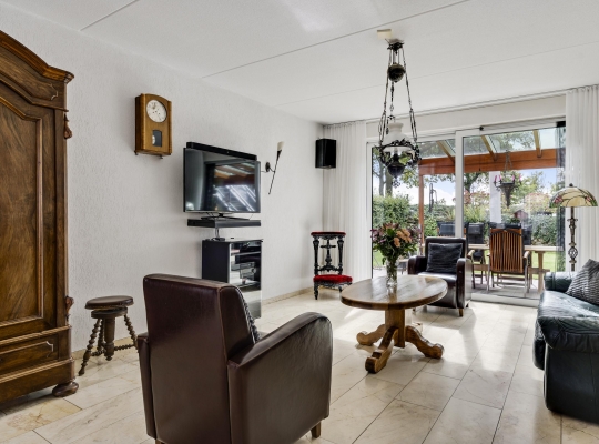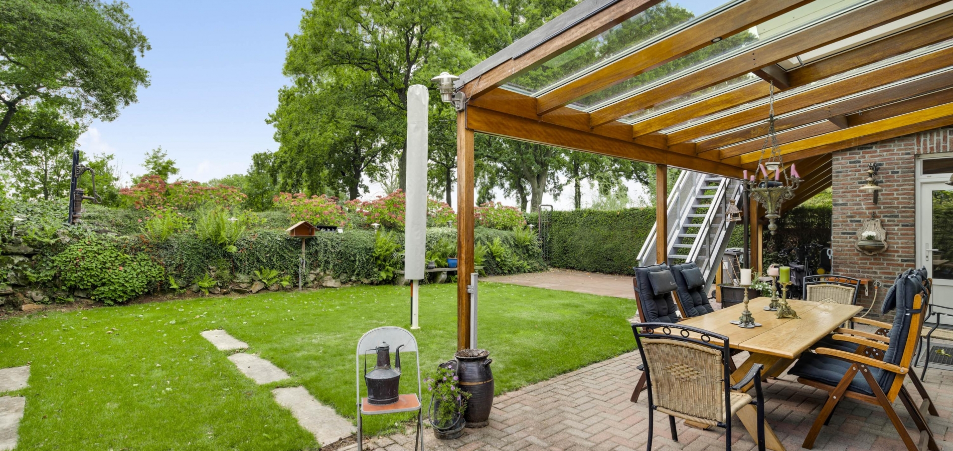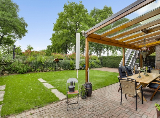 Dit verrassend ruime woonhuis heeft een mooi aangelegde voortuin, een brede achterom met dubbele poort en een ruime achtertuin met veel privacy. Het overdekte terras, met glazen dakpanelen en een glazen schuifwand, is een heerlijke plek om buiten te zitten.