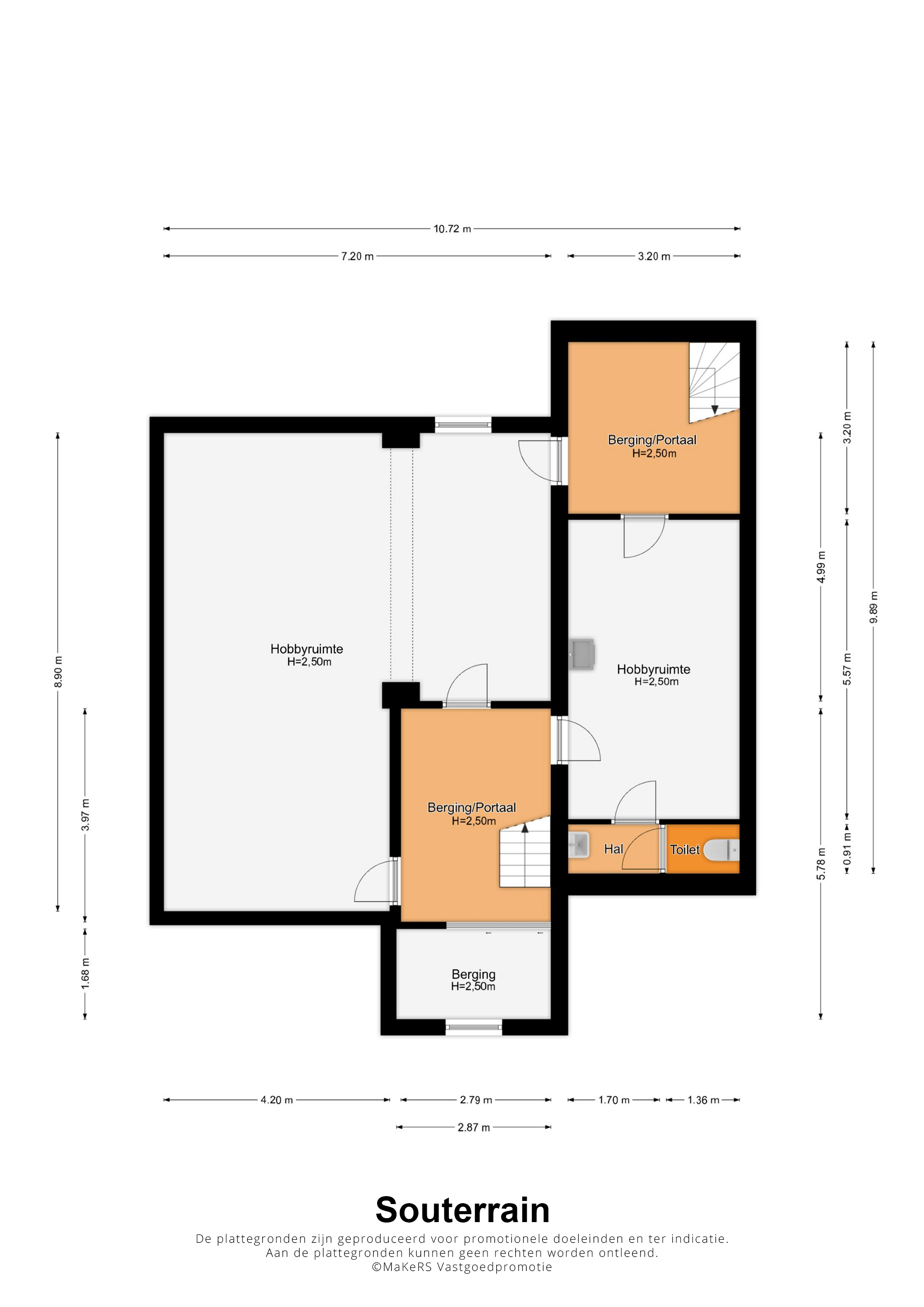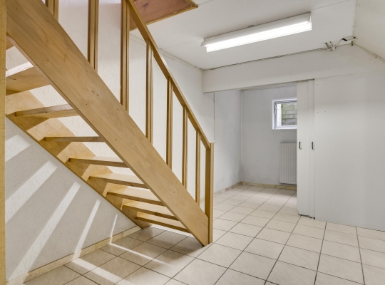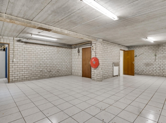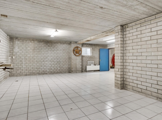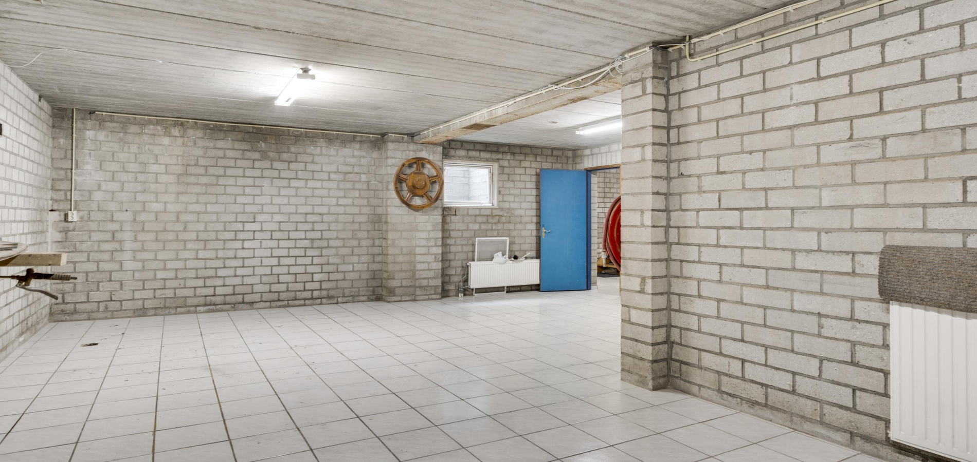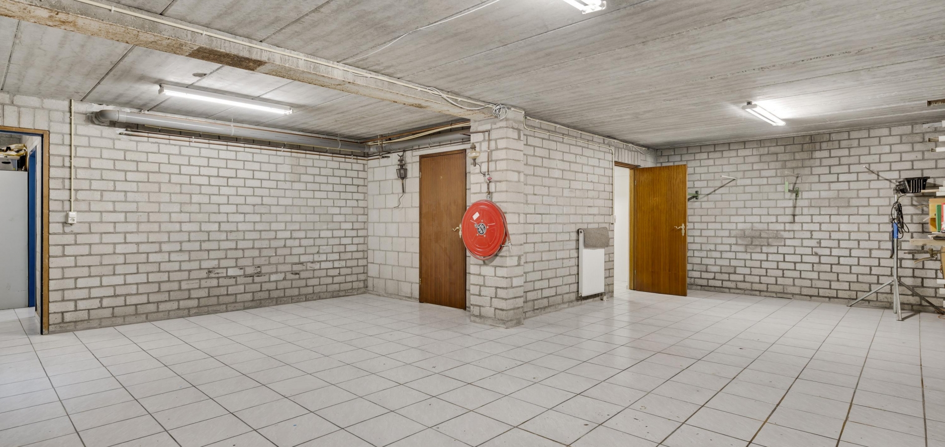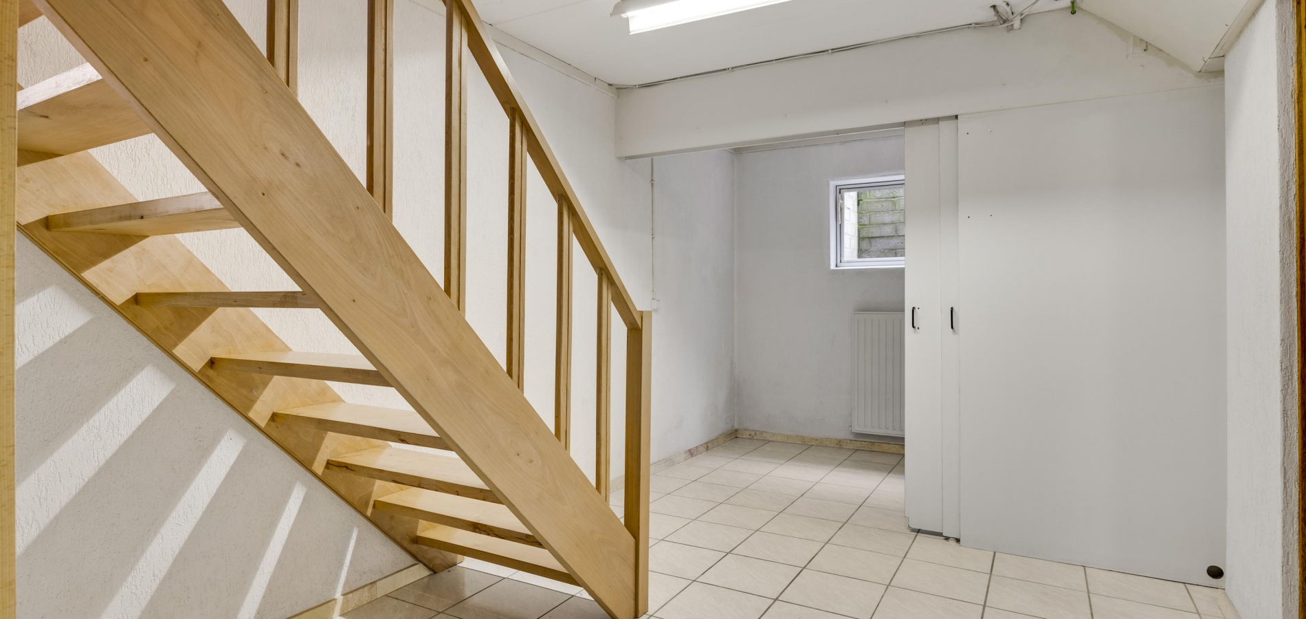 Vanuit de hal én garage heeft u toegang tot het multifunctionele souterrain, met een royale hoogte en een keramische tegelvloer. De trap in de hal leidt naar een berging van circa 5,78 x 2,87 meter, met schuifdeuren in tweeën verdeeld. Aansluitend is een grote hobbyruimte van circa 52 m2, met verwarming en een koekoek in de achtergevel.