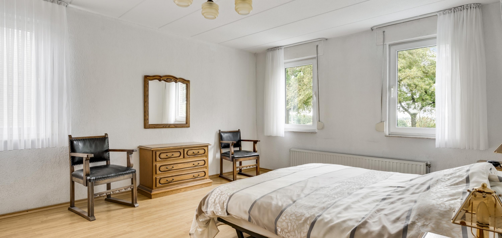 Aan de andere zijde van de overloop, boven de woonkamer, zijn slaapkamer III (circa 3,69 x 4,18) en slaapkamer IV (circa 5,08 x 4,18). De laatstgenoemde slaapkamer, met uitzicht naar de achtertuin, wordt als master bedroom gebruikt.