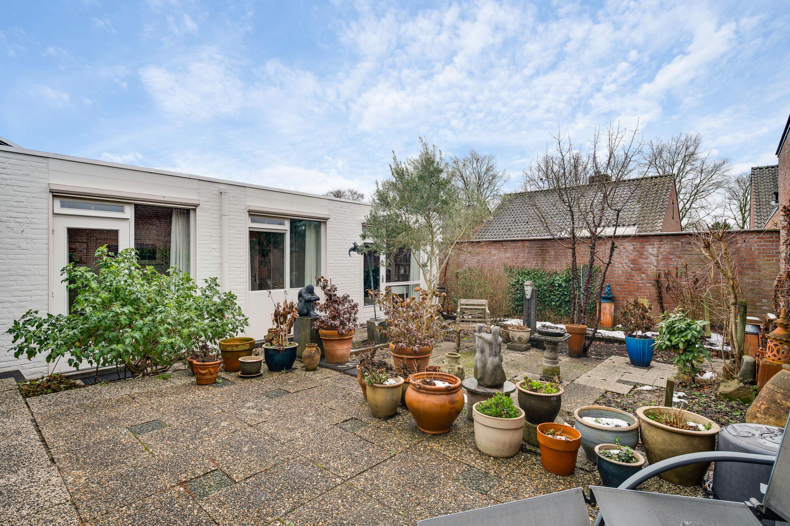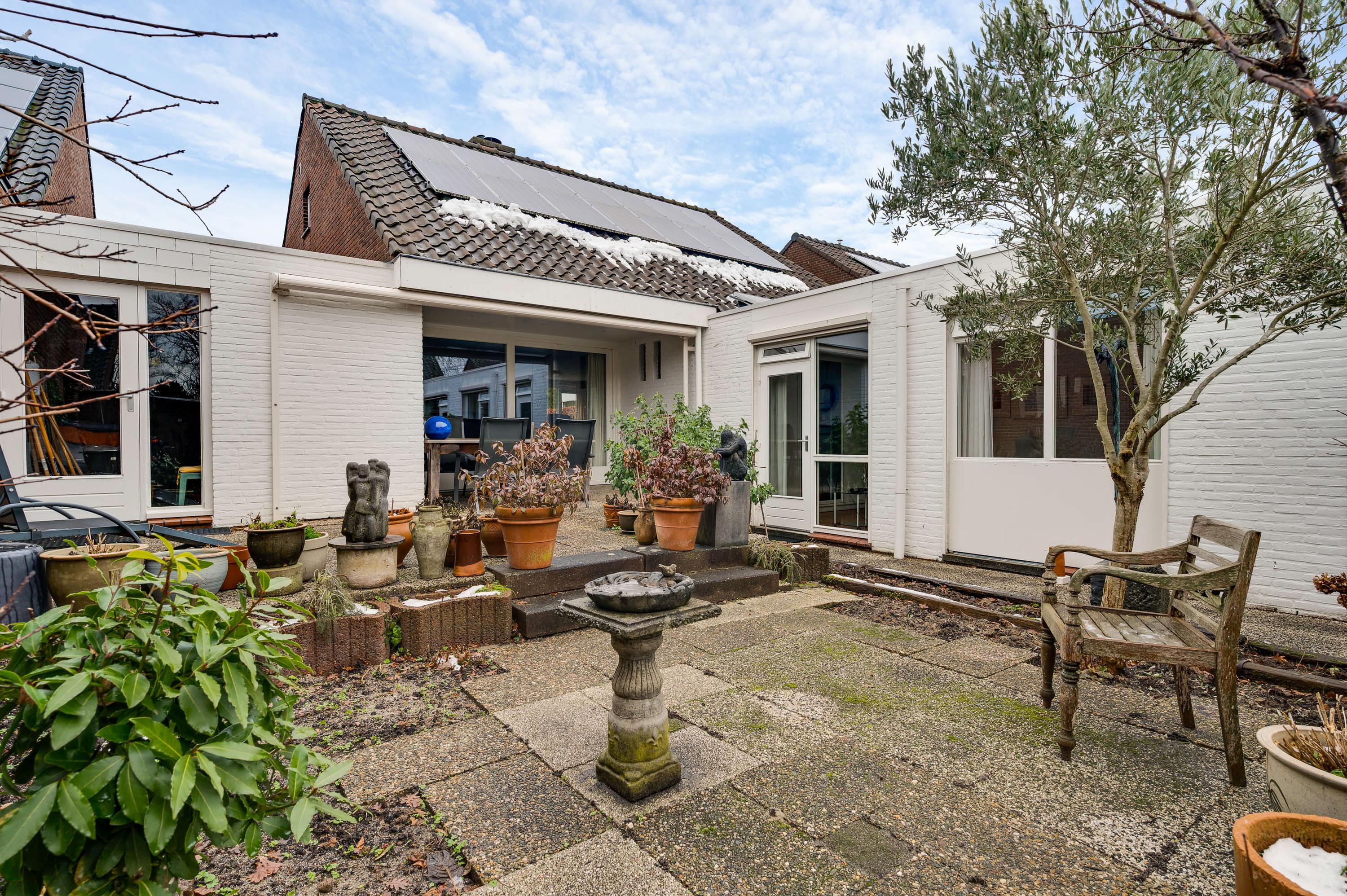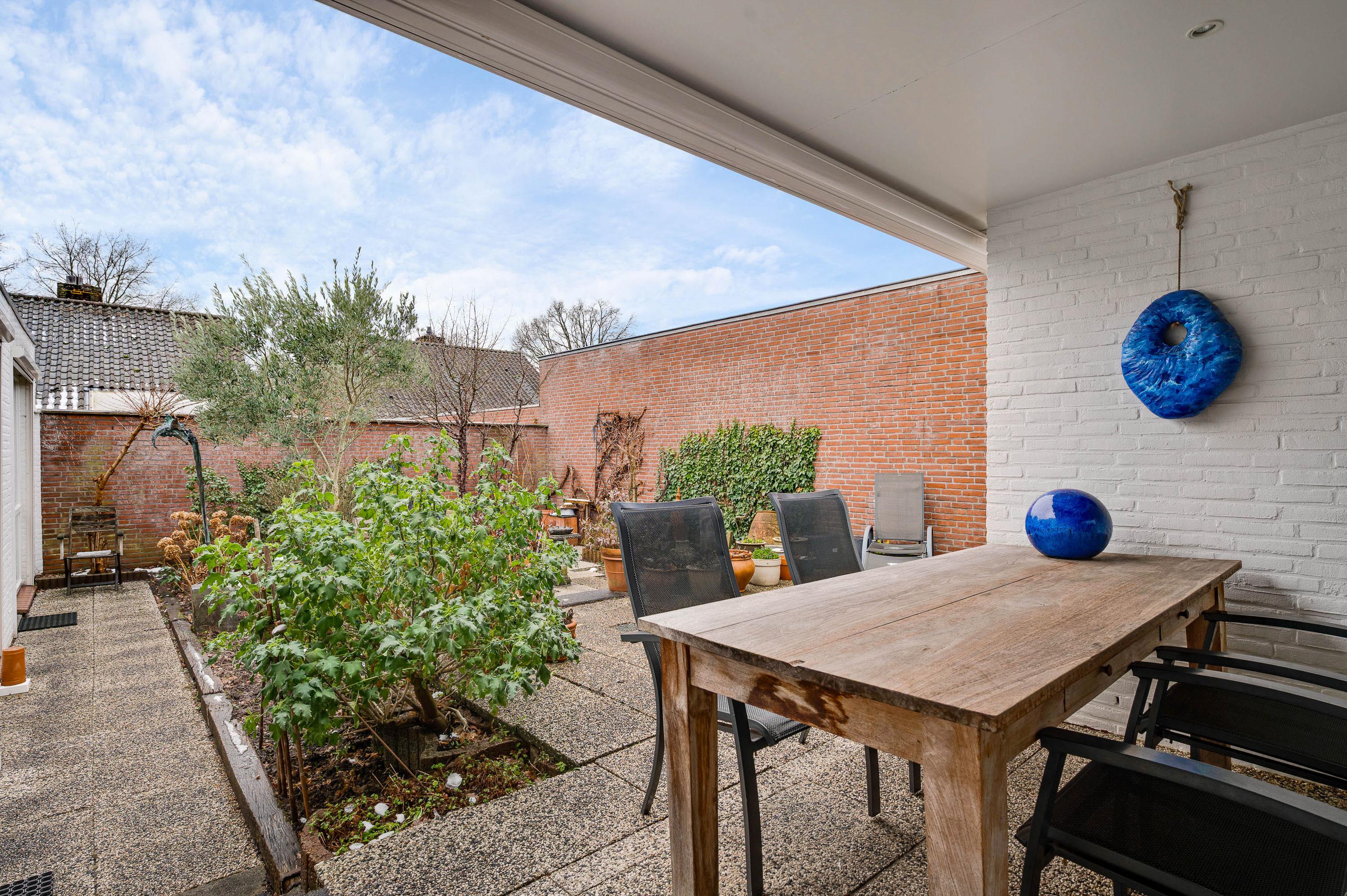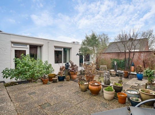 Een groot pluspunt van de achtertuin is de ligging op het zonnige zuiden. Een groot deel is bestraat, waardoor er genoeg plek is om lekker buiten te zitten. Omringende bebouwing is laag, met veel privacy als resultaat. In de voortuin vindt u gevarieerde, deels groenblijvende beplanting die weinig onderhoud nodig heeft.