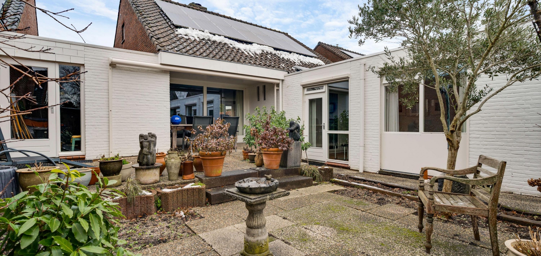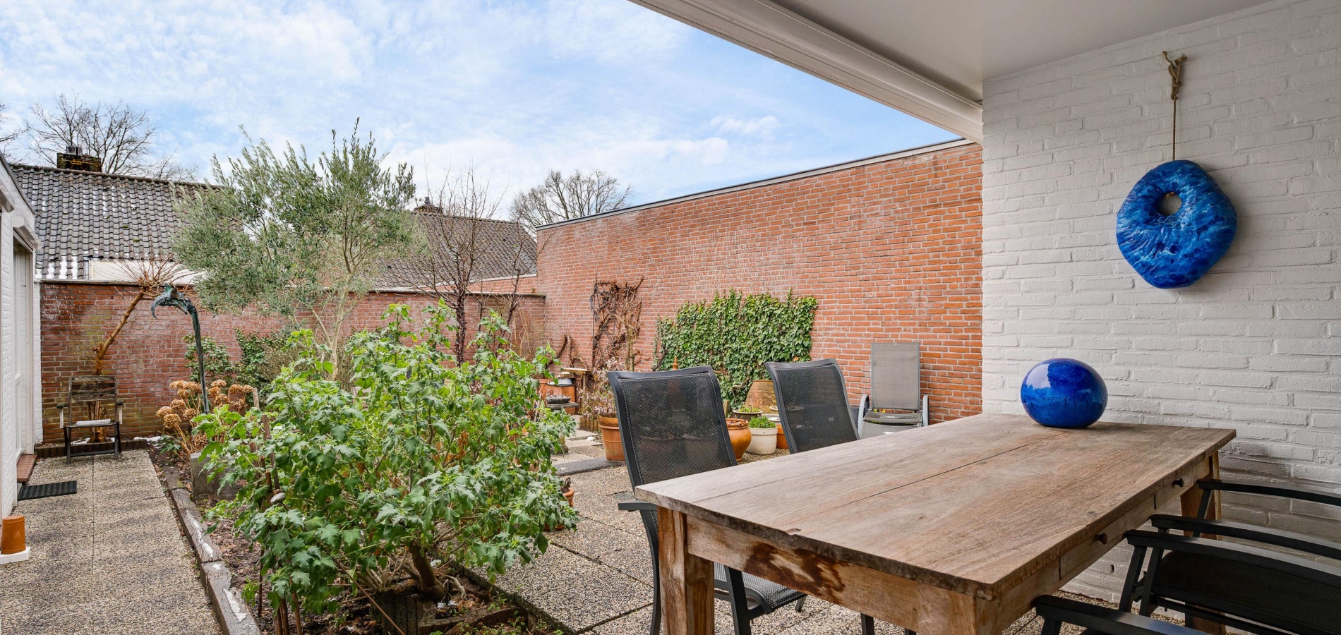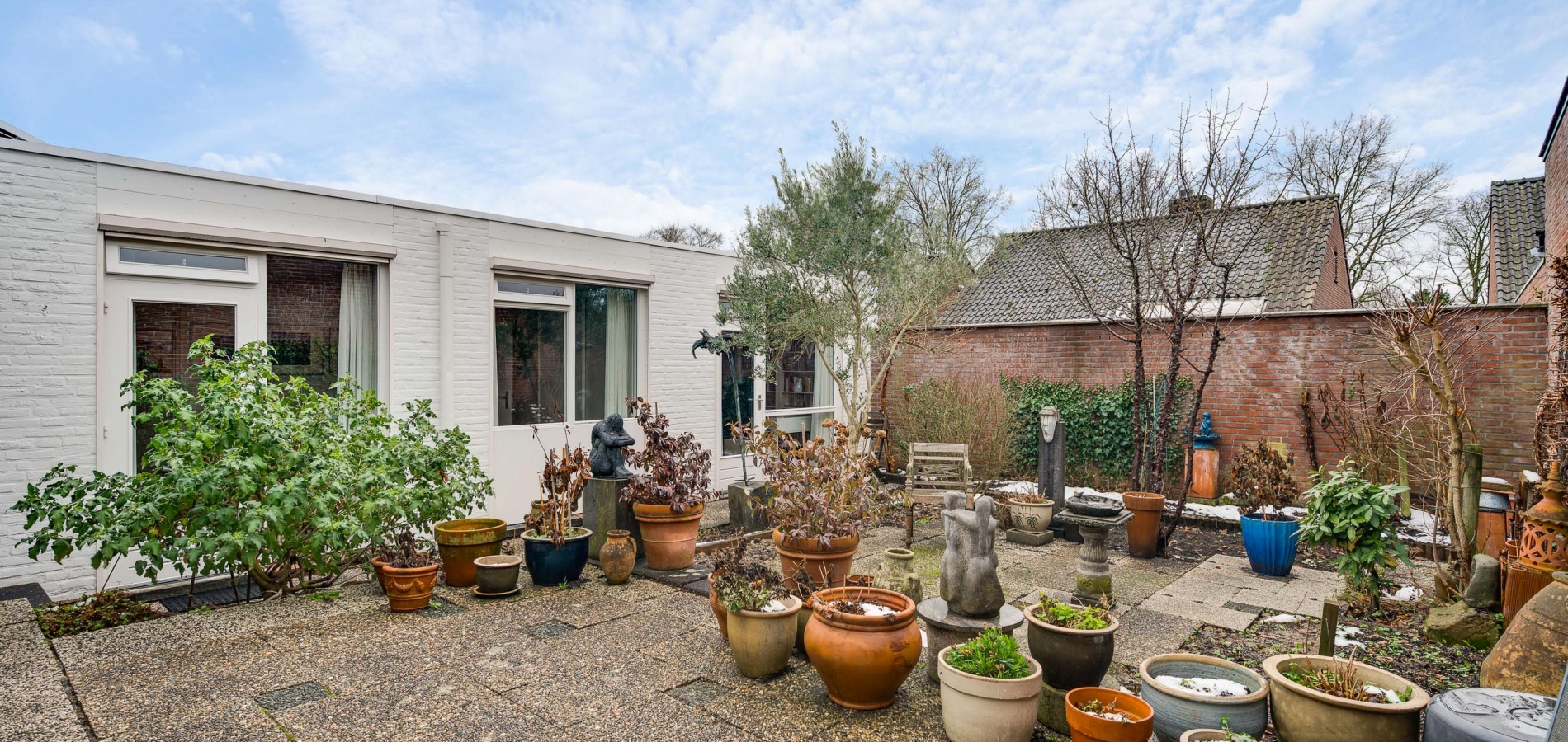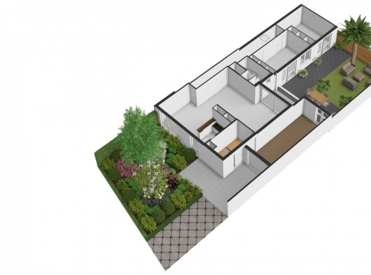 Een groot pluspunt van de achtertuin is de ligging op het zonnige zuiden. Een groot deel is bestraat, waardoor er genoeg plek is om lekker buiten te zitten. Omringende bebouwing is laag, met veel privacy als resultaat. In de voortuin vindt u gevarieerde, deels groenblijvende beplanting die weinig onderhoud nodig heeft.