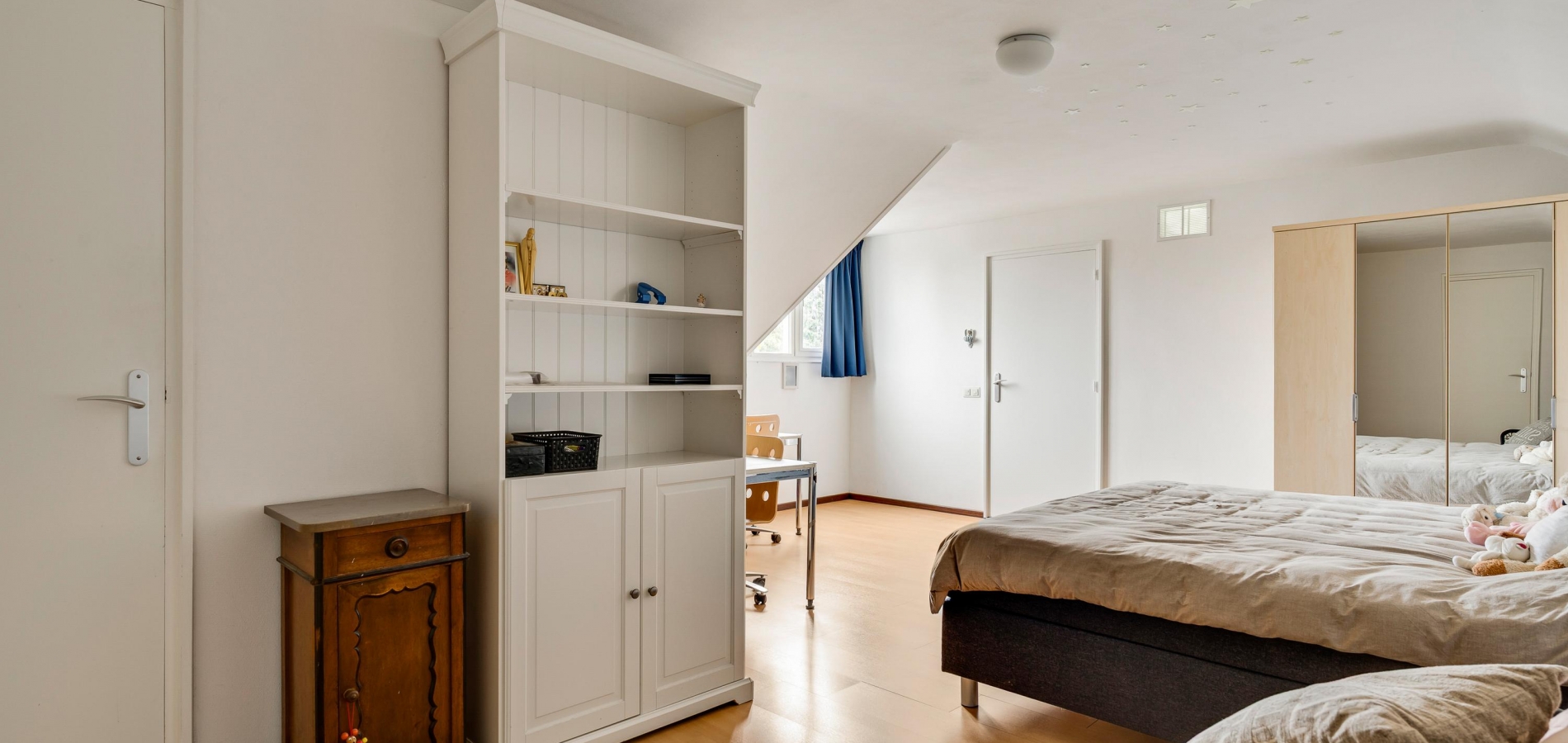 Ruime slaapkamer met badkamer op de eerste verdieping