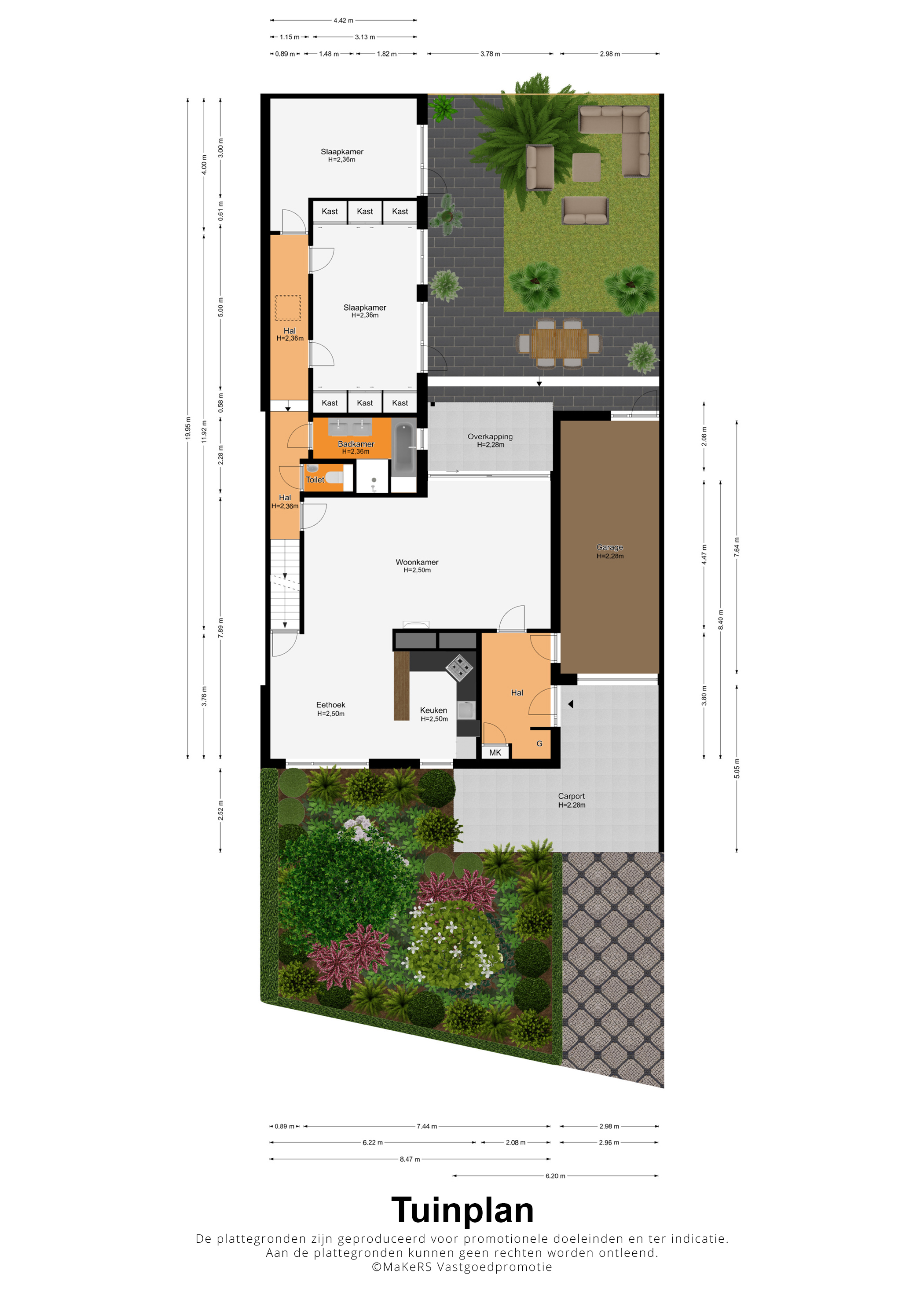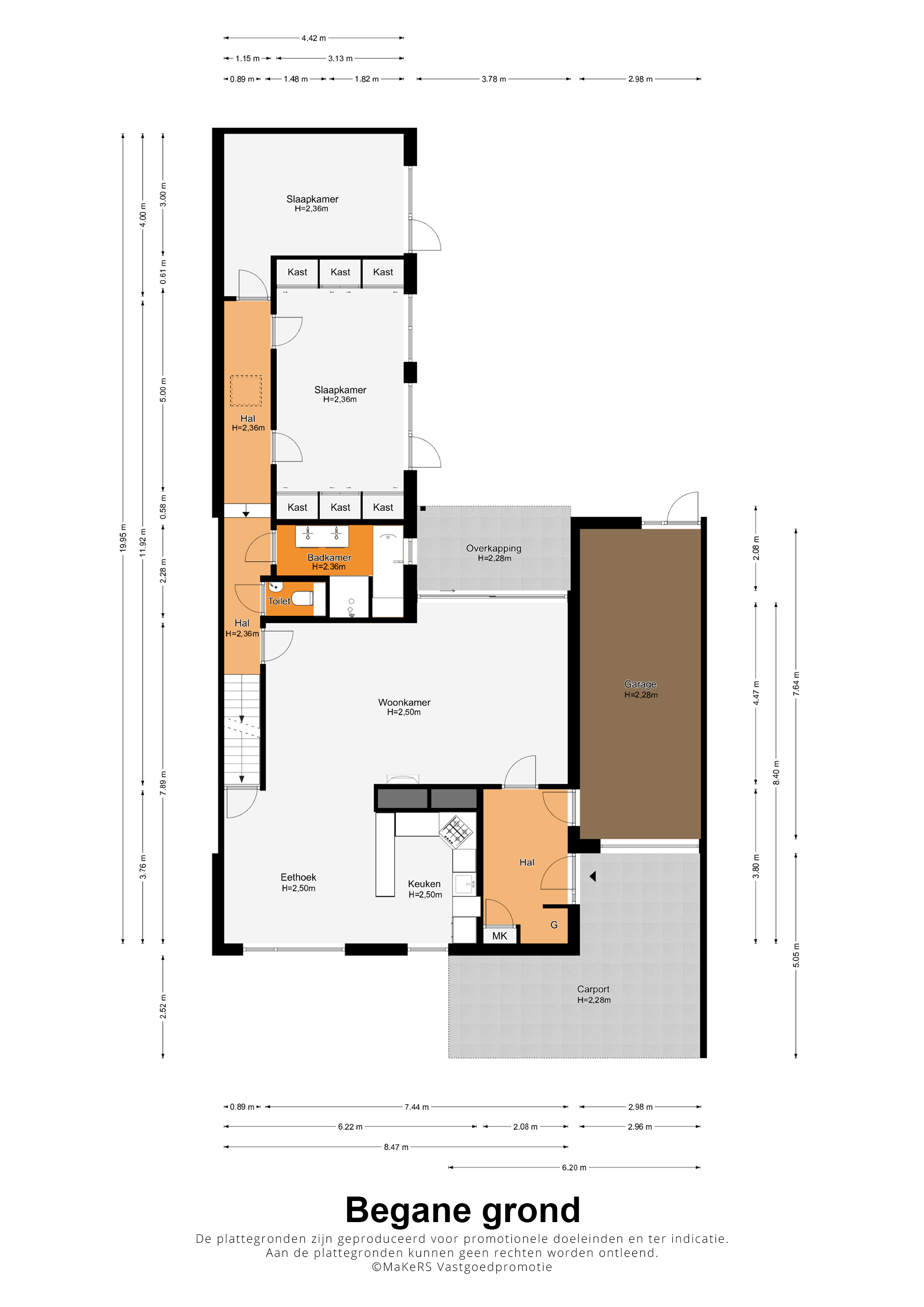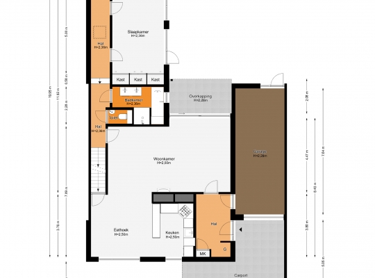 Nooit meer zoeken naar een parkeerplek, want deze woning heeft een ruime oprit met carport. Parkeren kan ook in de garage (circa 7,64 x 2,98), die ook vanuit de hal bereikbaar is. In de hal (circa 3,80 x 2,08) ziet u verder een garderobe en de meterkast.