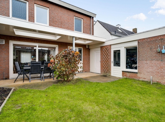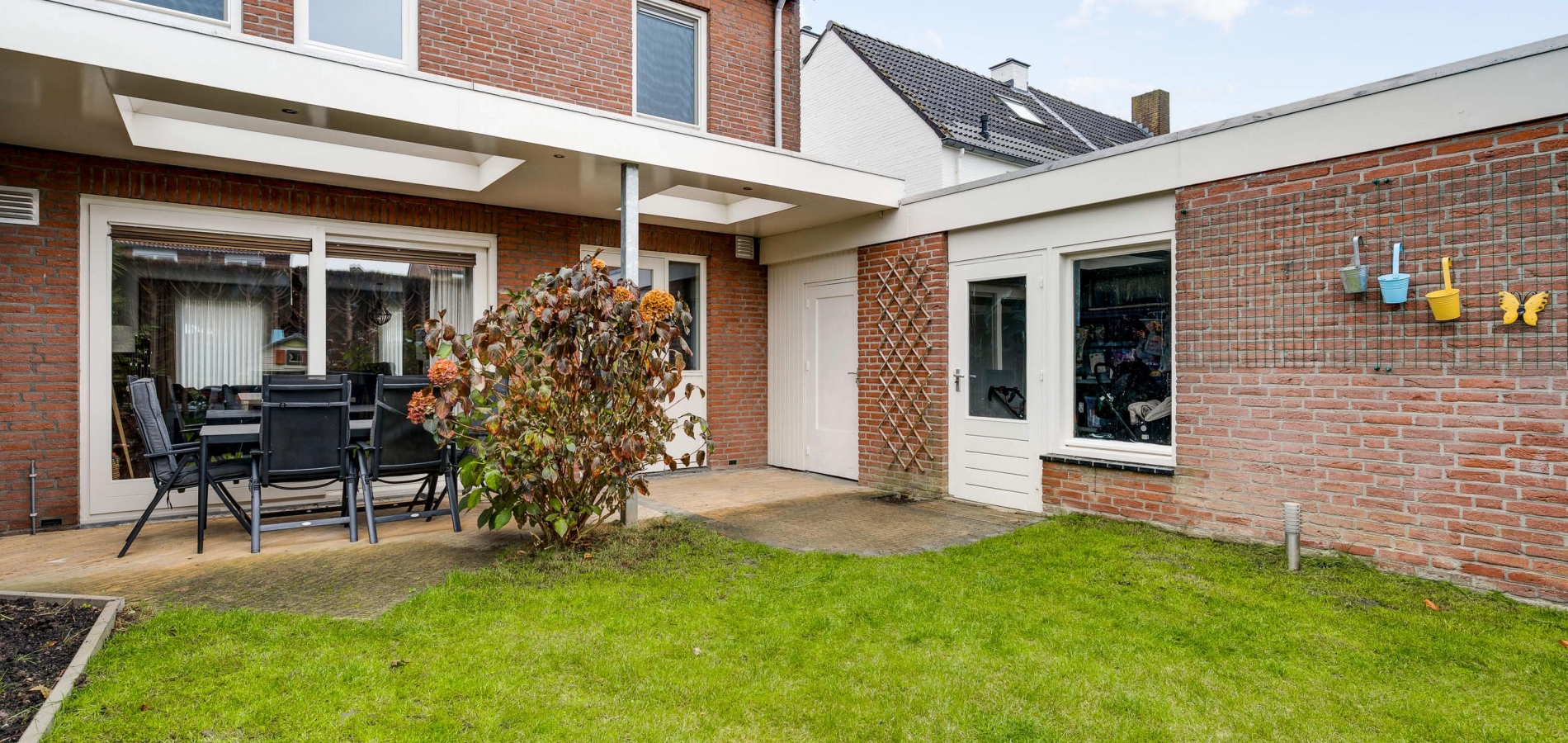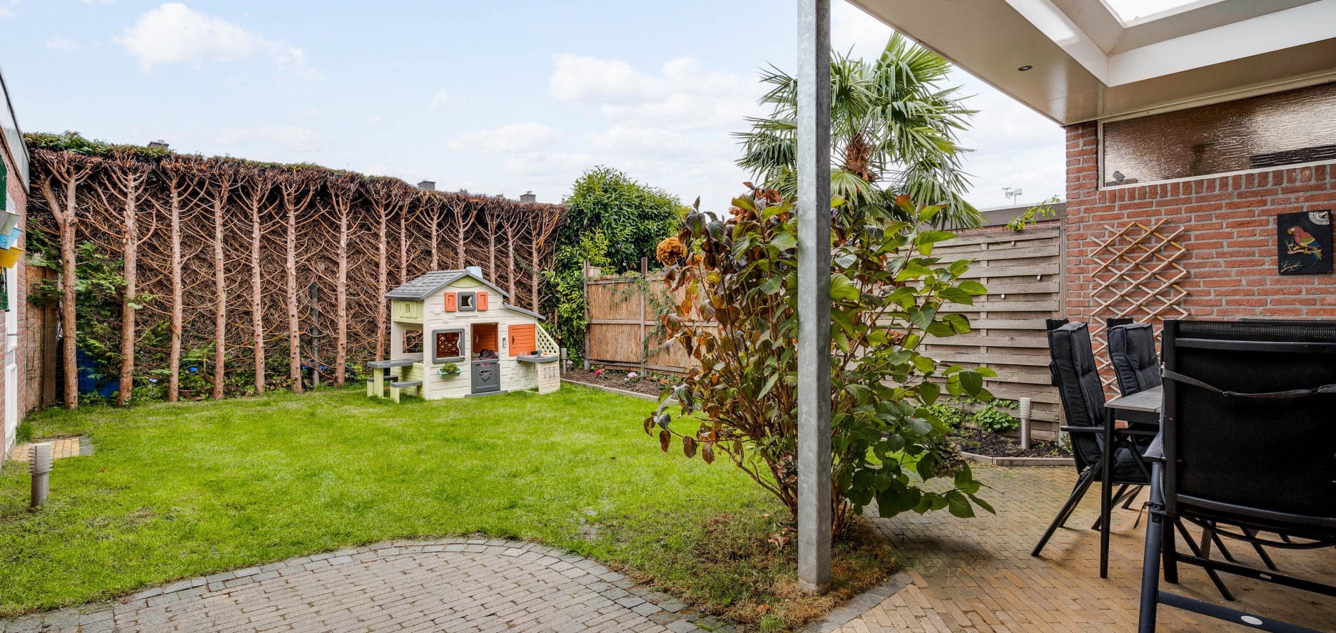 Niet alleen de garage en de carport, maar ook de oprit biedt parkeergelegenheid op eigen terrein. Naast de oprit is de voortuin, met groenblijvende hagen en gras. Ook in de achtertuin, op het noorden, ziet u gras. Dit is een fijne speelplek voor de kinderen, terwijl u zelf het overdekte terras (circa 6,32 x 2,19) als favoriete plek zal beschouwen.