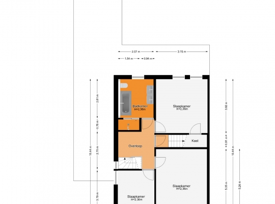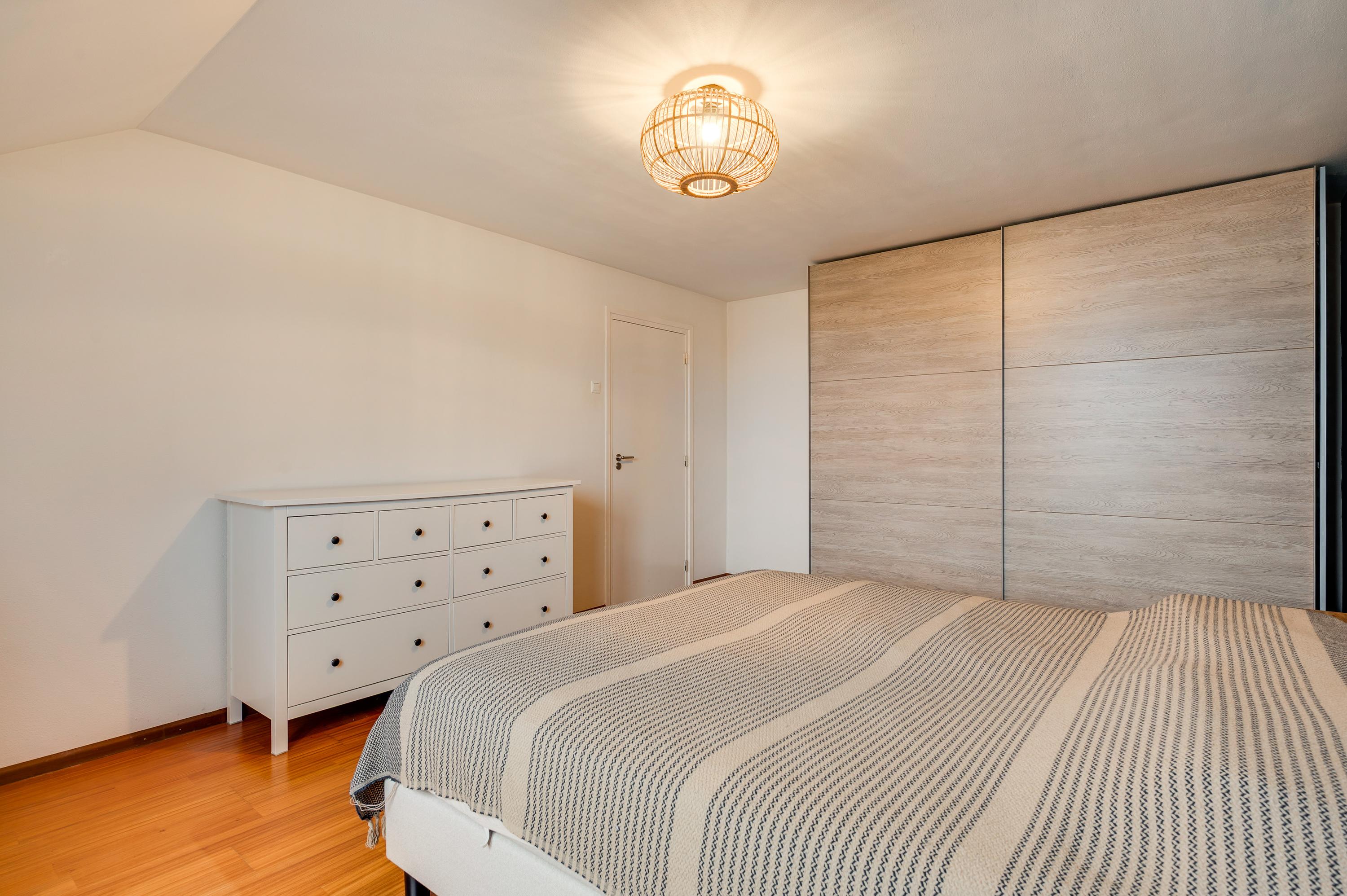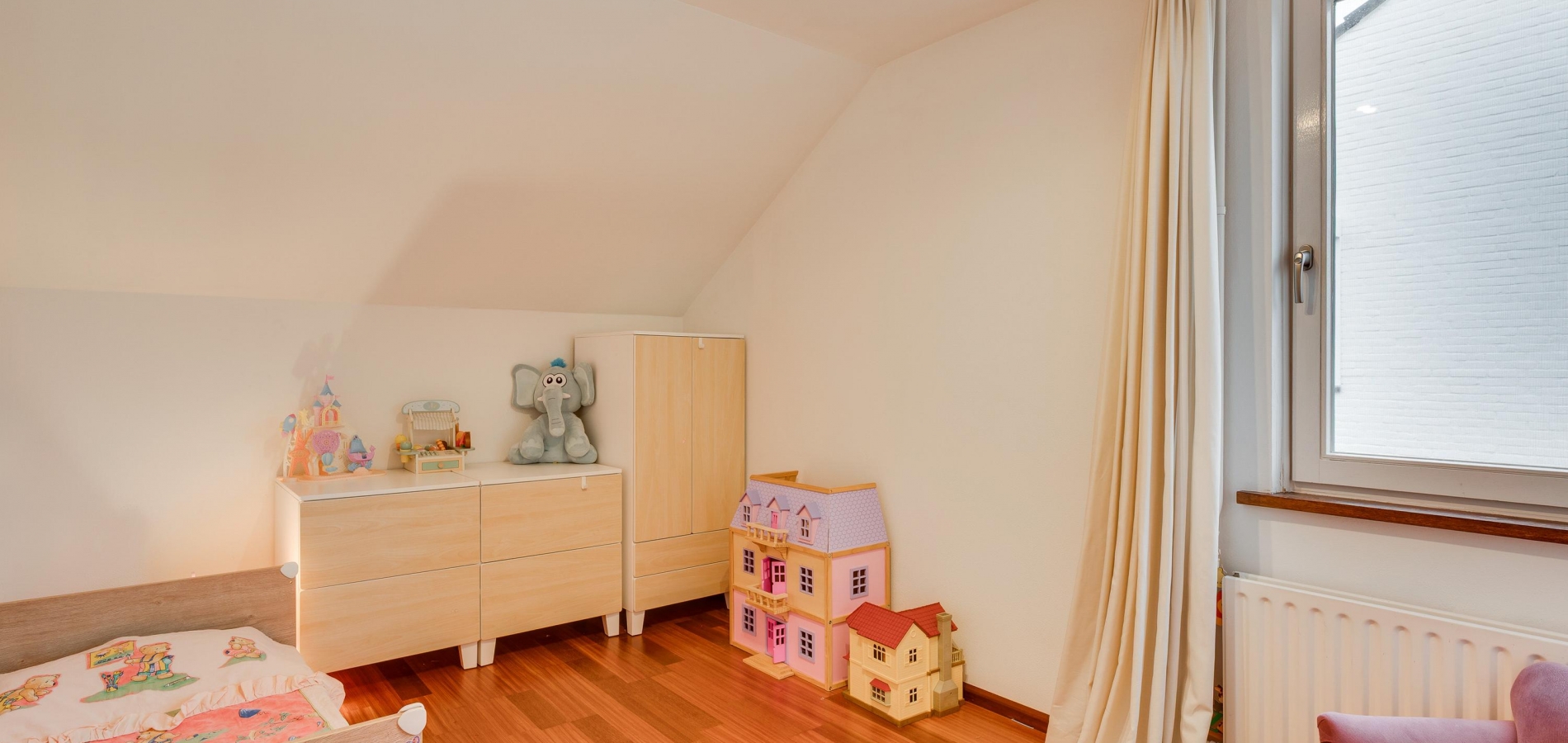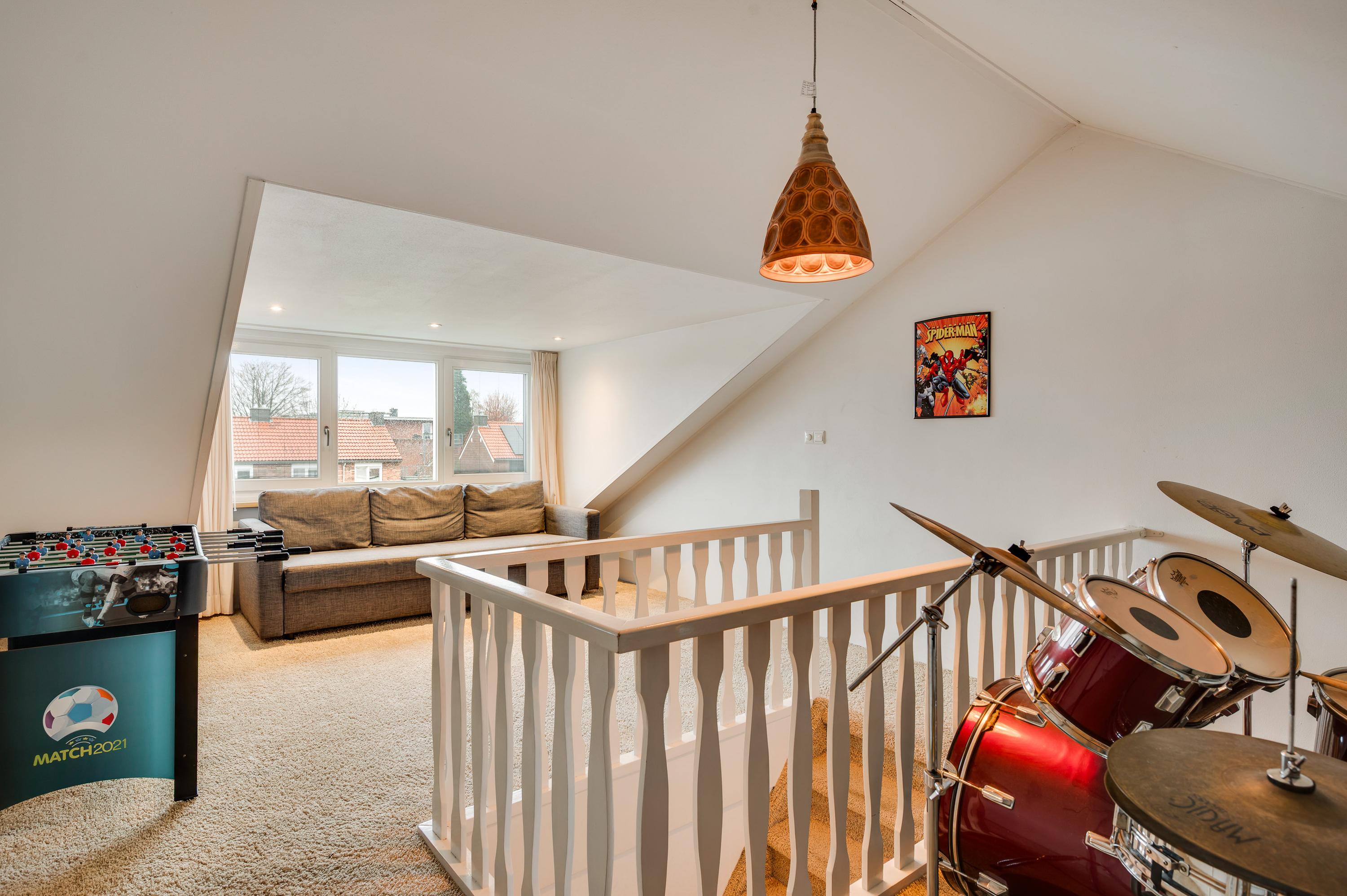 Het raam in de zijgevel zorgt voor veel lichtinval bij de trap en op de overloop. Vanaf hier is er toegang tot drie slaapkamers en de badkamer. Op een groot deel van deze verdieping ligt laminaat op de vloer en het geheel maakt een goede indruk.