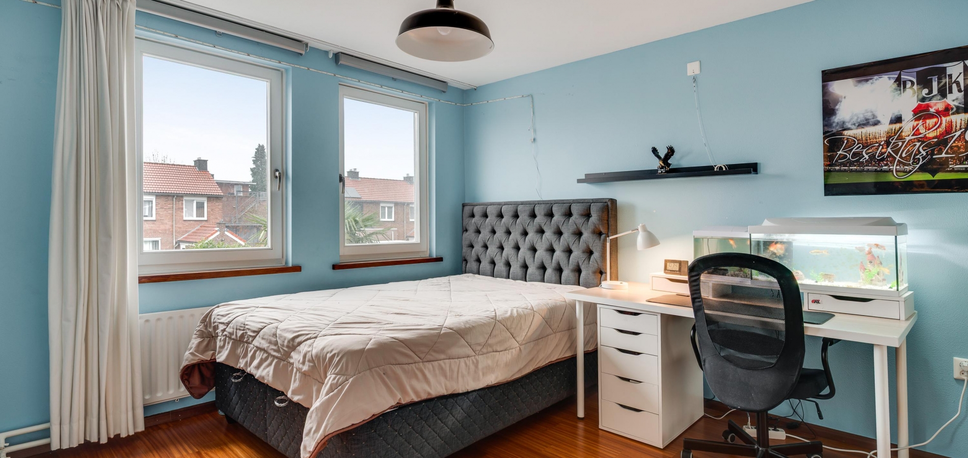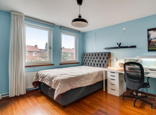 Aan de voorzijde zijn slaapkamer I (circa 3,79 x 2,66) en slaapkamer II (circa 5,26 x 3,71), ingericht als kinderkamer en master bedroom. Slaapkamer III (circa 3,92 x 3,75) met inbouwkast bevindt zich aan de achterzijde.