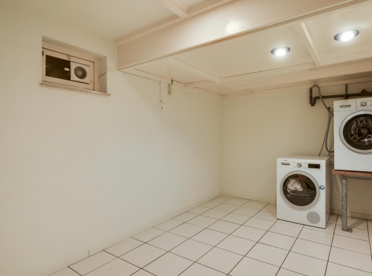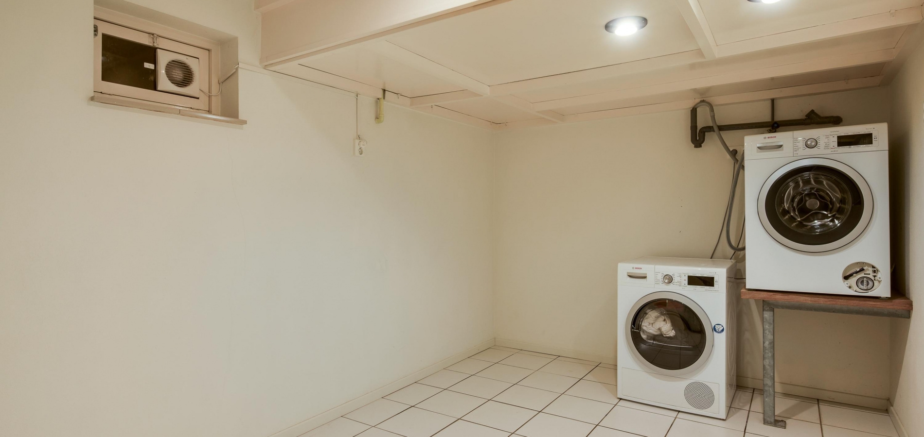 Vanuit de hal op de begane grond is er toegang tot het souterrain. Hier heeft u de beschikking over een kelder/wasruimte (circa 4,77 x 2,61) met de opstelling van de wasapparatuur. Onder de trap is een bergkast, de ruimte is verwarmd en er ligt een witte tegelvloer. Het luik op ooghoogte geeft toegang tot de kruipruimte.