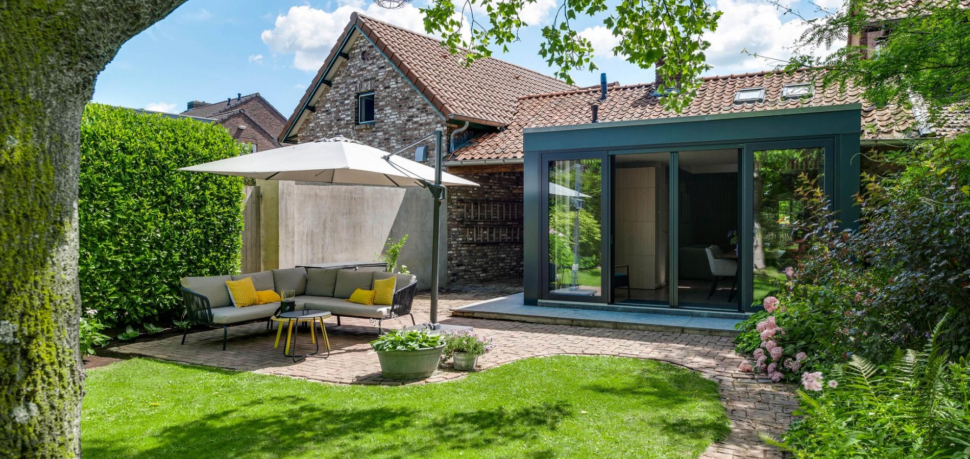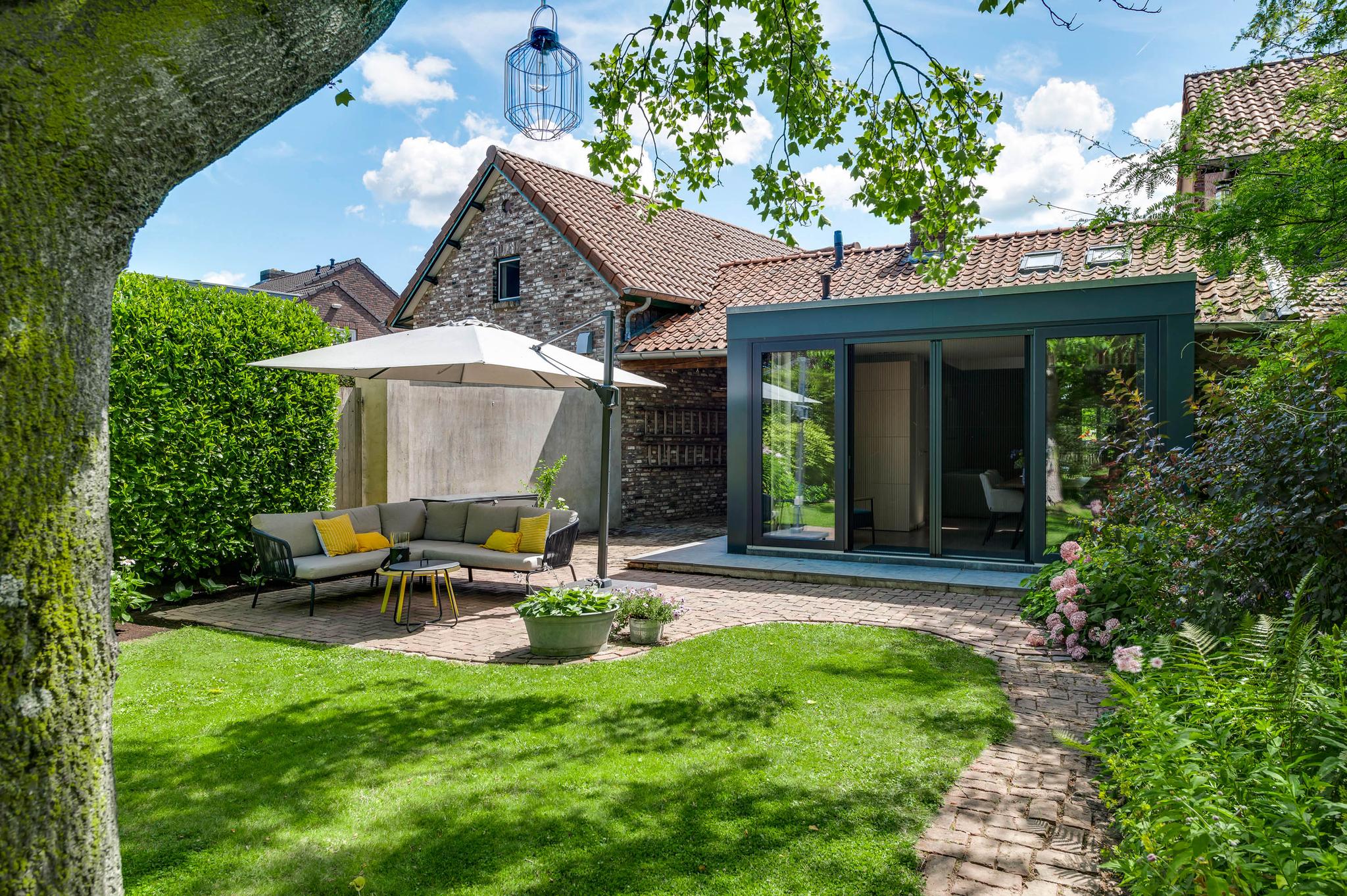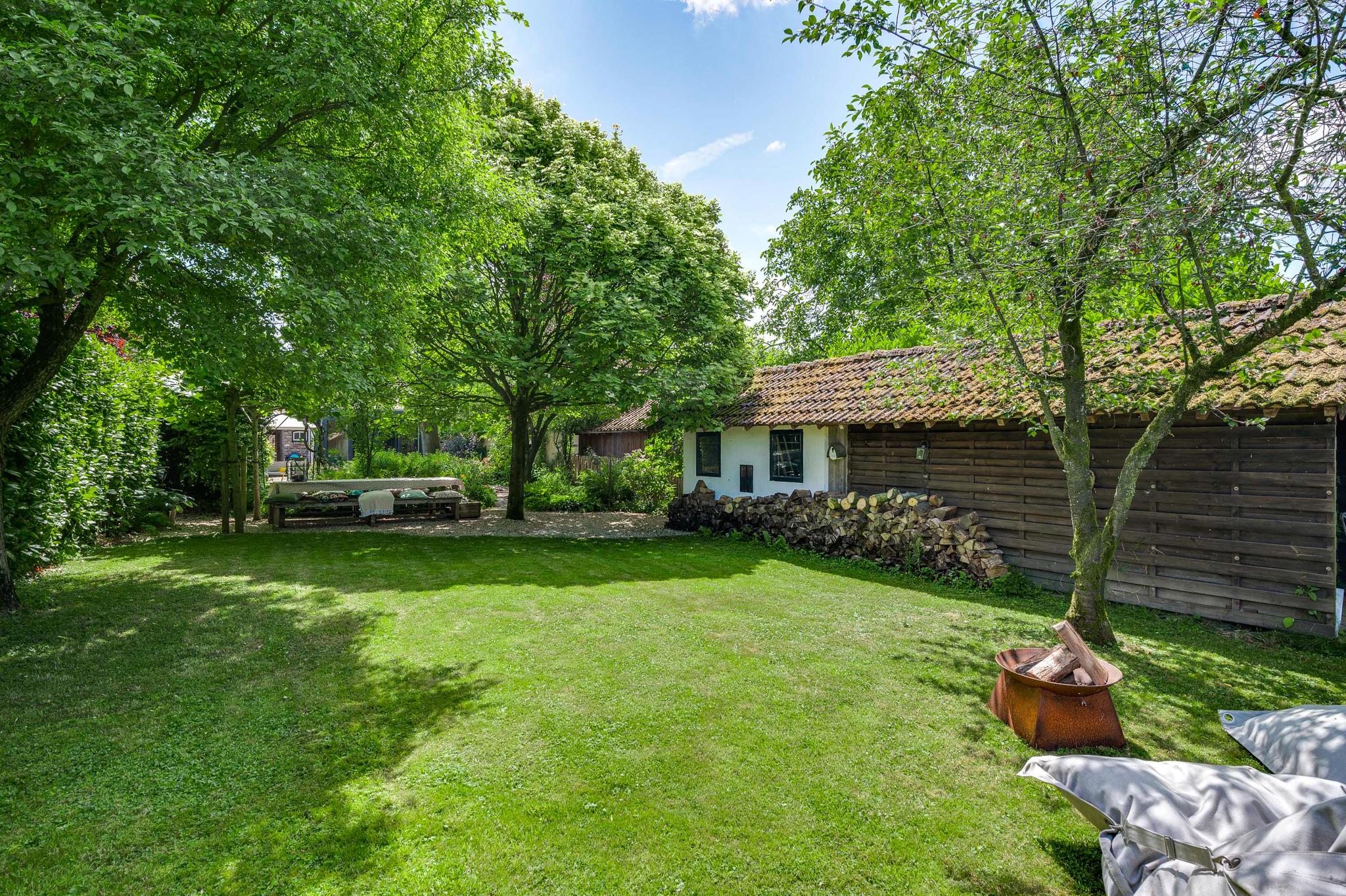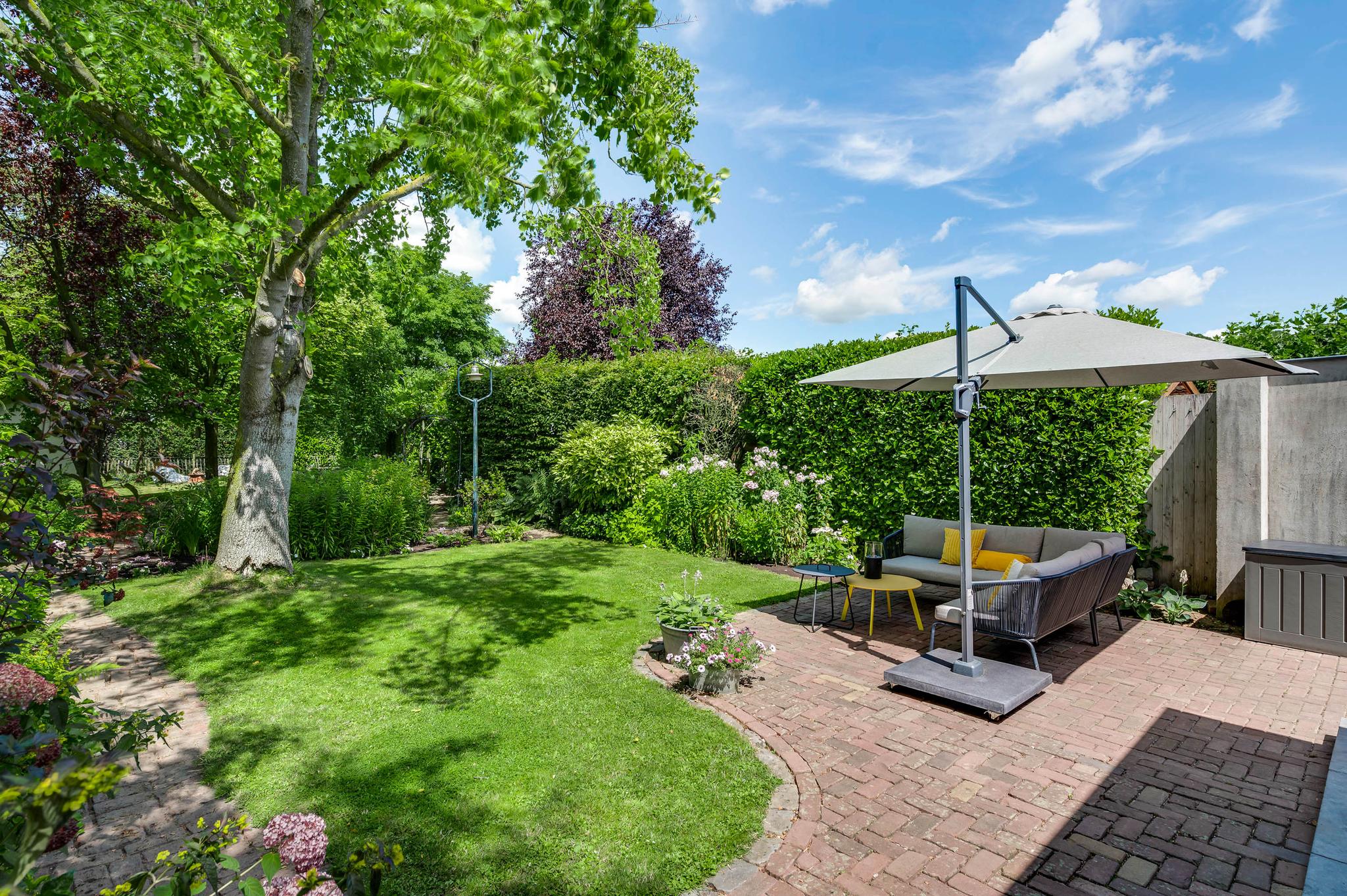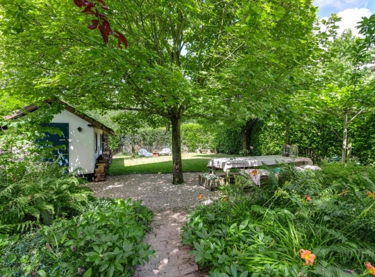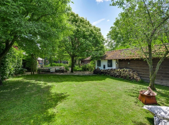 De diepe achtertuin is een oase van groen. Groene hagen, mooie bomen en borders met gevarieerde beplanting vormen een mooie compositie. Bij het grote terras ziet u een doorgang naar de sfeervolle voortuin met mooie hortensia’s. Volg het pad in de achtertuin naar het tweede terras, gesitueerd onder een hoge boom. Hier ziet u ook de schuur/hobbyruimte, die uit twee ruimtes bestaat. Ruimte I (3,37 x 2,12) is de voorste ruimte met ramen aan de tuinzijde. Ruimte II (4,72 x 2,22) is de grootste ruimte met openslaande deuren en een bergvliering. Perfect voor opslag, als hobbyruimte of wellicht heeft u een andere invulling?