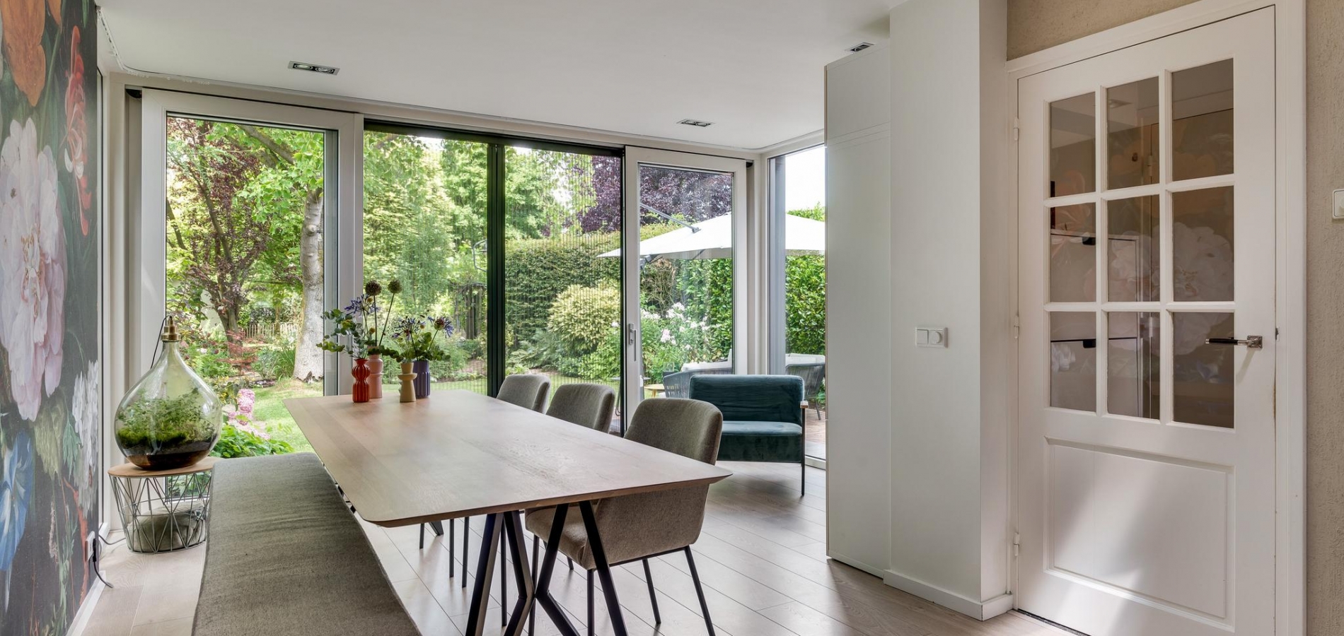 Hardhouten kozijnen, voorzien van HR++ glas (m.u.v. 3 kleine raampjes)
