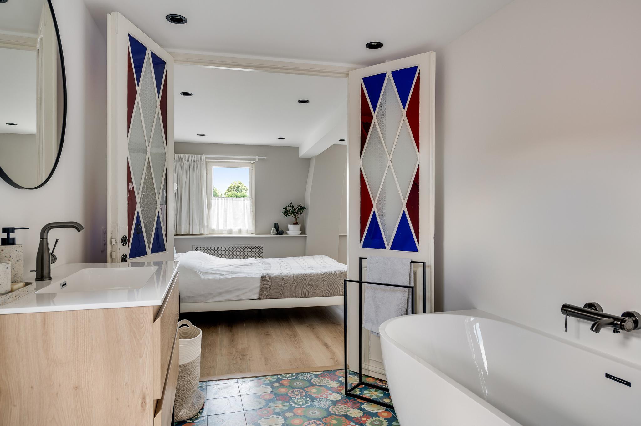 Niet alleen op de begane grond, maar ook op de eerste verdieping heeft dit huis veel sfeer en een fraai indeling. Vanaf de ruime overloop zijn de master bedroom met en-suite badkamer (2023) en een toiletruimte te bereiken.