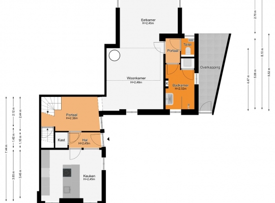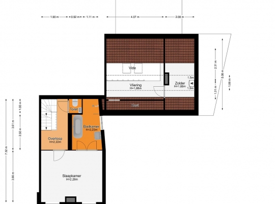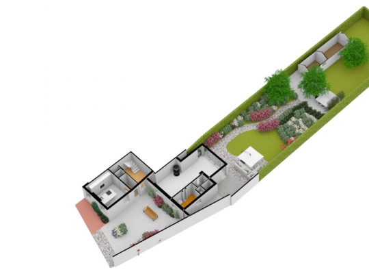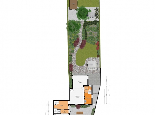 Middels de overdekte achterom (5,06 x 2,17/0,96) kunt u vanaf de voorzijde van de woning de tuin bereiken, u hoeft hiervoor niet de woning te betreden.