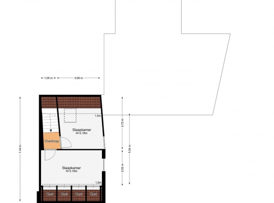 Vanuit de woonkamer is er middels een ladder toegang tot de entresol (4,07 x 1,31), die grenst aan een zolderruimte. In deze ruimte is de opstelling van de gehuurde HR-ketel (Nefit Proline Nxt, 2019).