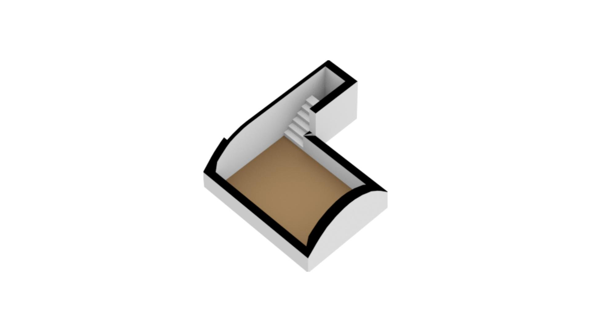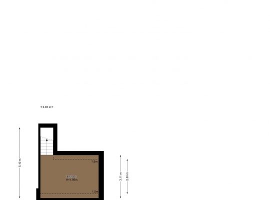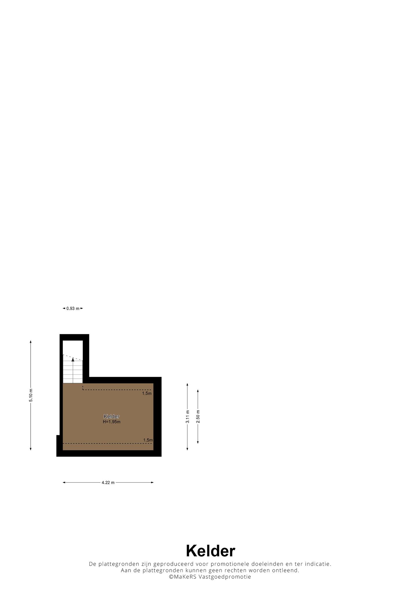 Achter de lage deur in de hal is een trap die leidt naar de wijn-/provisiekelder (4,22 x 3,11) met een maximale hoogte van 1,95 meter.