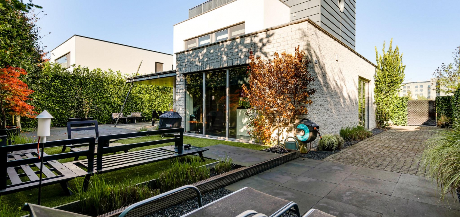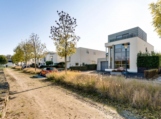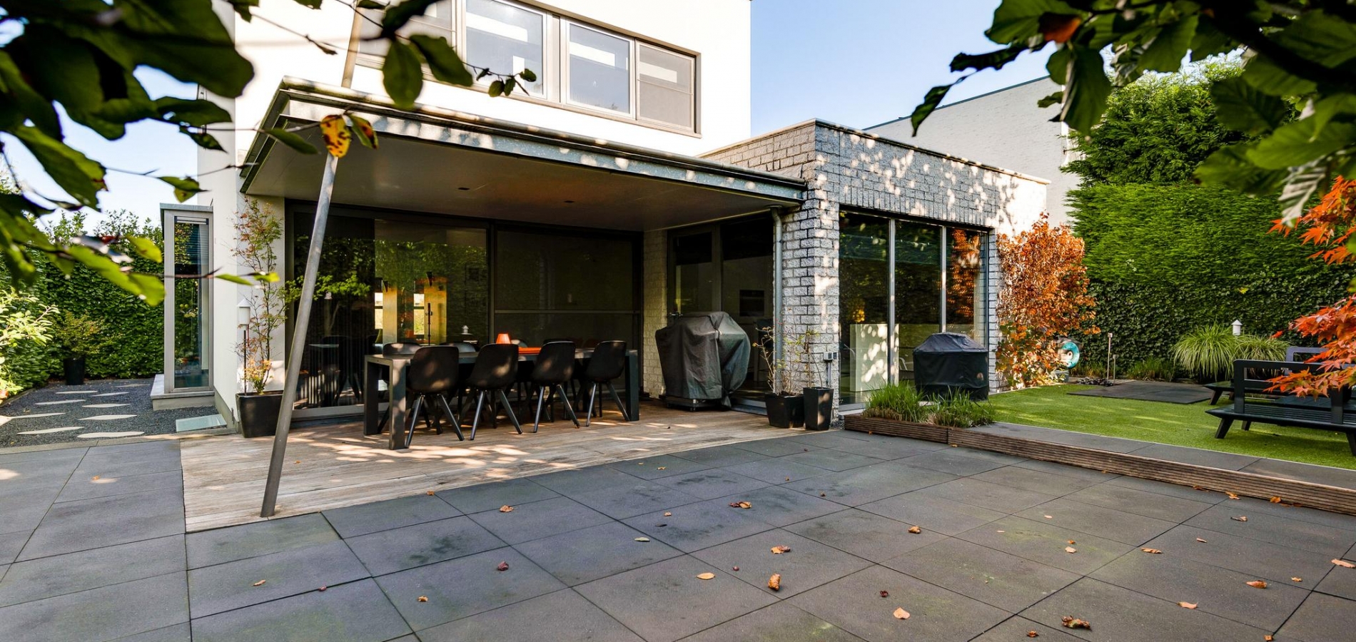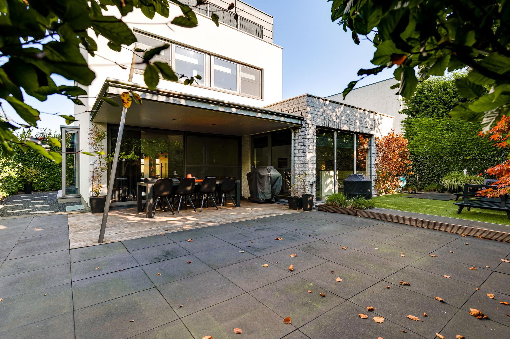 Rondom de villa ligt een fraai aangelegde tuin in een moderne stijl. De achtertuin is gesitueerd op het zuidwesten en aan de voorzijde is parkeergelegenheid voor meerdere auto’s. Aan drie kanten heeft u de beschikking over een terras en het overdekte terras aan de achterzijde is de perfecte plek voor een hapje, drankje en te barbecueën met familie of vrienden. De erfafscheiding met klimop en diverse bomen zorgen voor optimale privacy.