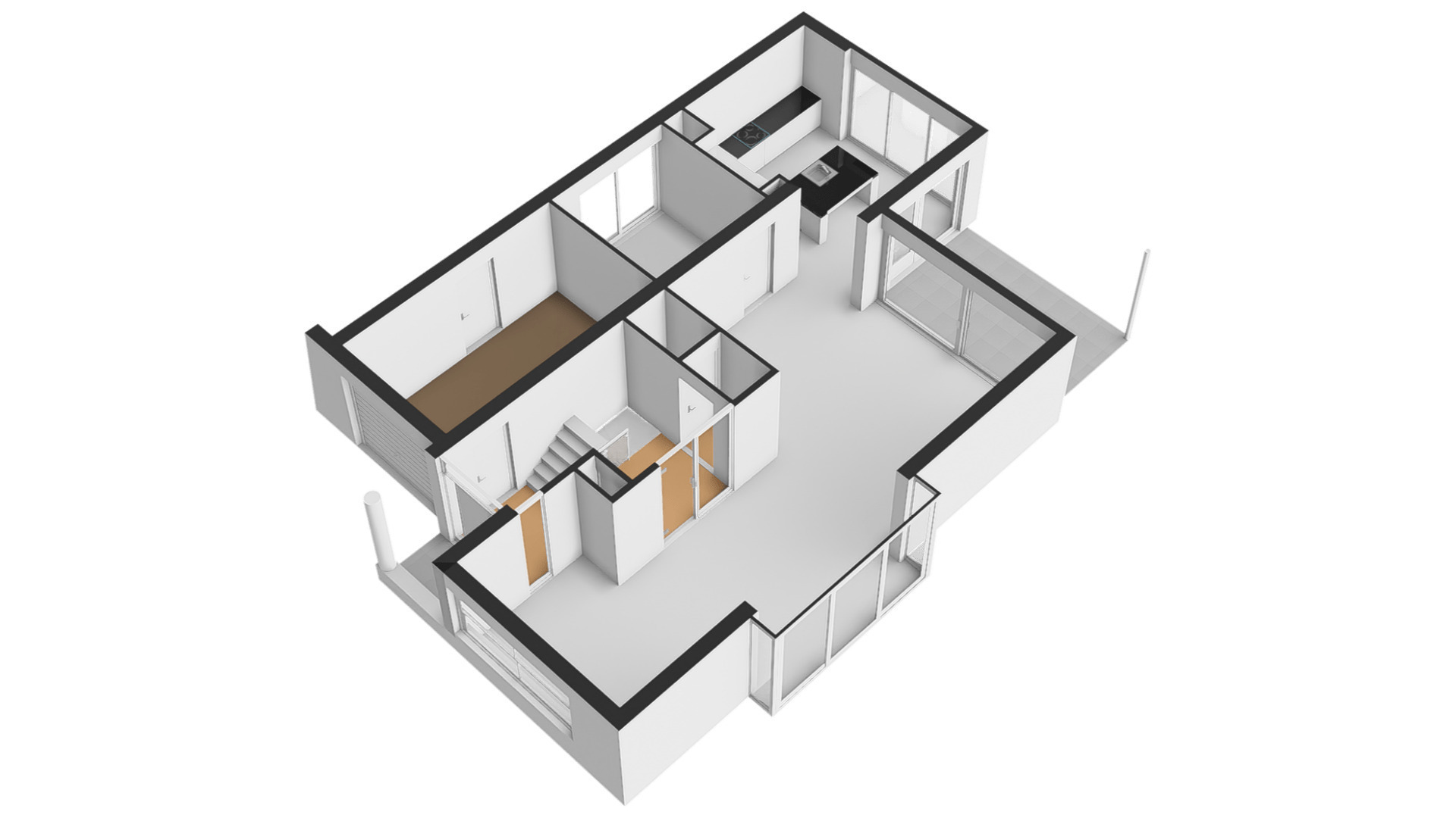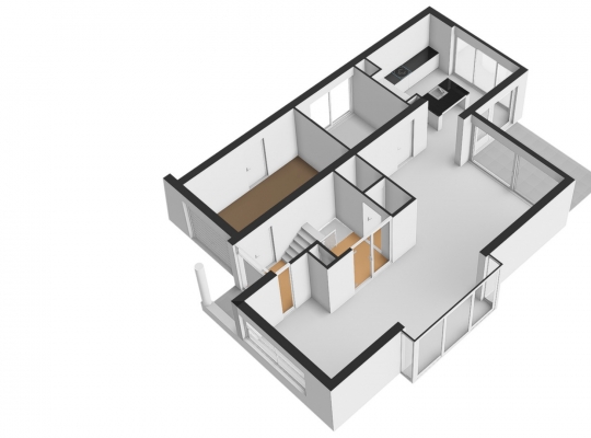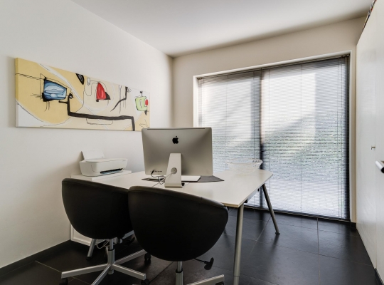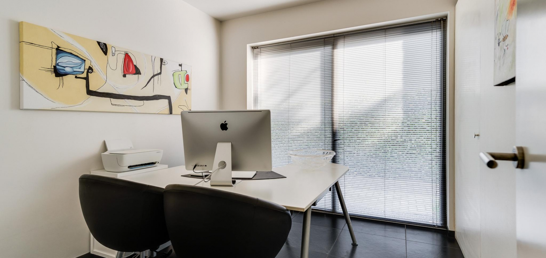 De laatste ruimte op de begane grond is een werkkamer (circa 3,63 x 2,98) met een fraaie afwerking en twee grote ramen tot vloerhoogte. Ook als speelkamer of gameroom is dit een geschikte ruimte.