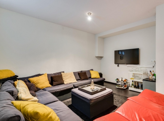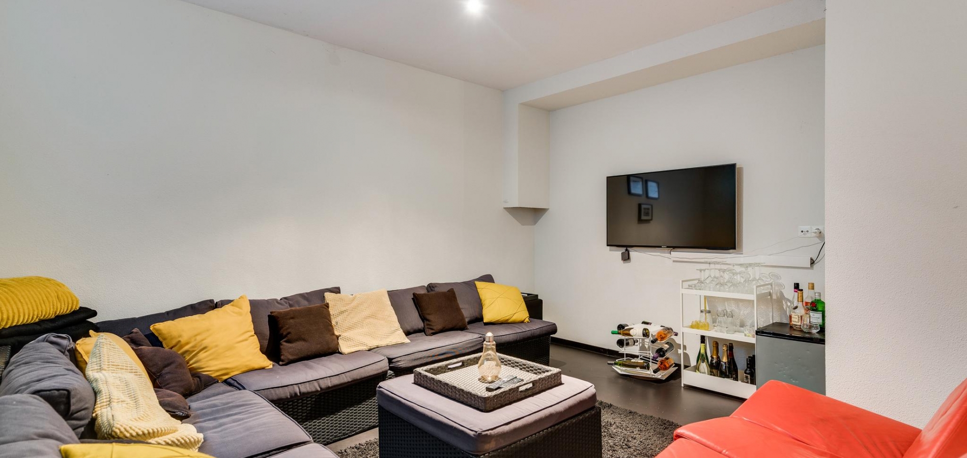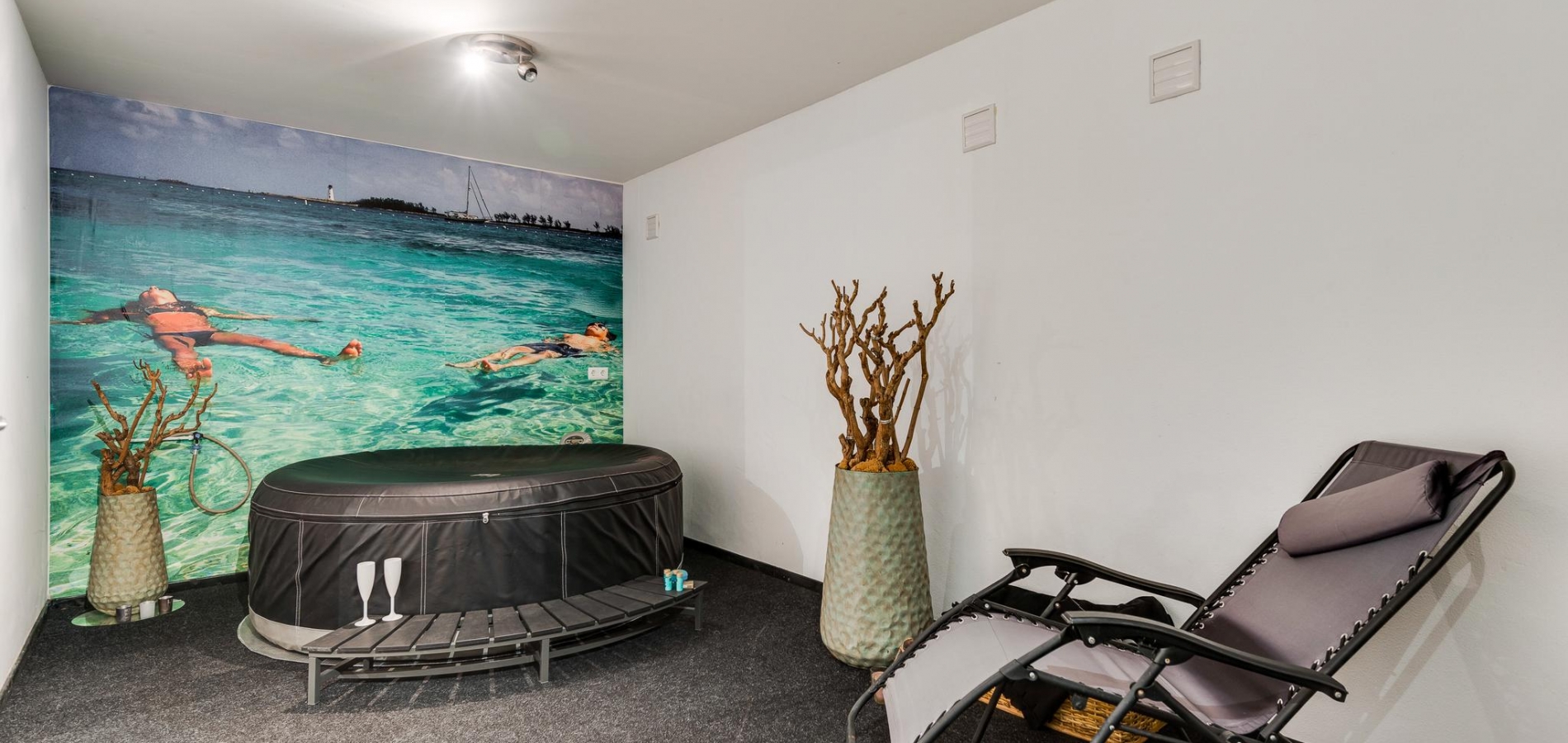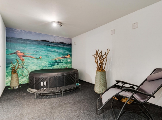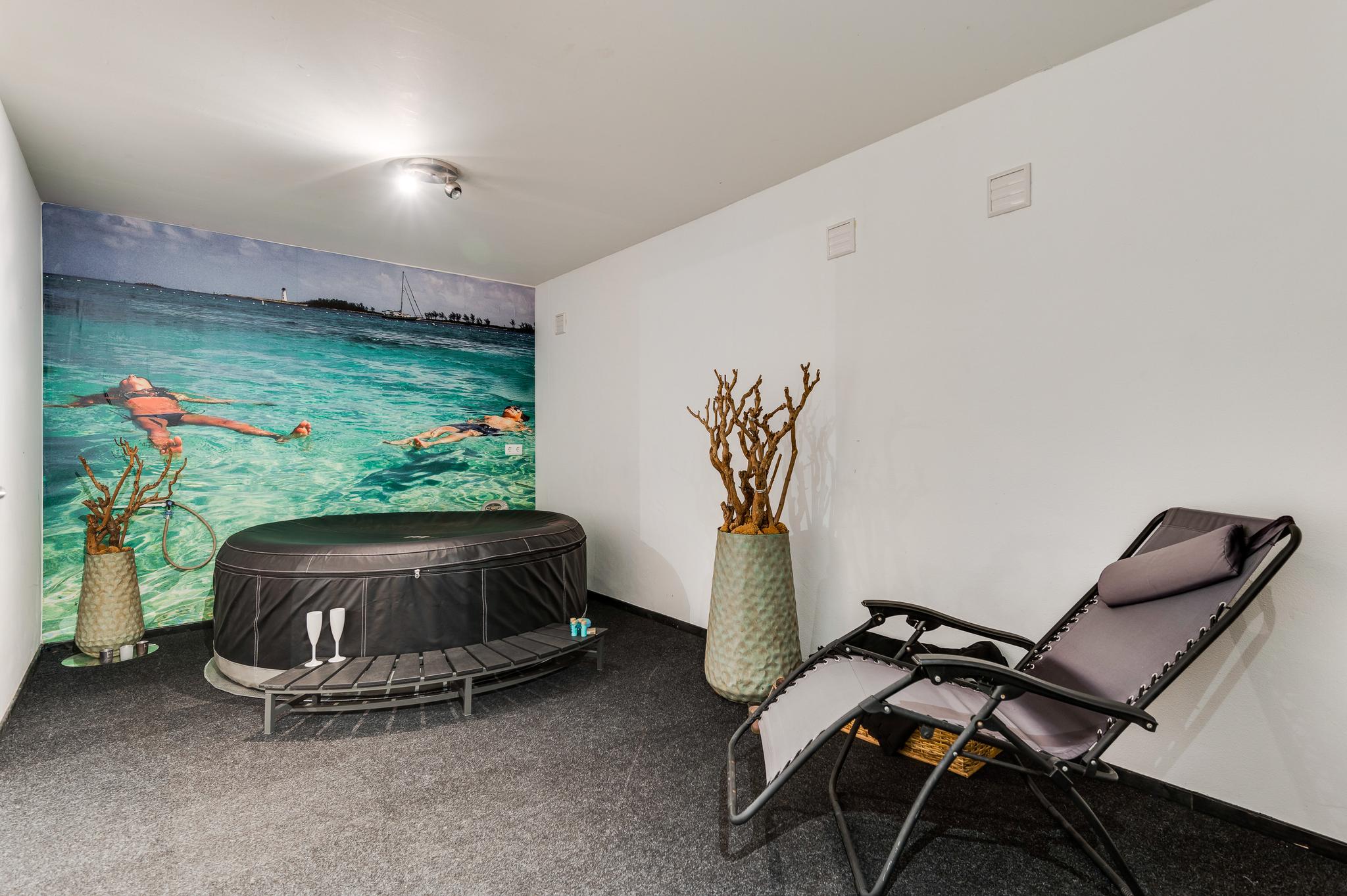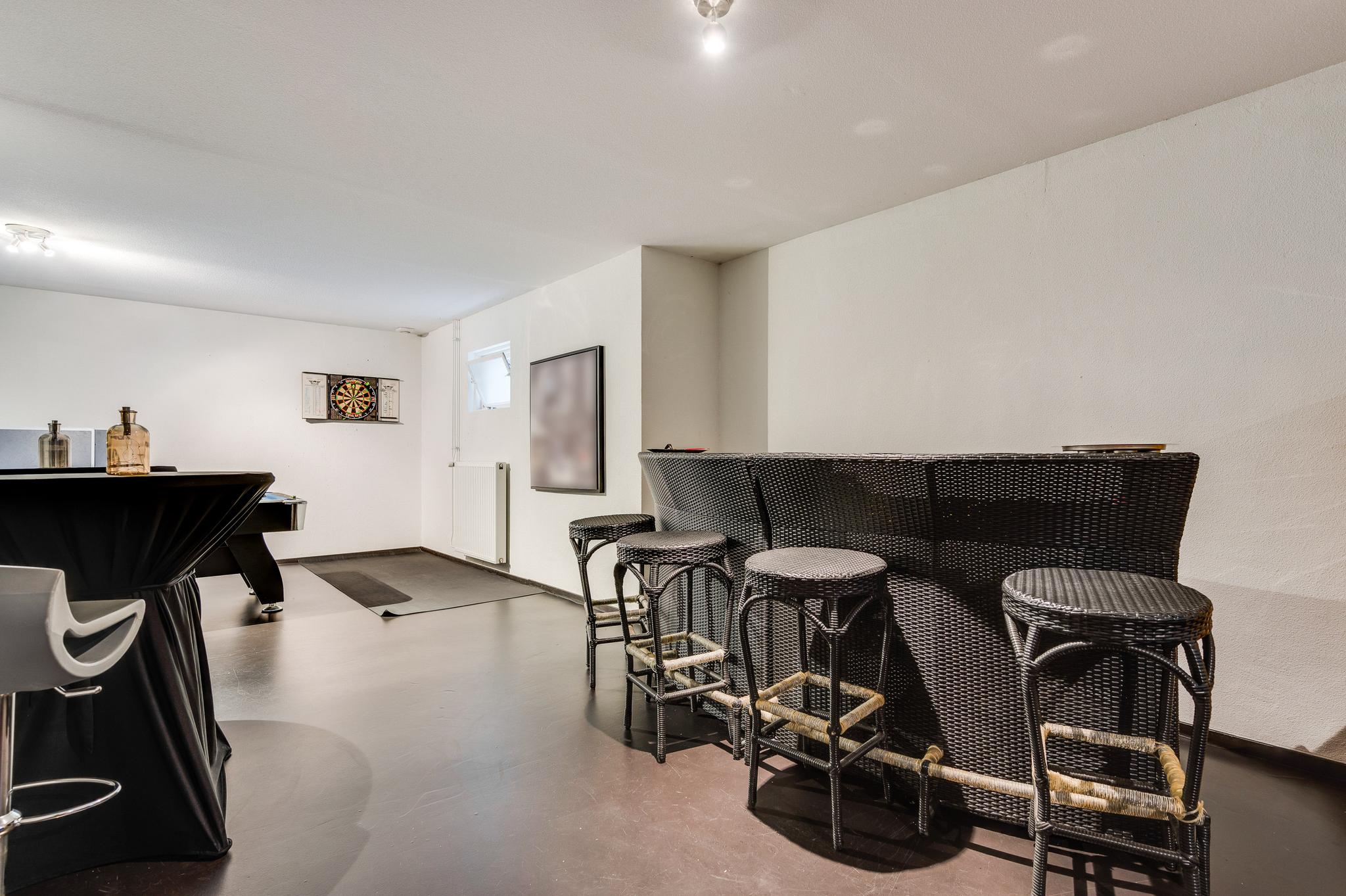 Aan de andere kant van het portaal is een deur naar een fantastische ruimte die thans is ingedeeld met een zithoek, bar en een pooltafel. Aansluitend is de wellness met een sauna en fraai behang die u het hele jaar in vakantiesferen brengt. Welke invulling geeft u aan het souterrain?