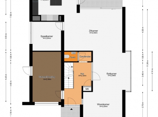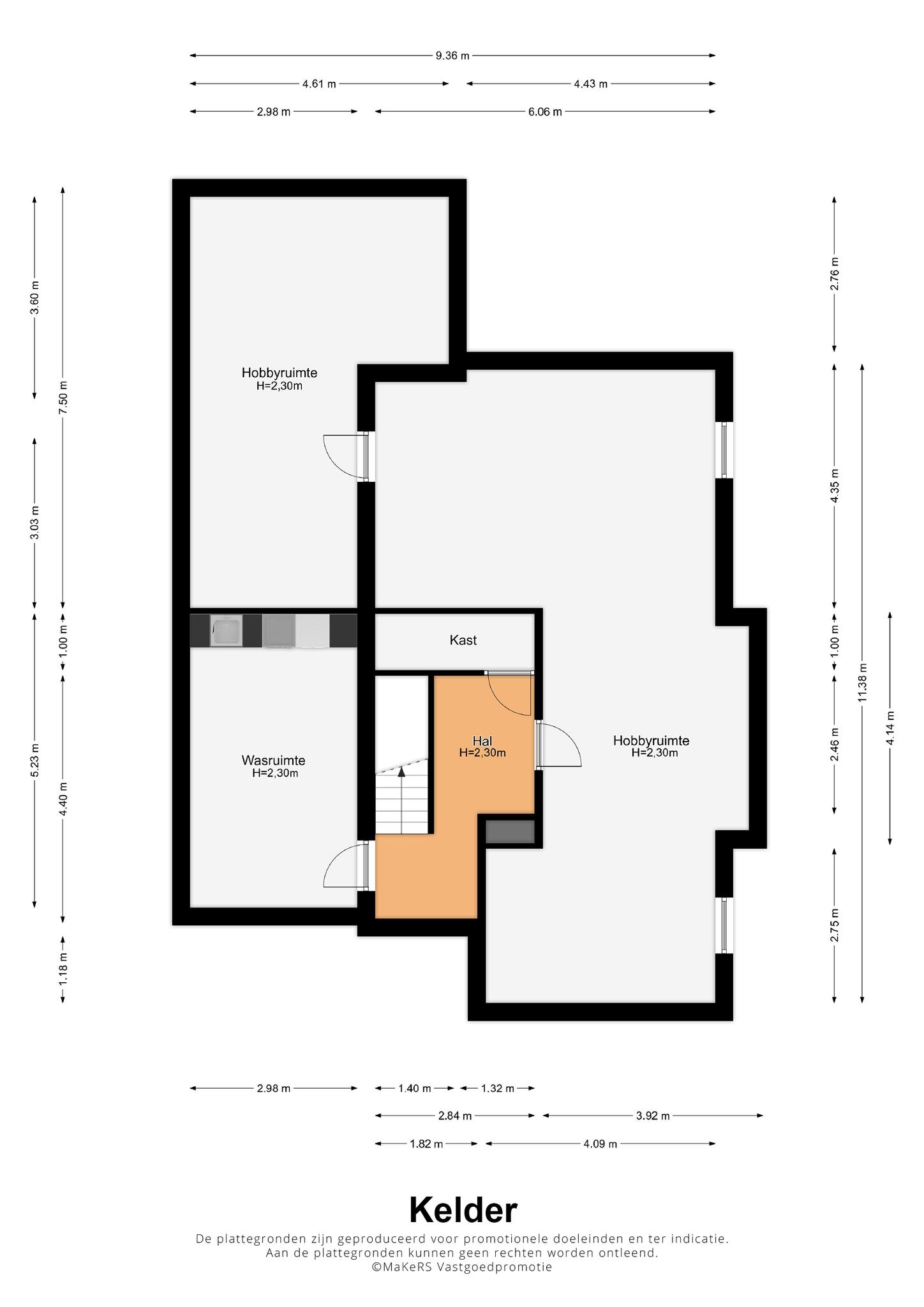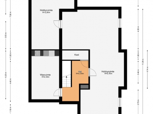 Wat u aan de buitenzijde niet ziet, is het zeer ruime en multifunctionele souterrain van circa 113 m2. Vanaf het portaal met berging heeft u toegang tot een bijkeuken/wasruimte van circa 2,96 x 5,40 meter.