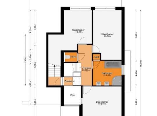 Slaapkamer I (circa 13 m2) biedt fraai uitzicht naar het park en slaapkamer II (circa 17 m2) met inloopkast (slim weggewerkt onder trap naar verdieping 2). Slaapkamer III (circa 13 m2) is ook op de eerste verdieping te vinden. Alle slaapkamers zijn, gezien de grootte, als tweepersoonskamer te gebruiken.