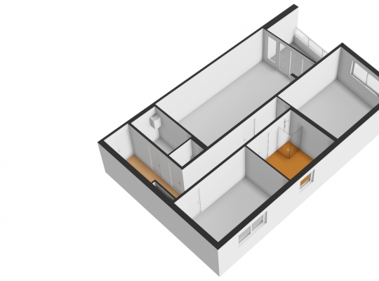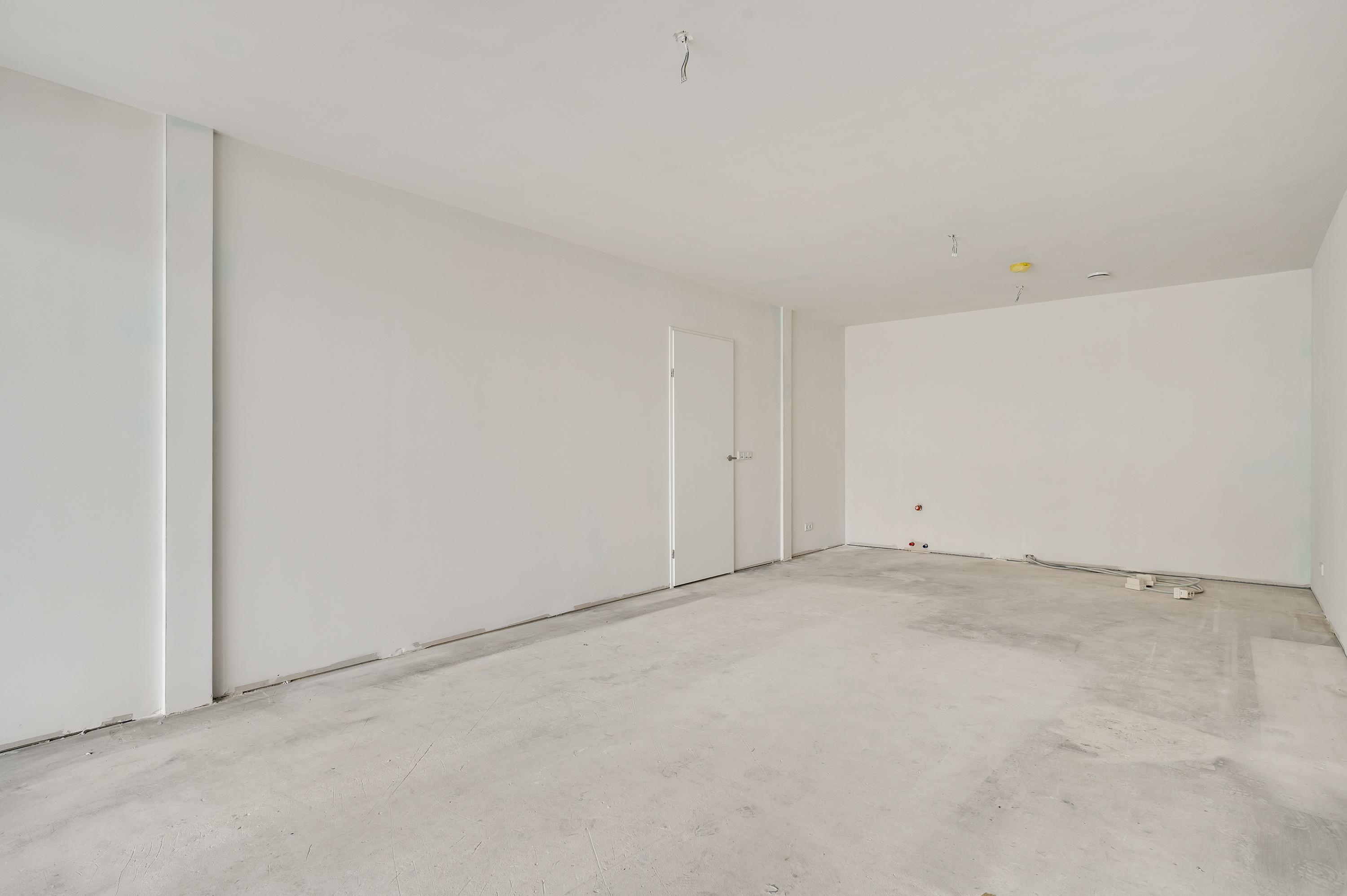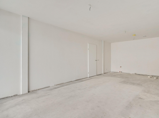 De woonkamer met open keuken (circa 8,19 x 4,03) bevindt zich op de plek waar vroeger de winkel was. Of misschien kent u de plek uit de tijd dat er een sportschool was, inmiddels geruime tijd terug. Niets herinnert aan die tijd, want zelfs het raam heeft plaatsgemaakt voor een grote pui waardoor veel licht naar binnen valt. Alle aansluitingen om een keuken te plaatsen zijn aanwezig, van koud/warm water tot afvoer en elektra.
