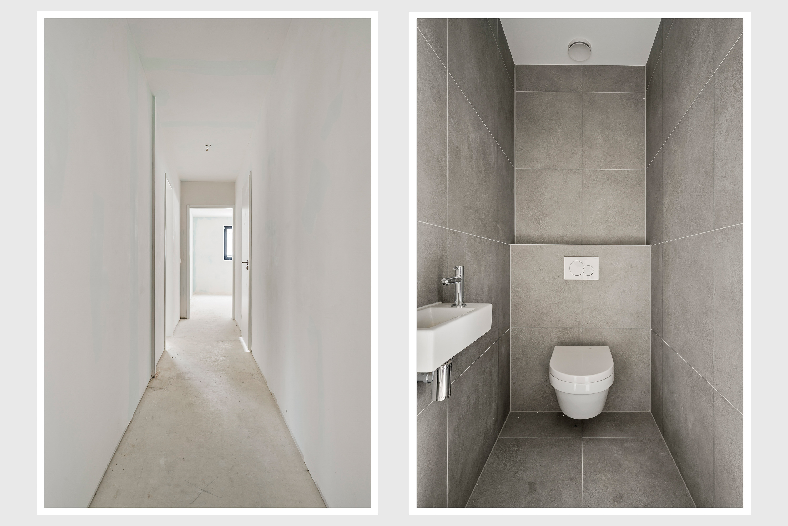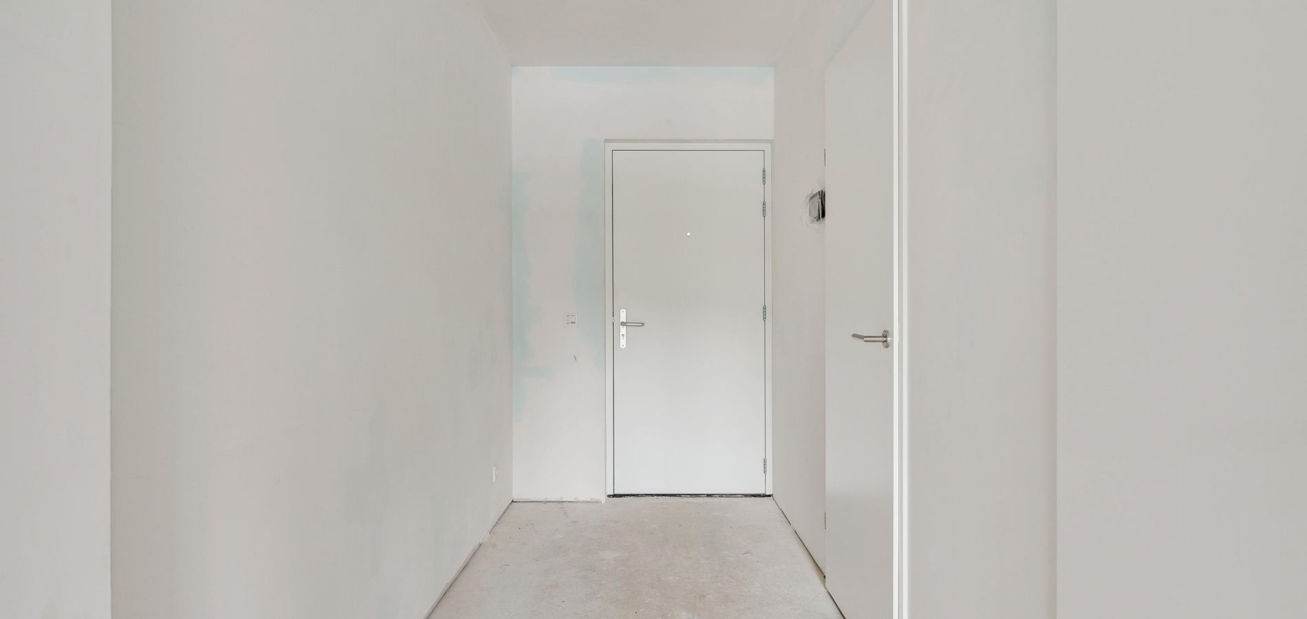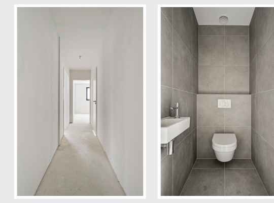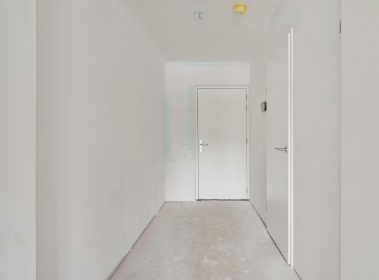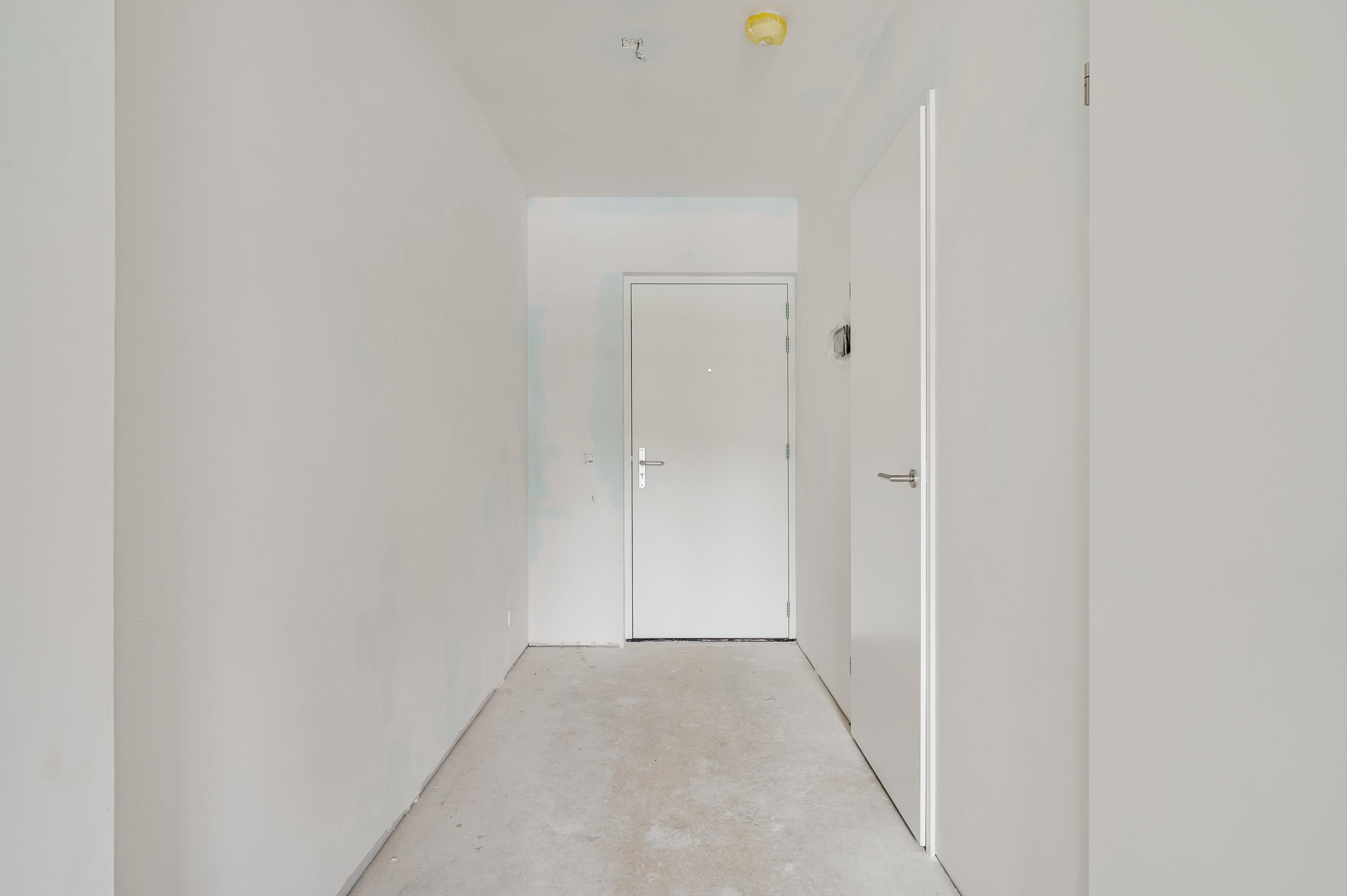 Welkom in de hal van dit duurzame appartement, klaar om naar eigen smaak te stylen. Aan de linkerzijde is de fraai uitgevoerde toiletruimte, uitgevoerd met een wandcloset en een fonteintje. De naastgelegen berging (circa 2,86 x 1,61) biedt ruimte aan de warmtepomp, boiler en de wasmachine aansluiting.