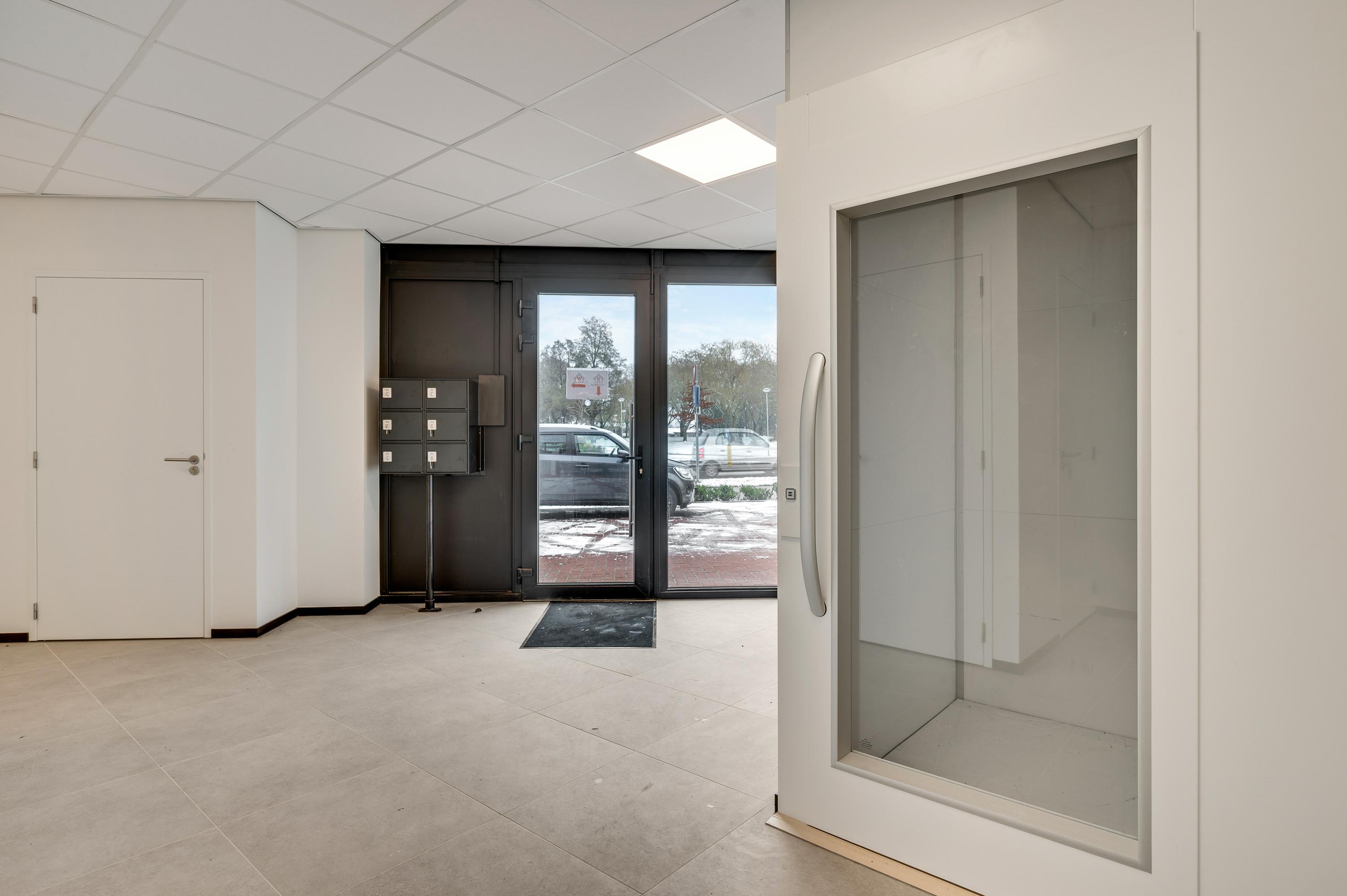 Staat de auto geparkeerd, dan is het maar een paar stappen naar de entree van het stijlvolle appartementengebouw. Aan de buitenzijde zijn de brievenbussen, het bellentableau en de video-intercom. De gezamenlijke ontvangsthal is, net als de buitenzijde van het gebouw, zeer fraai uitgevoerd. Dit appartement bevindt zich aan het einde van de hal, waardoor u heel rustig woont. Voor de fiets en andere spullen is er een privéberging van circa 2,18 x 1,86 meter.