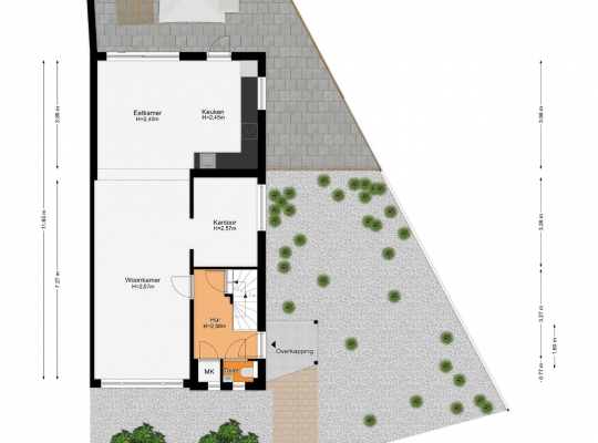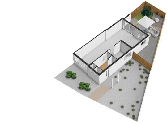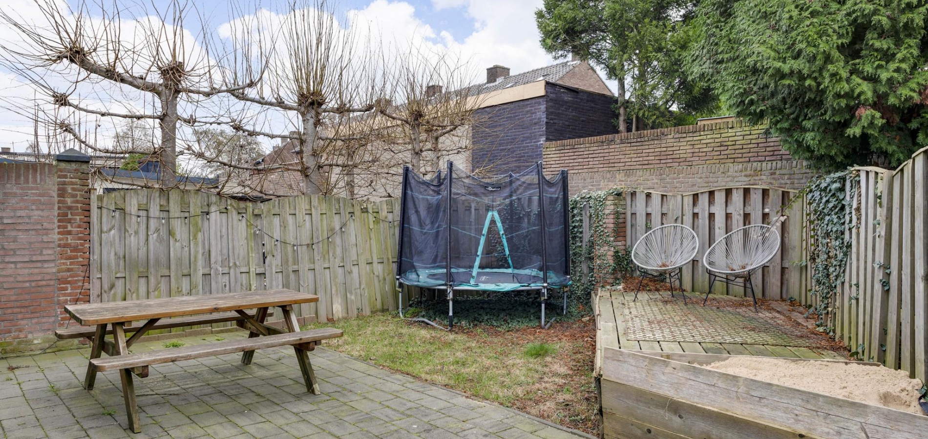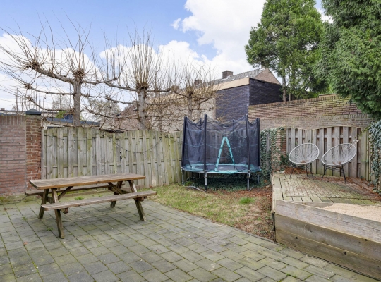 Vanuit de eetkamer en keuken is de achtertuin op het oosten te bereiken. Dankzij de hoekligging en indeling kunt u hier de hele dag in de zon zitten. De zijtuin met houten poort staat in verbinding met de oprit, waar u op eigen terrein meerdere auto’s kan parkeren.