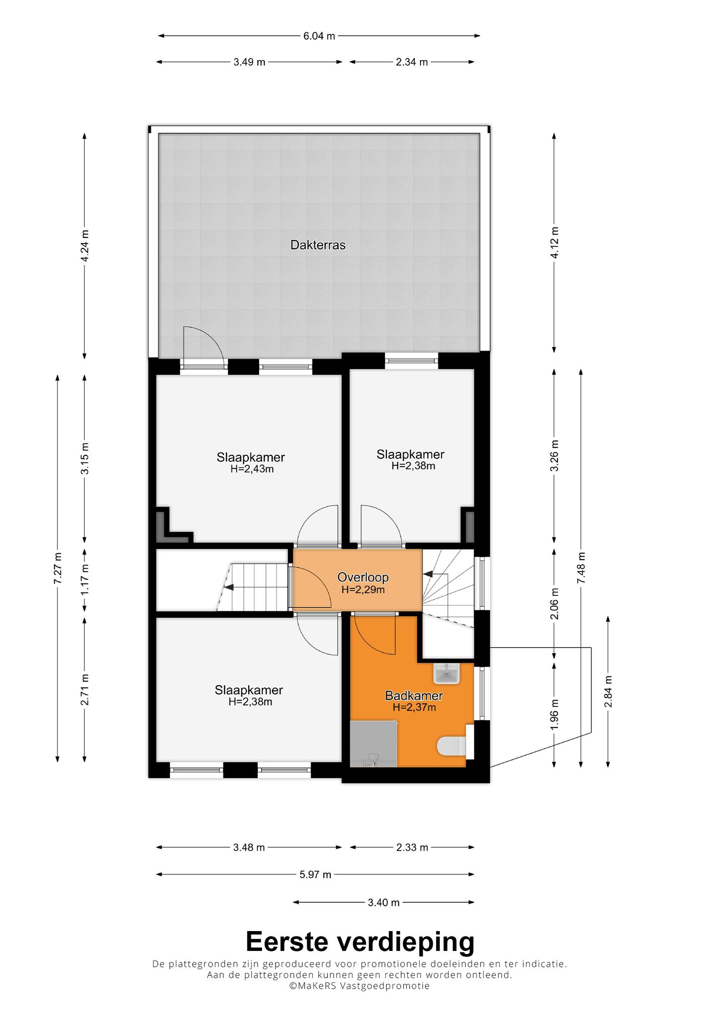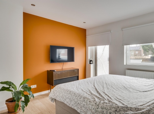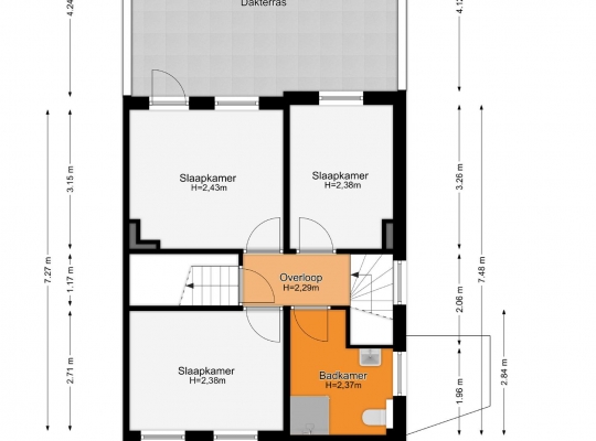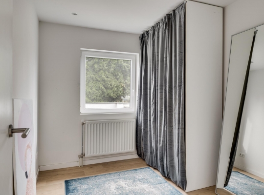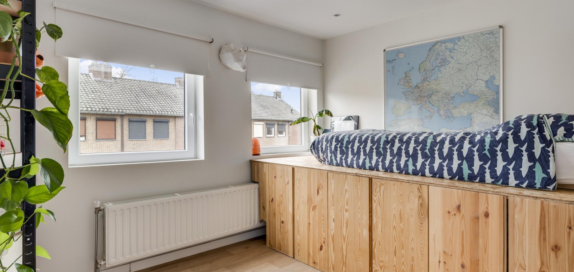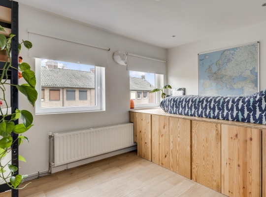 Slaapkamer I (3,48 x 2,71) bevindt zich aan de voorzijde en slaapkamer II (3,49 x 3,15) heeft een deur naar het dakterras. Ook slaapkamer III (3,26 x 2,34), te gebruiken als kleed- of kinderkamer, bevindt zich aan de achterzijde. Of zoekt u een ruime werkkamer op deze etage?